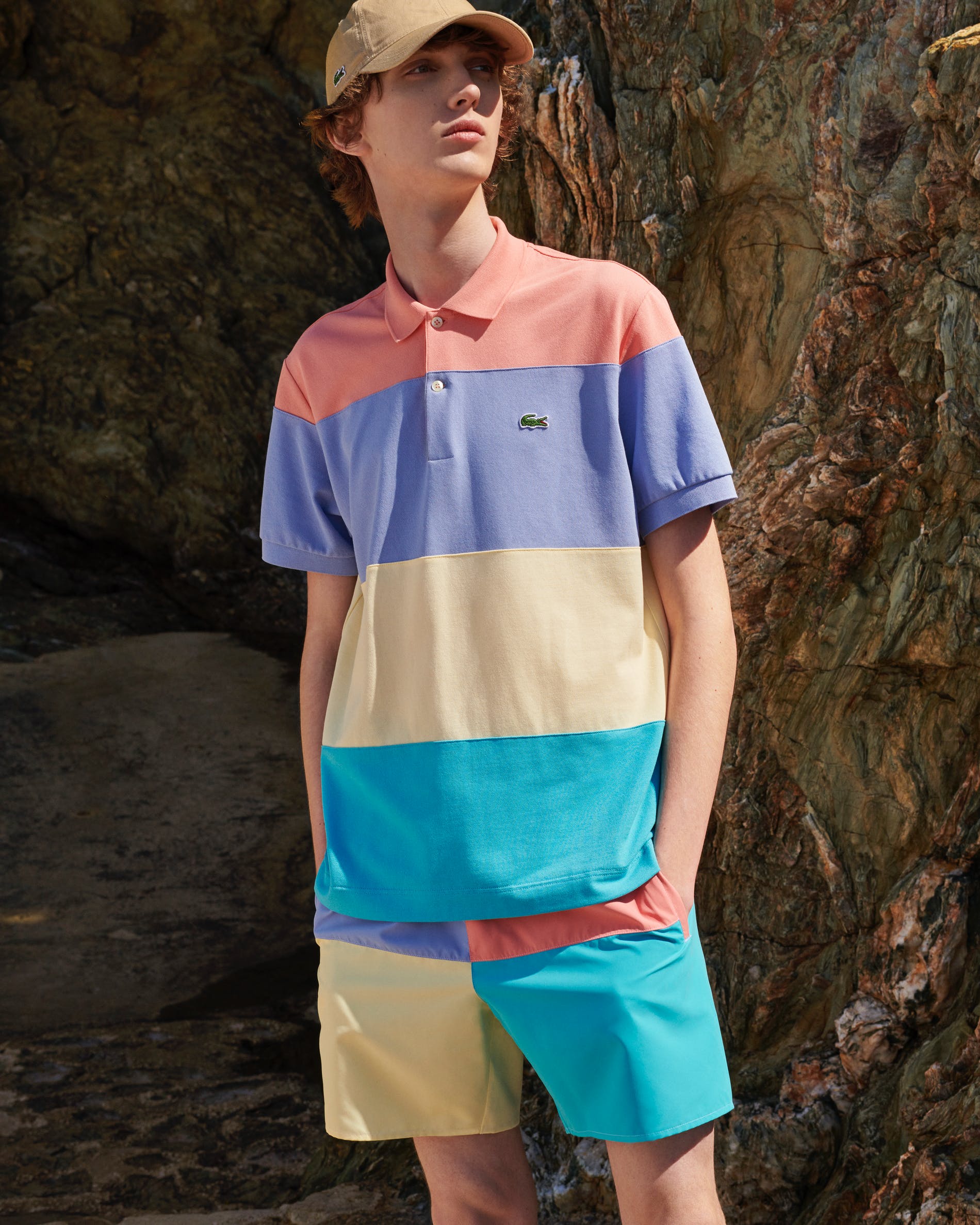 Labelled ‘A Place in the Sun’, the collection features seamless shapes and innovative fabrics that keep things light, cool and loose. Made with sustainable fabrics, the collection features very bright colors including vibrant reds, yellow, orange and a touch of tropical turquoise that make it a perfect match for the poolside or the beach. It features items such as the re-imagined Made in France polo, the classic-yet-bold summer dress, and a retro-inspired oversized beach bag that features a large iteration of the house symbol.