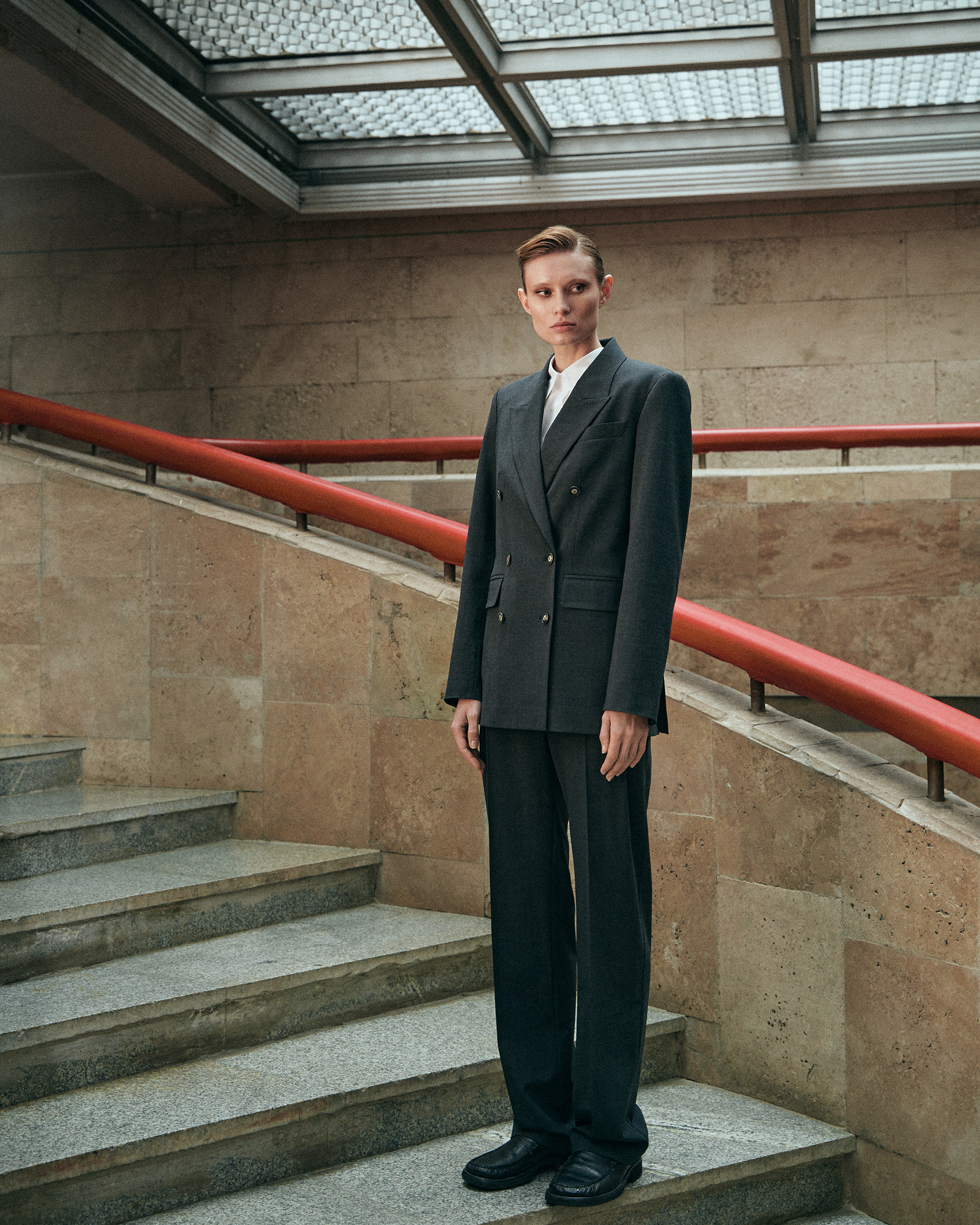 The idea of universal office workwear materialized in a capsule that kept the brand’s design identity: elements of menswear implemented in womenswear.