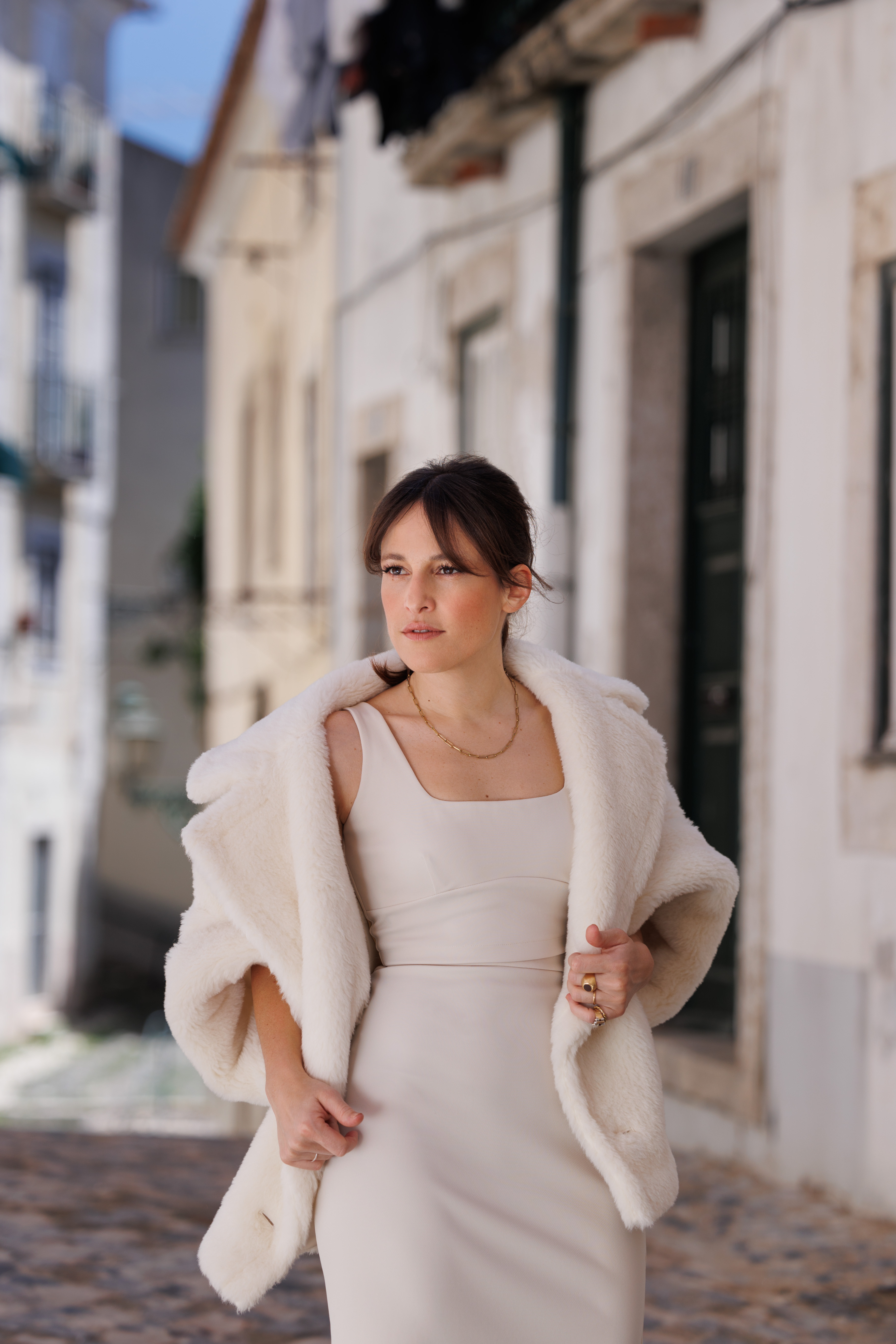Correia enjoyed a place right at the heart of Lisbon society. Back to the Skapinakis' picture; the women depicted at Correia's feet are fellow novelist and poet Fernanda Botelho and renowned classical pianist Maria João Pires. Correia's home, and the watering hole she herself founded, Bar Botequim, were a stage for international friends such as Henry Miller, Graham Greene and Eugène Ionesco, and Portuguese legends like Amália's penchant for plissé. Crunchy degradè pleated silk taffetà is the perfect medium for a dramatic gesture that goes from day to night; wether it's a floor sweeping bustuer or a corona bursting from beneath the hem of a pencil skirt. Fado, the music of love and longing, reminds us that Natália Correia's smouldering charisma was absolutely in tune with the Portuguese psyche.
