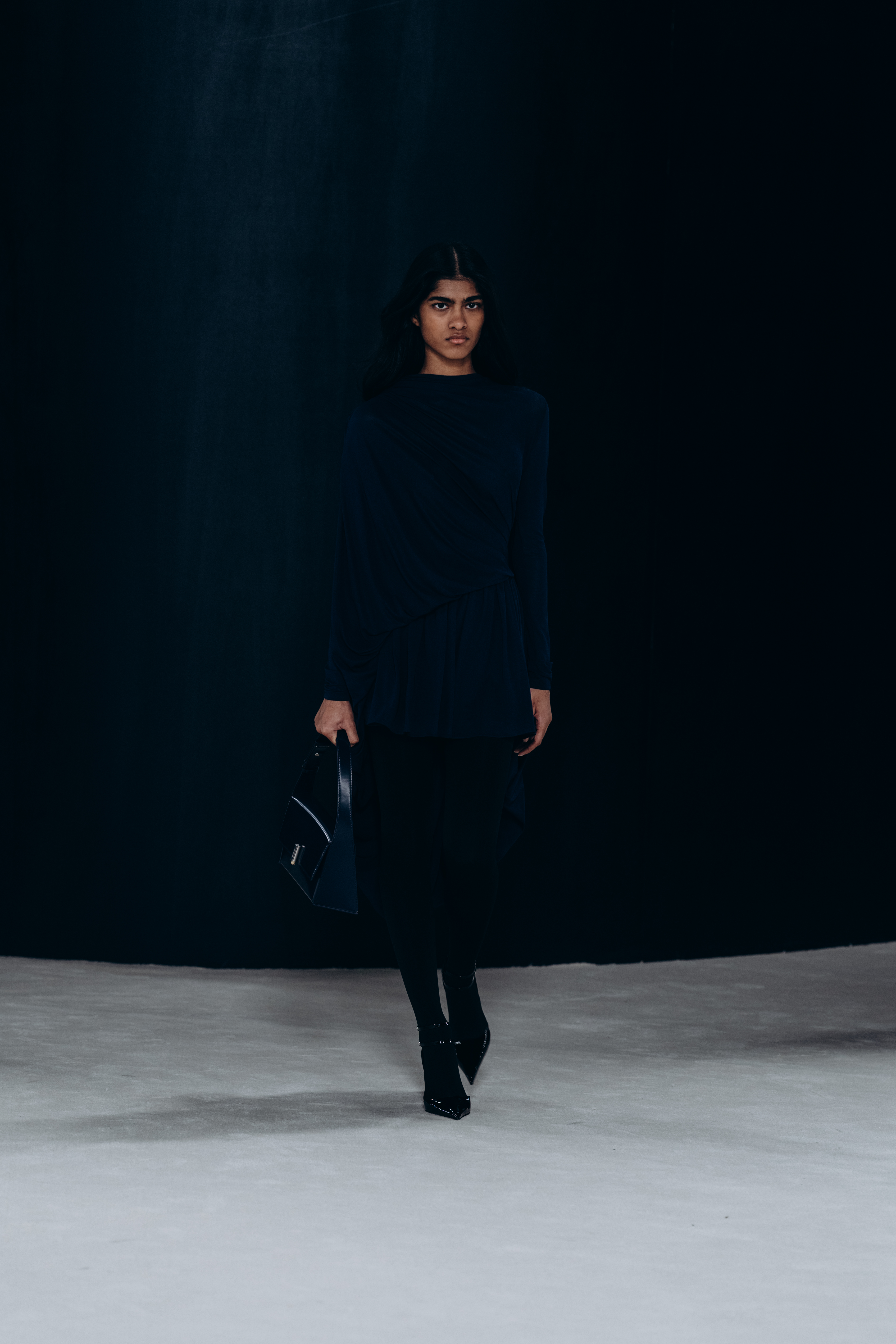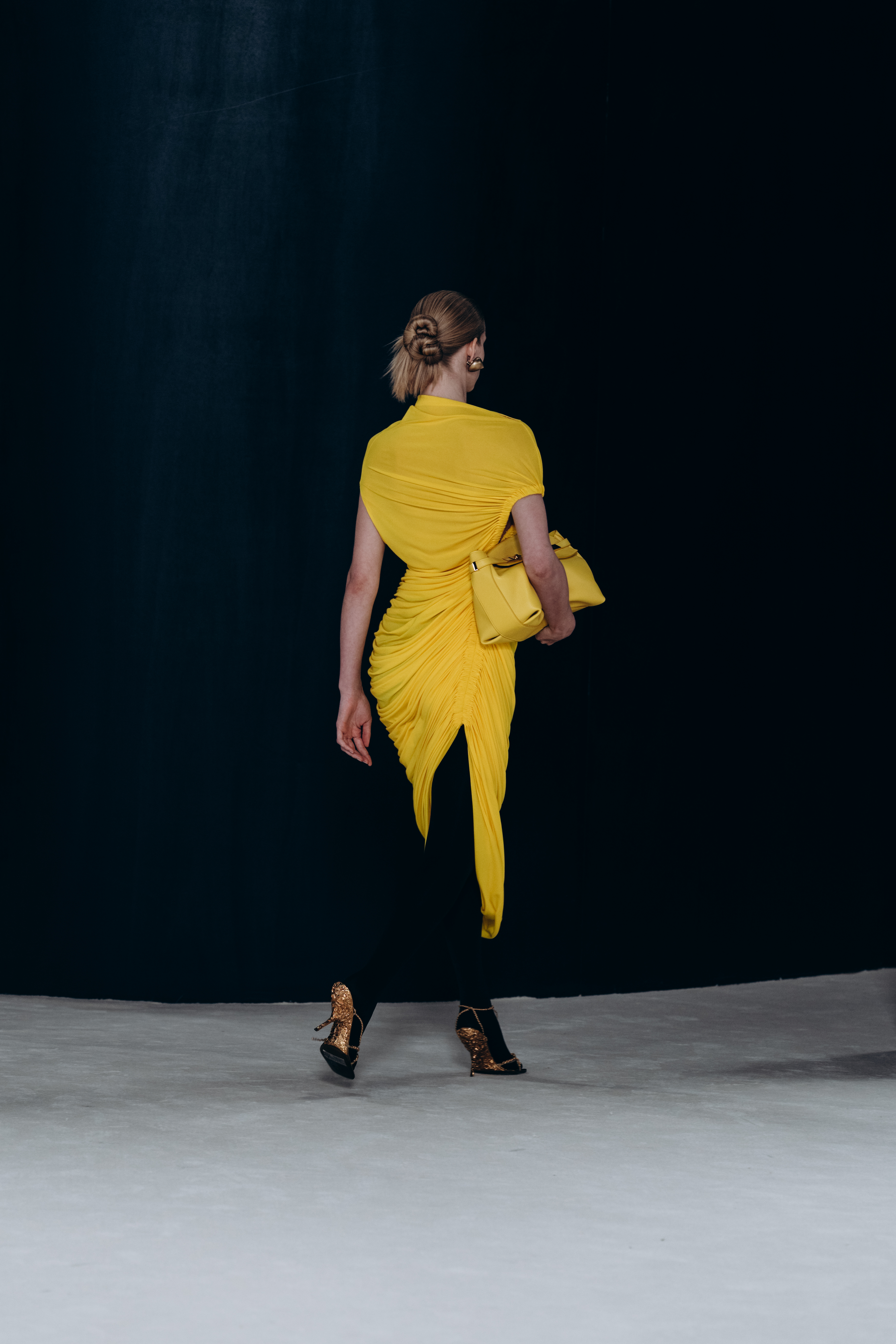 For Autumn-Winter 2023, Maximilian Davis returns to Hollywood, the second home of Salvatore Ferragamo, to draw upon the wardrobes of stars who the house worked with throughout the 1950s. Seen through the lens of clean-cut modernity, their hyper-feminine beauty adopts an alien futurism; the volumes and silhouettes of the era distinctly displaced.