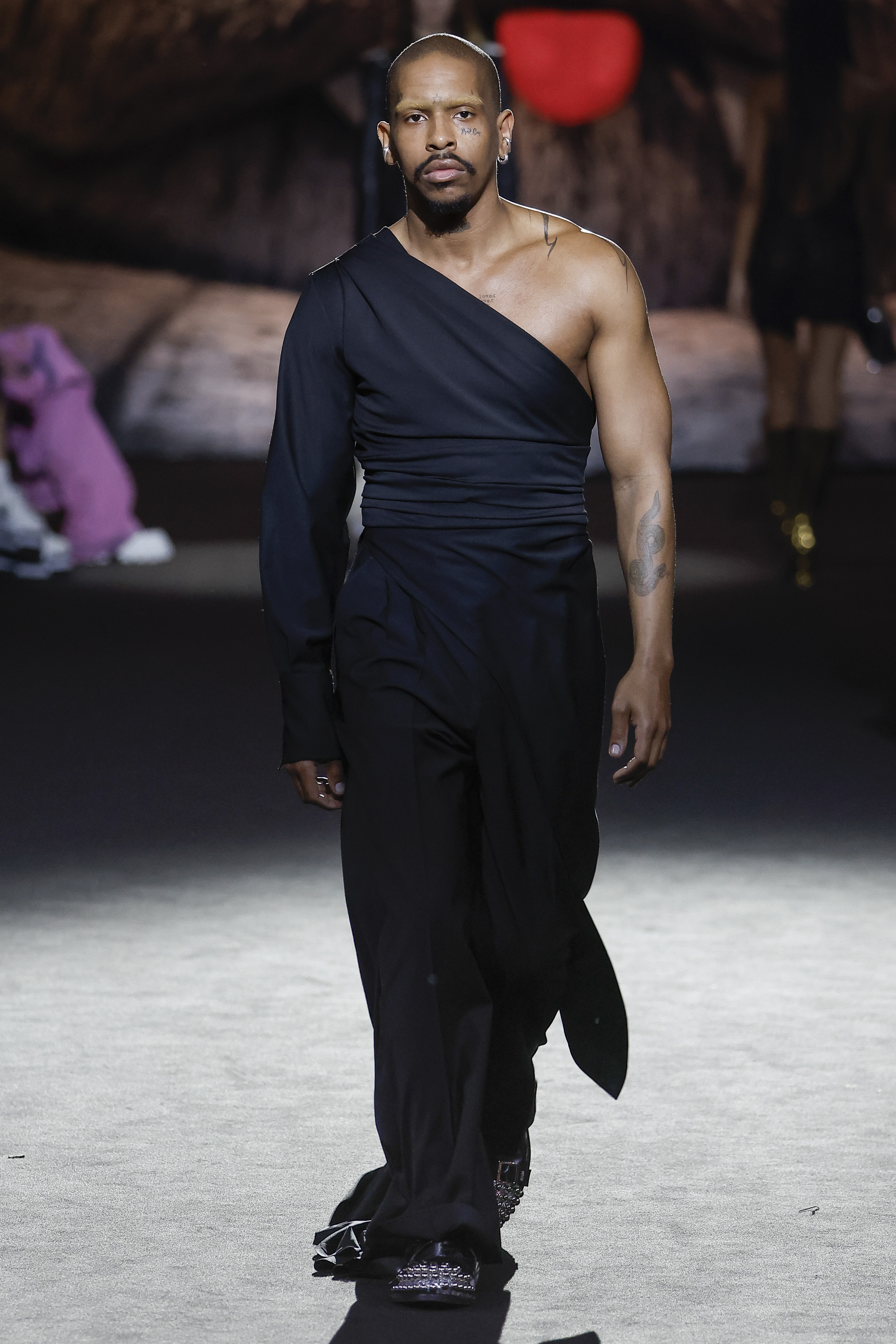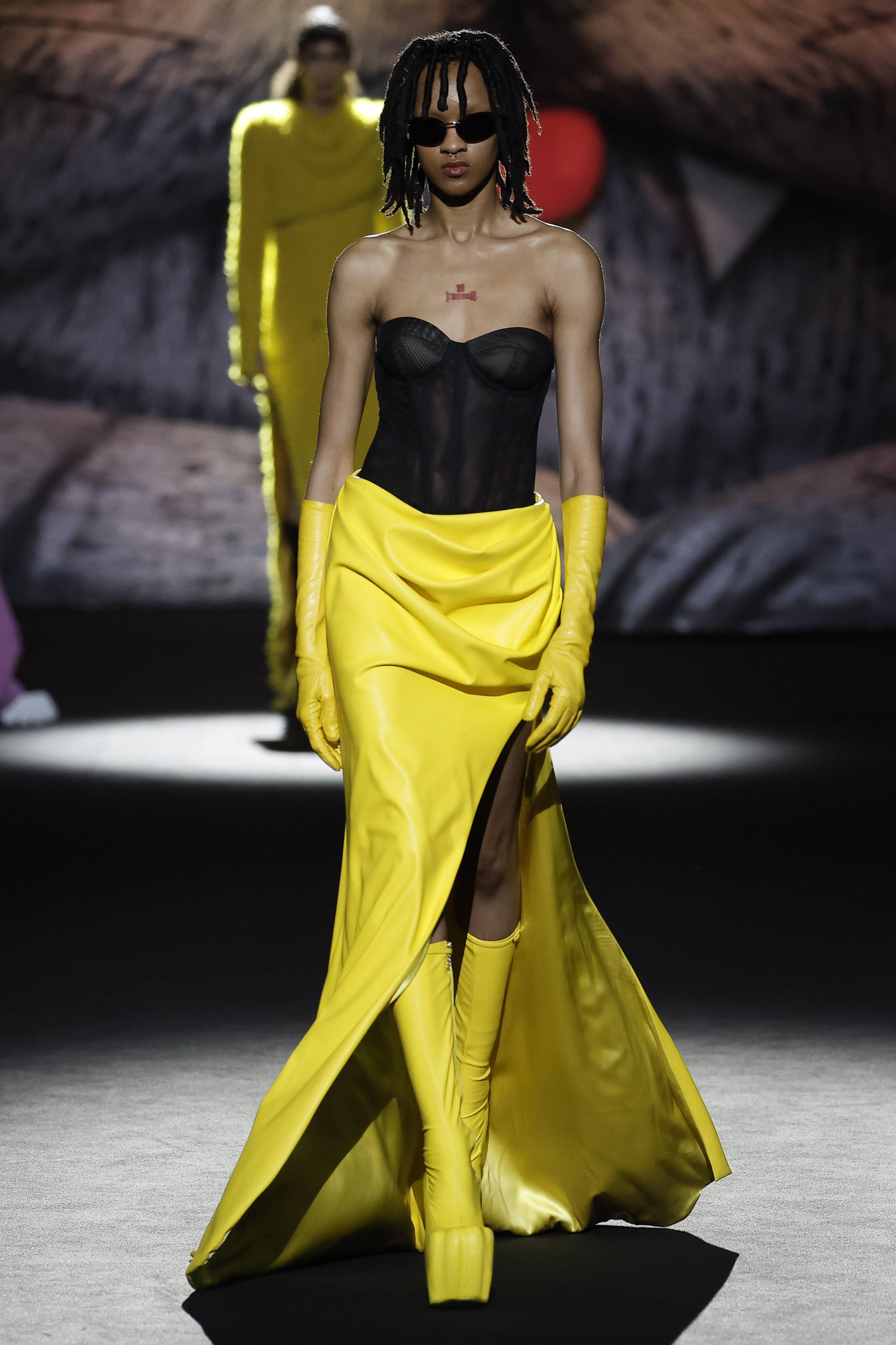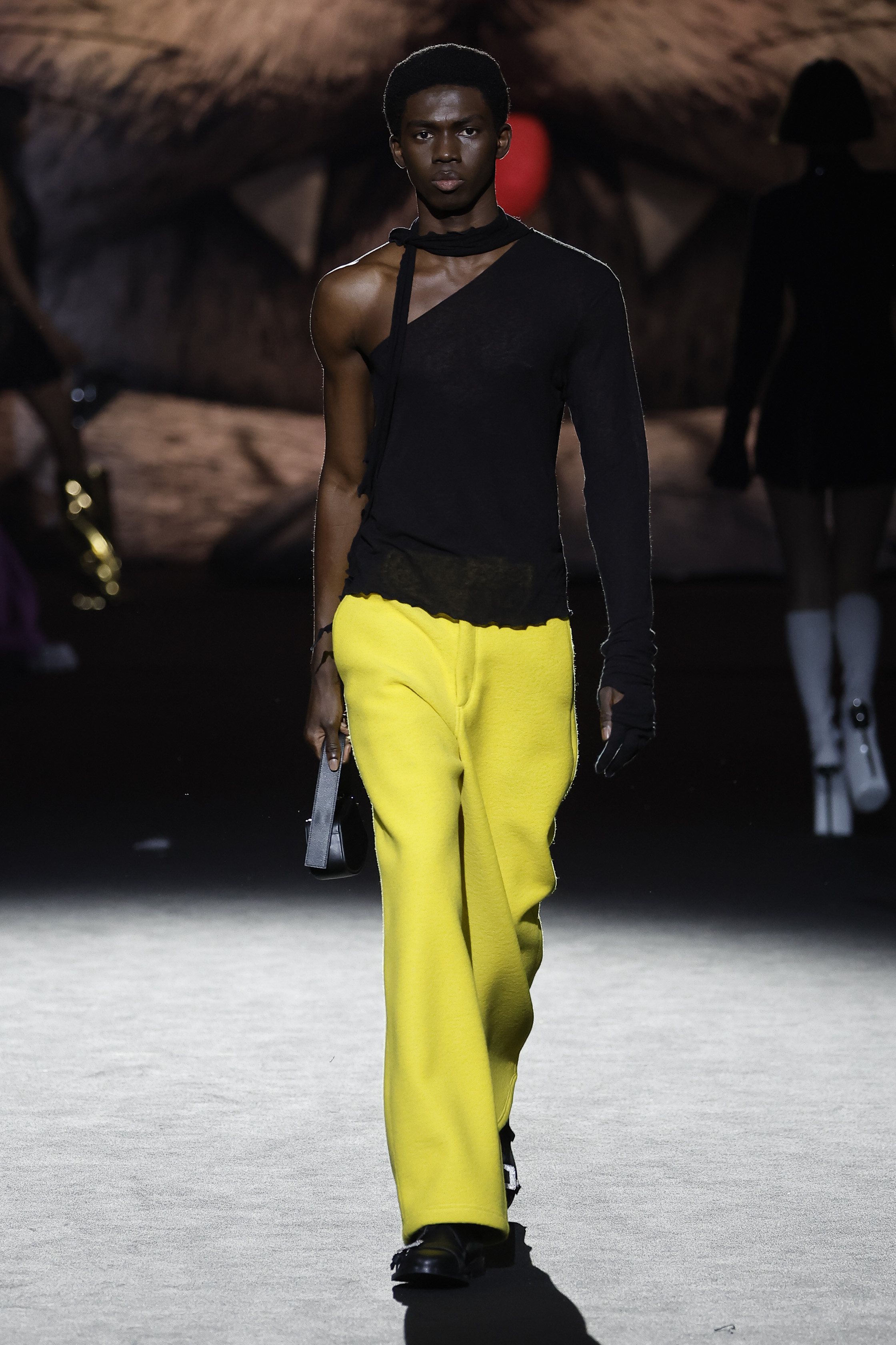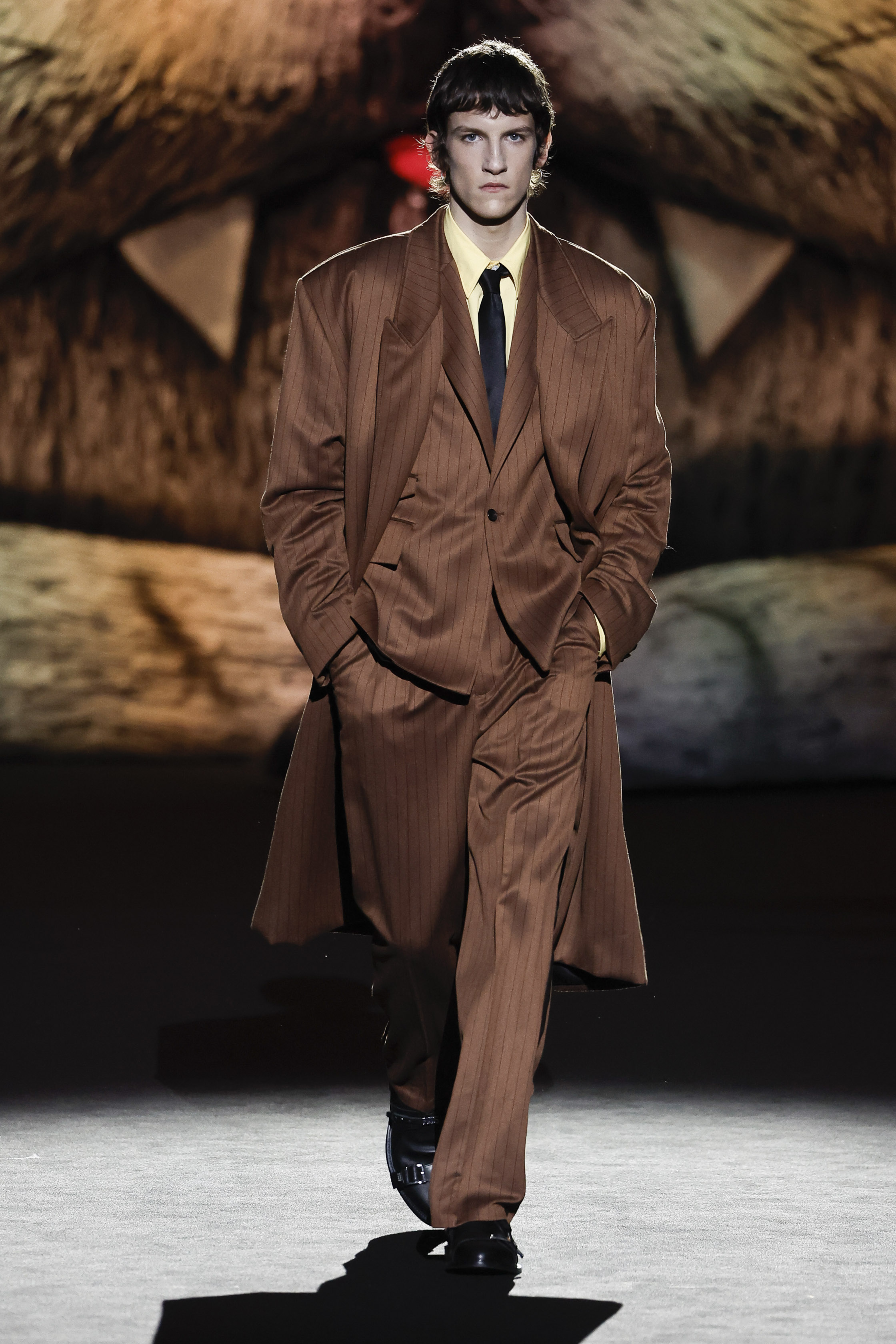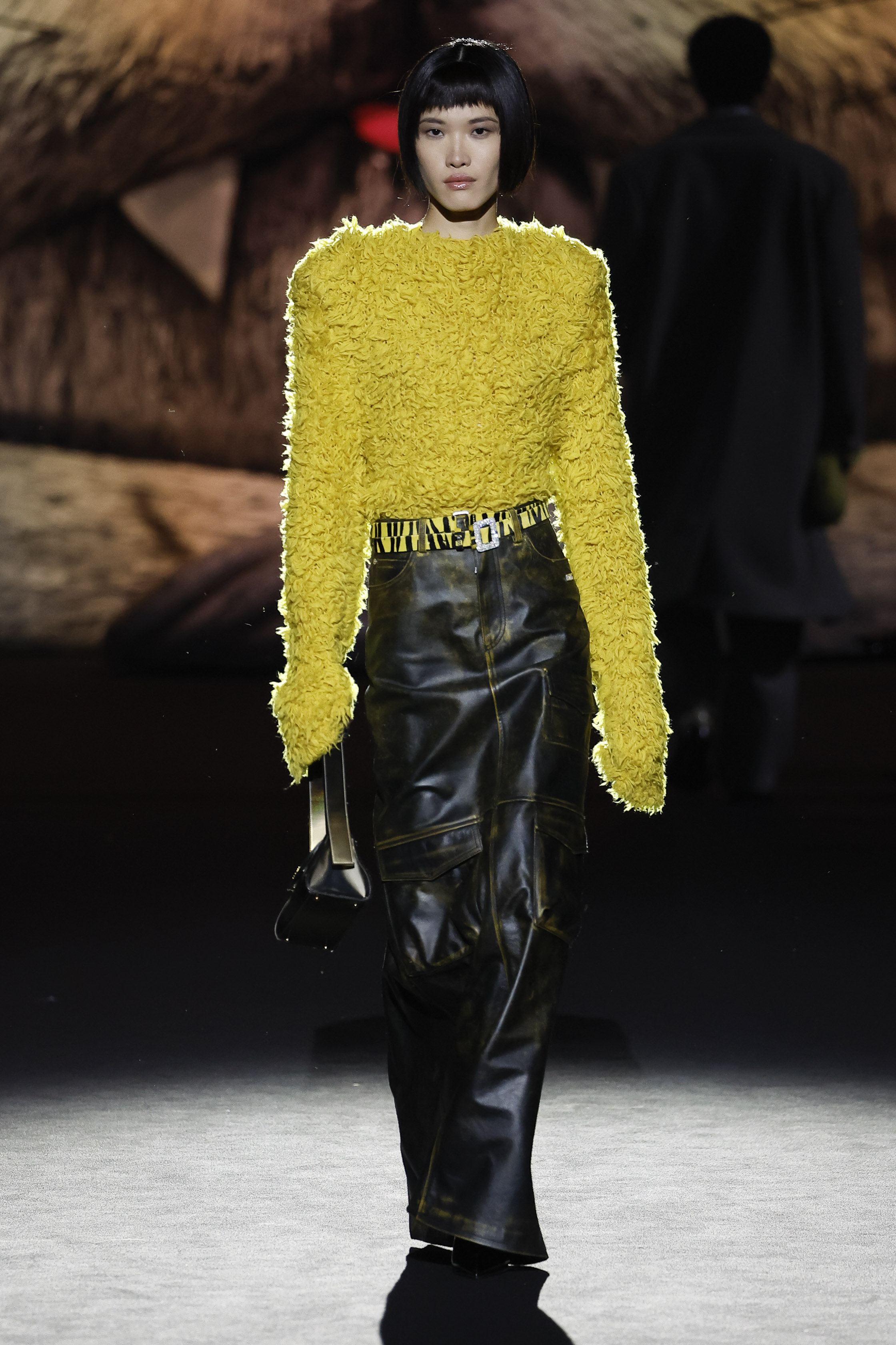 Reducing the distance between his perceived public persona, and who he really is, this season Giuliano Calza brings the GCDS action home. Literally, in his household, where Kittho the cat reigns supreme. It’s Kittho himself who presides over the catwalk, blown up to gigantic proportions thanks to the artistry of Carnevale di Viareggio masters Fratelli Cinquini Scenografi e - another celebration of Made in Italy craft and skills - and covered in newspaper clippings - that’s just because Giuliano feeds his creativity with the news. There is nothing Giuliano loves more than being with Kittho, but most of all there is nothing he loves more than making clothes: real ones, meant to be worn, not tricks intended to trigger viral yet virtual response. This collection is a fusion of such urgencies, condensed in a pure act of fashion making.