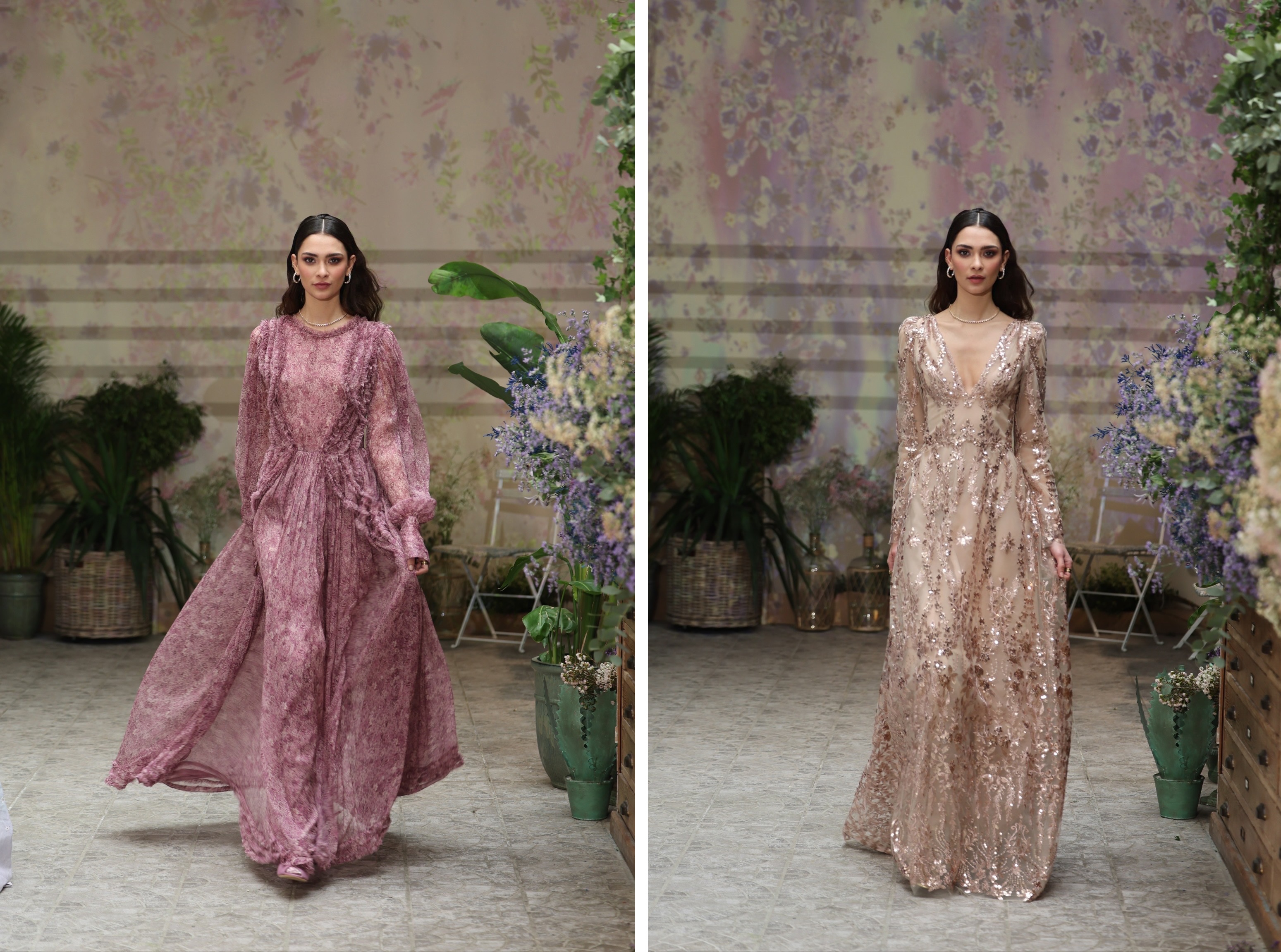 The colour palette plays with three main themes: the pinks, from dusty tones to lilacs and taupes, till the depth of ruby, bordeaux and aubergine with magenta touches; the greens (moss and sage); the blues, deep as navy, up to black.