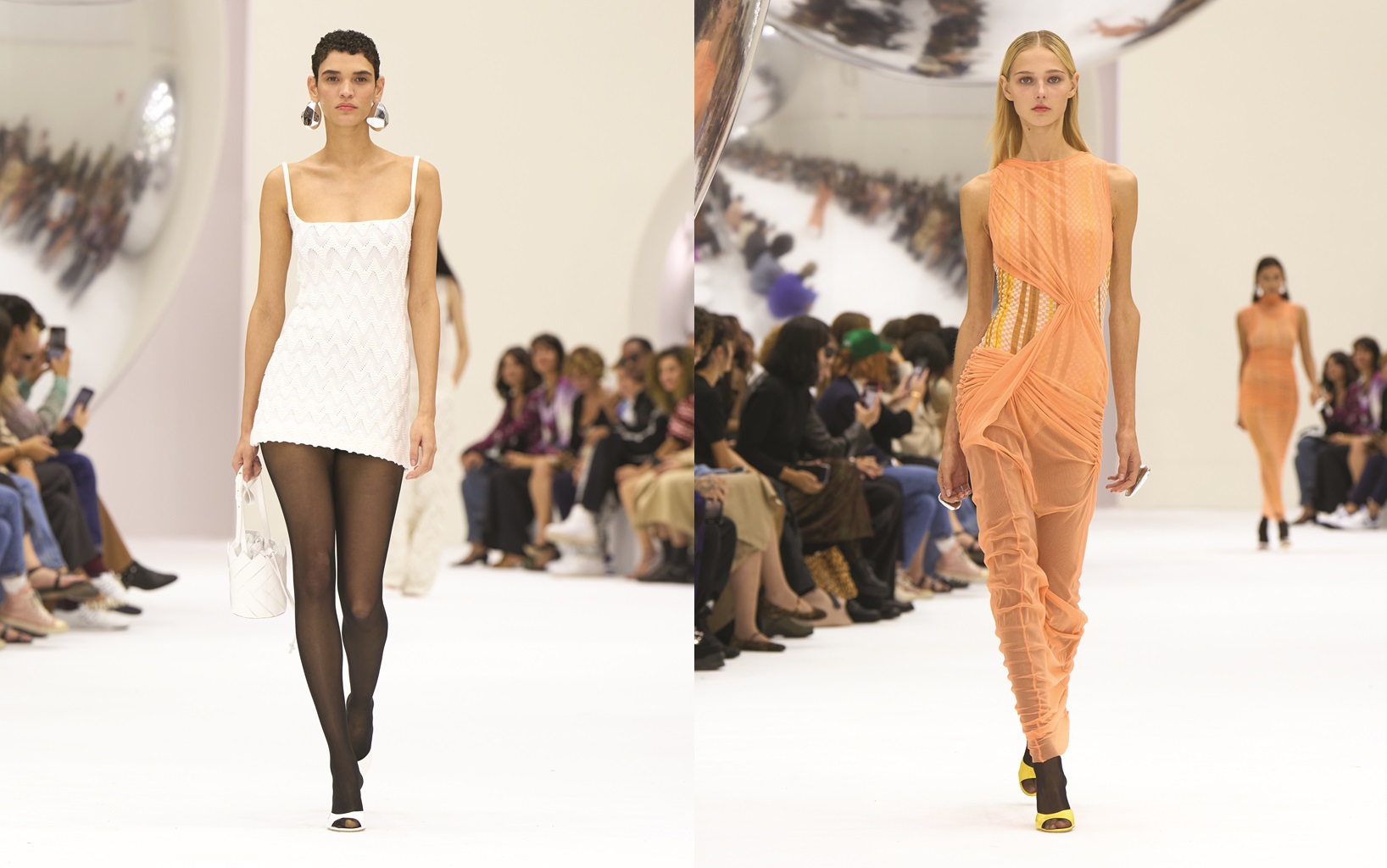The flutter of a ruffle and the rhythm of a pattern put the act of living in the moment under the lens of a kaleidoscope, and the result is always different. This playful Missoni Spring/Summer 24 collection arises from a cheerful question: How to enjoy reality? The answer materialises in exploring the joys of matter, shape, and colour. And then: contrasting the masculine and feminine, generous volumes and tight lines; layering transparencies over Missoni patterns; allowing “Missoni-isms” to expand onto unexpected fabrics like sangallo. Just like the combinations in a kaleidoscope are infinite, so are the Missoni ways to enjoy reality — as many as one desires.