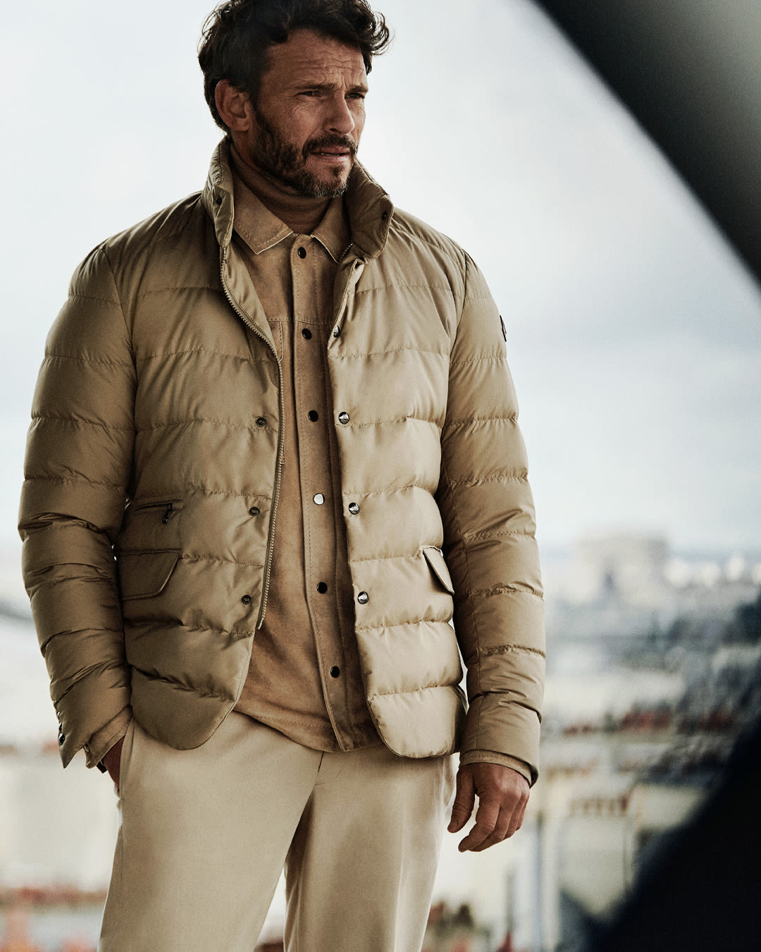 Outerwear steps up in time for autumn and winter weather, proposing smart, functional designs in signature Moncler nylon, elevated by accents of finest leather, shearling or suede. Overshirts and sumptuous wool and cashmere knits anchor the aesthetic in a refined color palette of perennial neutrals. New additions of velvet and tinted yarn, with discrete patterns and minimalist graphics add subtle interest to the lineup. The essential uniform of pared-down looks takes the Fall/Winter collection through life’s daily spheres seamlessly, where classic