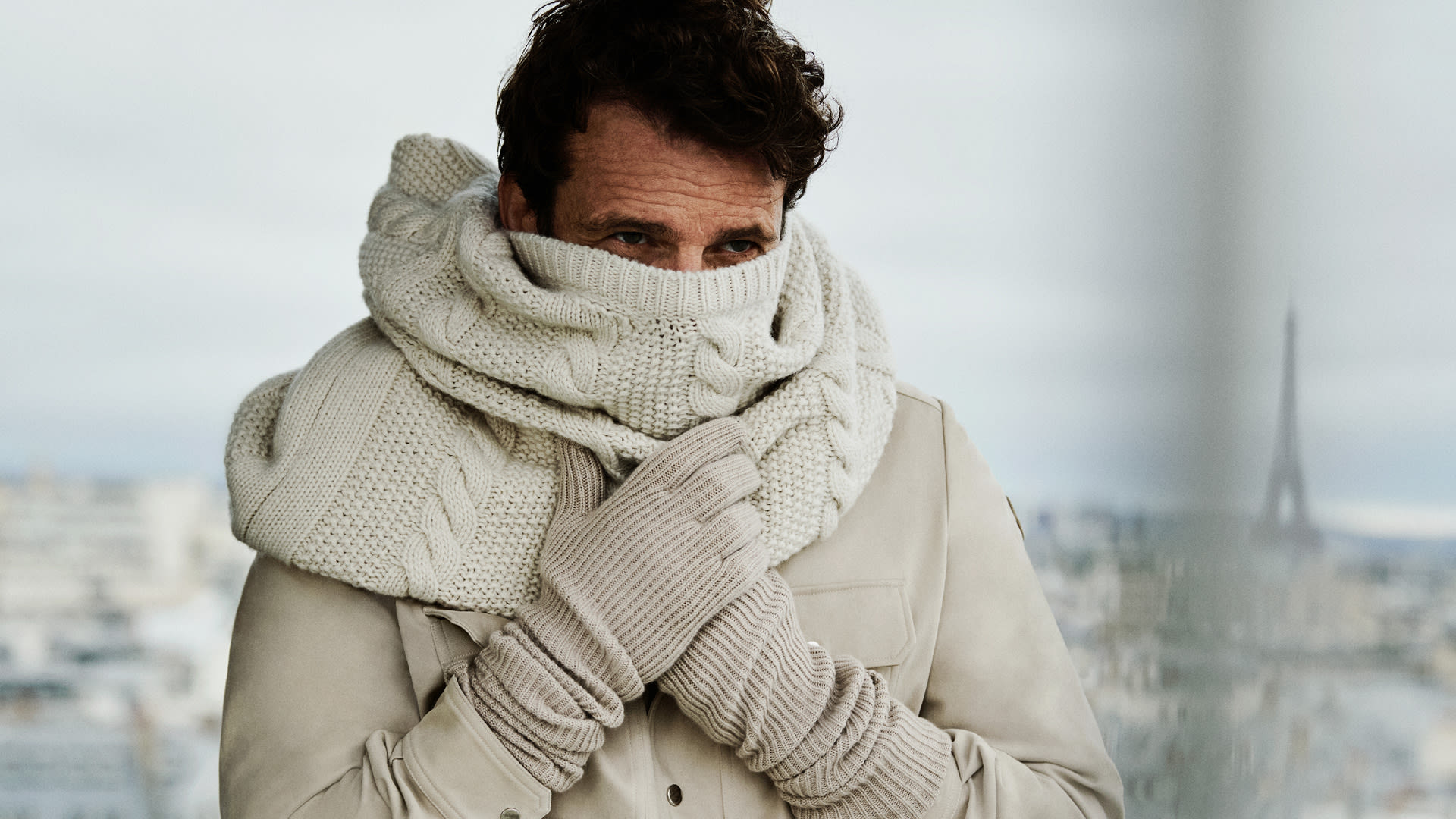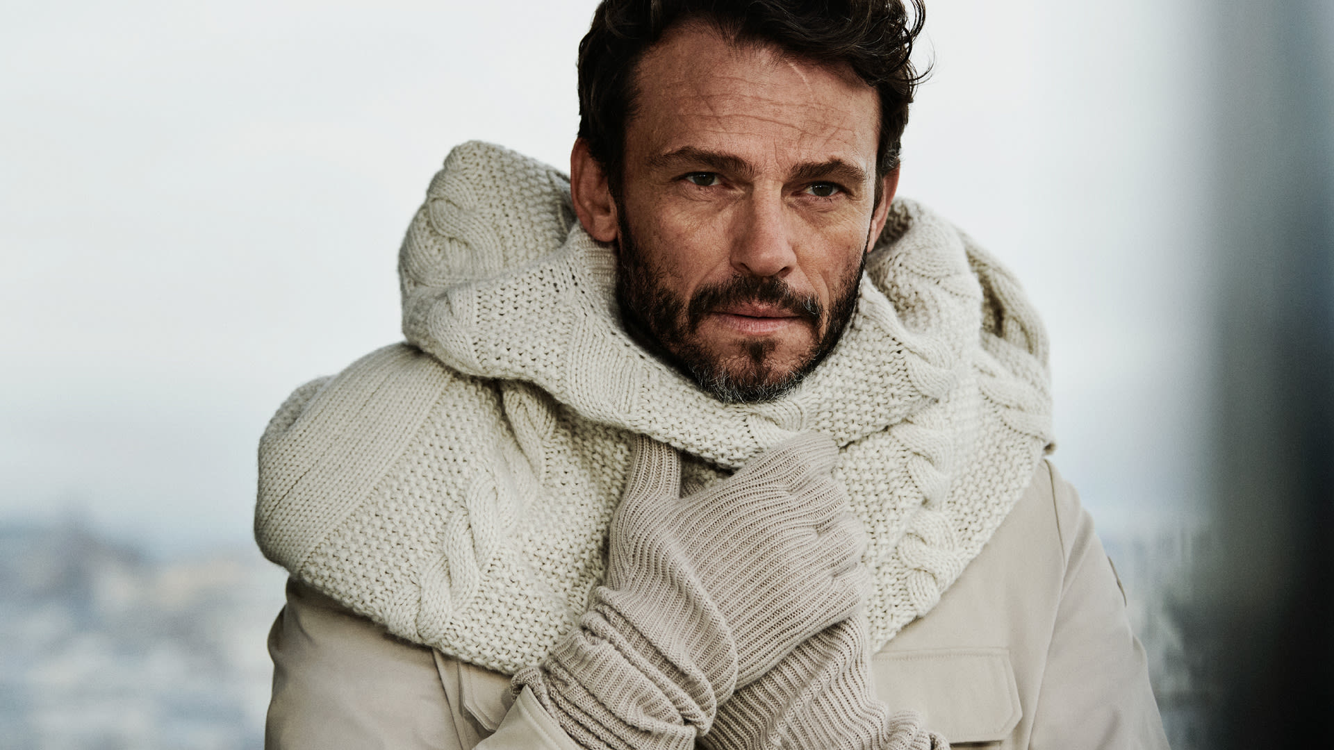 A passionate surfer turned actor, Arnaud Binard’s innate charm chimes with the collection’s effortless confidence– ton-sur-ton layers of beige and charcoal, tactile textures of corduroy and cable knit, smart accents of navy. A young actress on the rise, Maya Rose characterizes the ageless sophistication of the collection, pairing knit shorts with soft cashmere and wool layers and signature jackets.