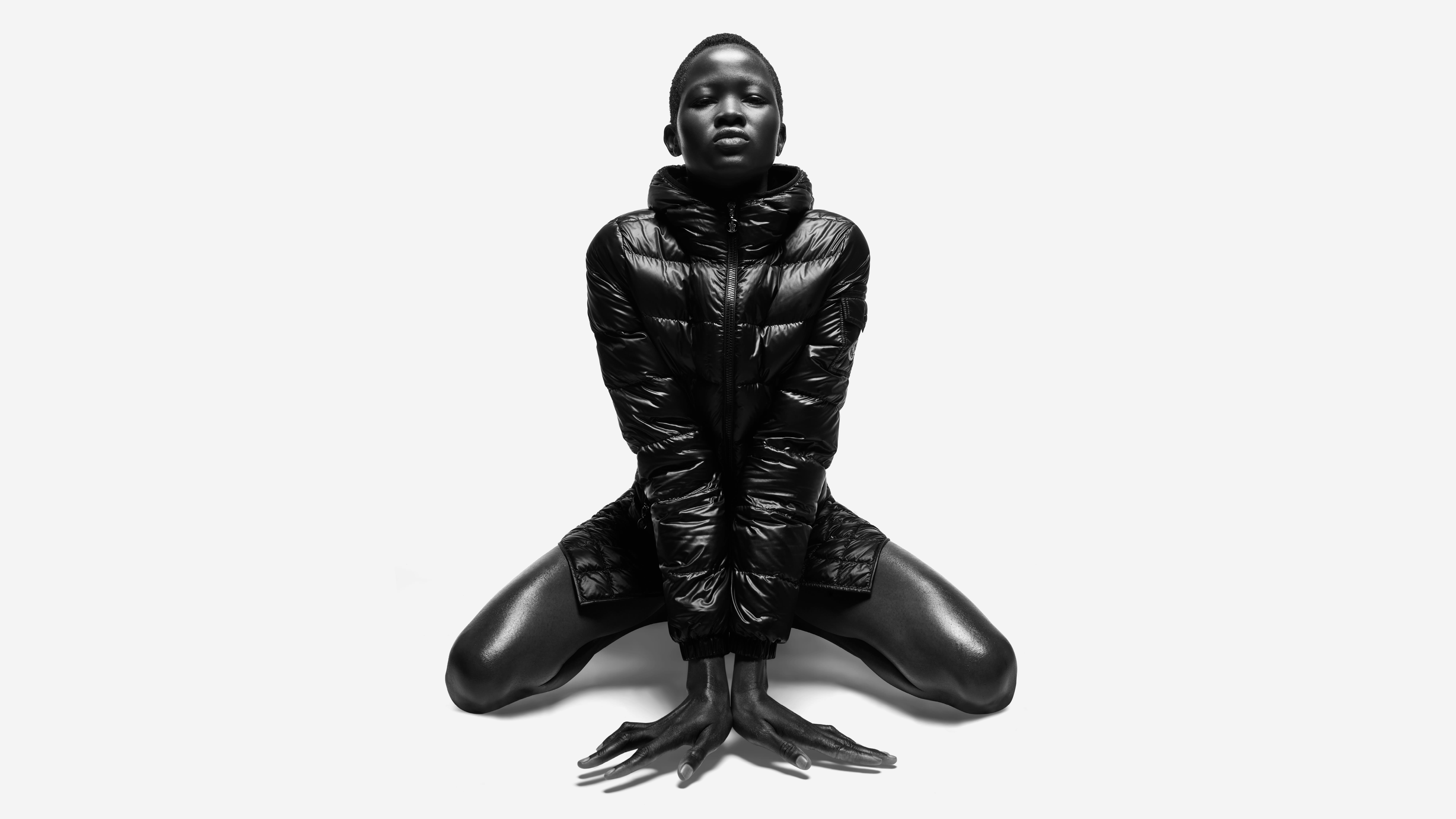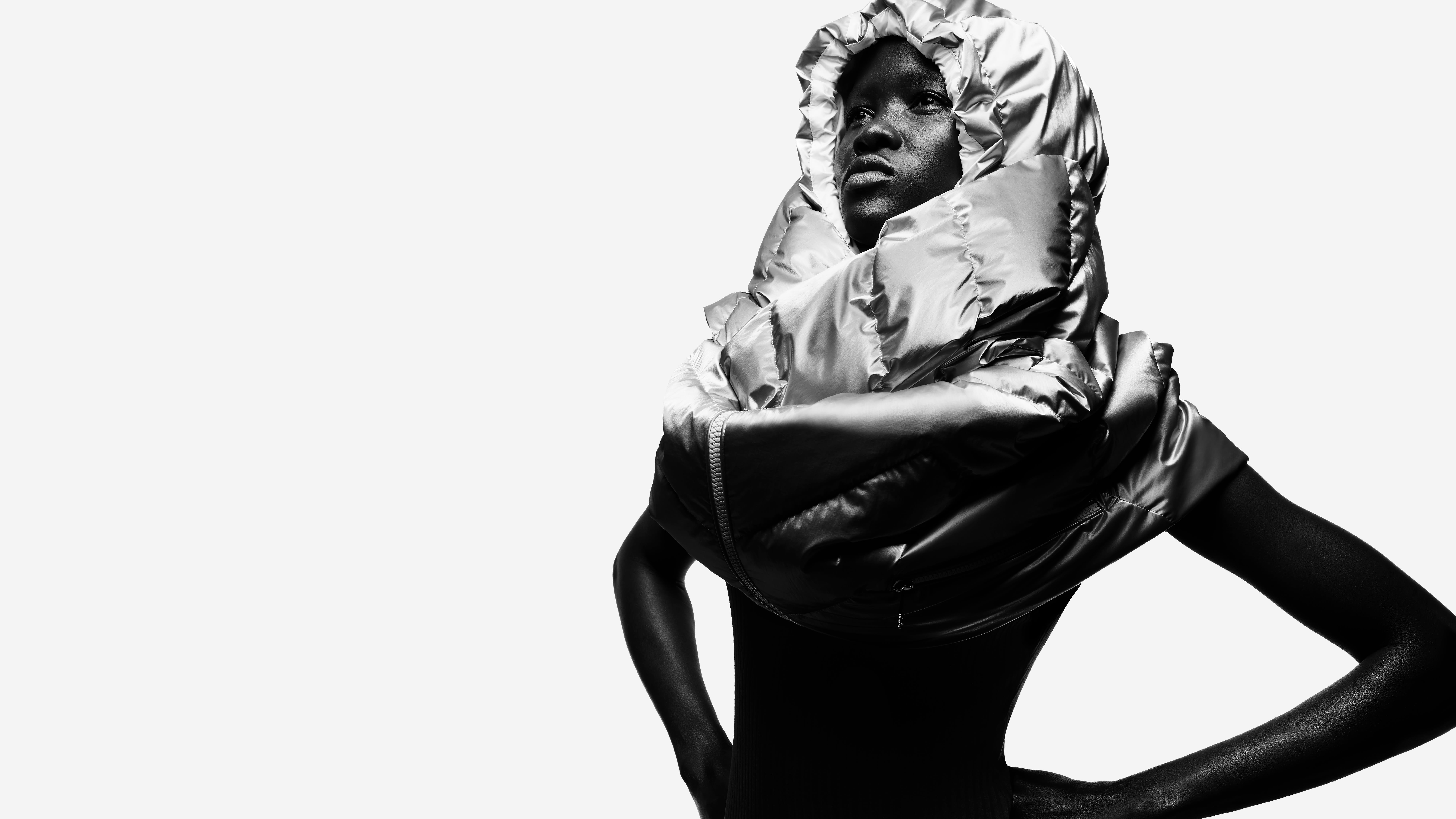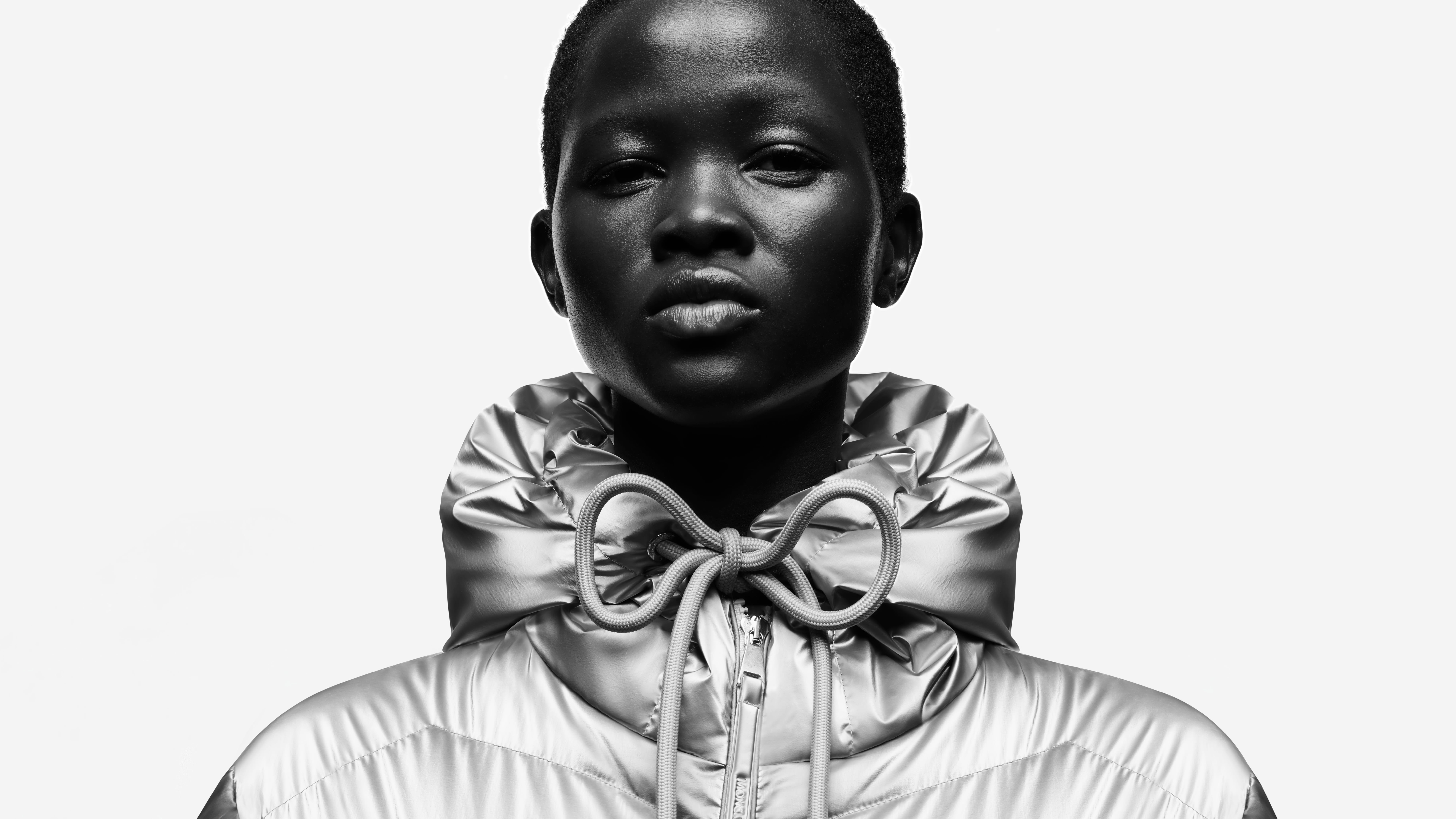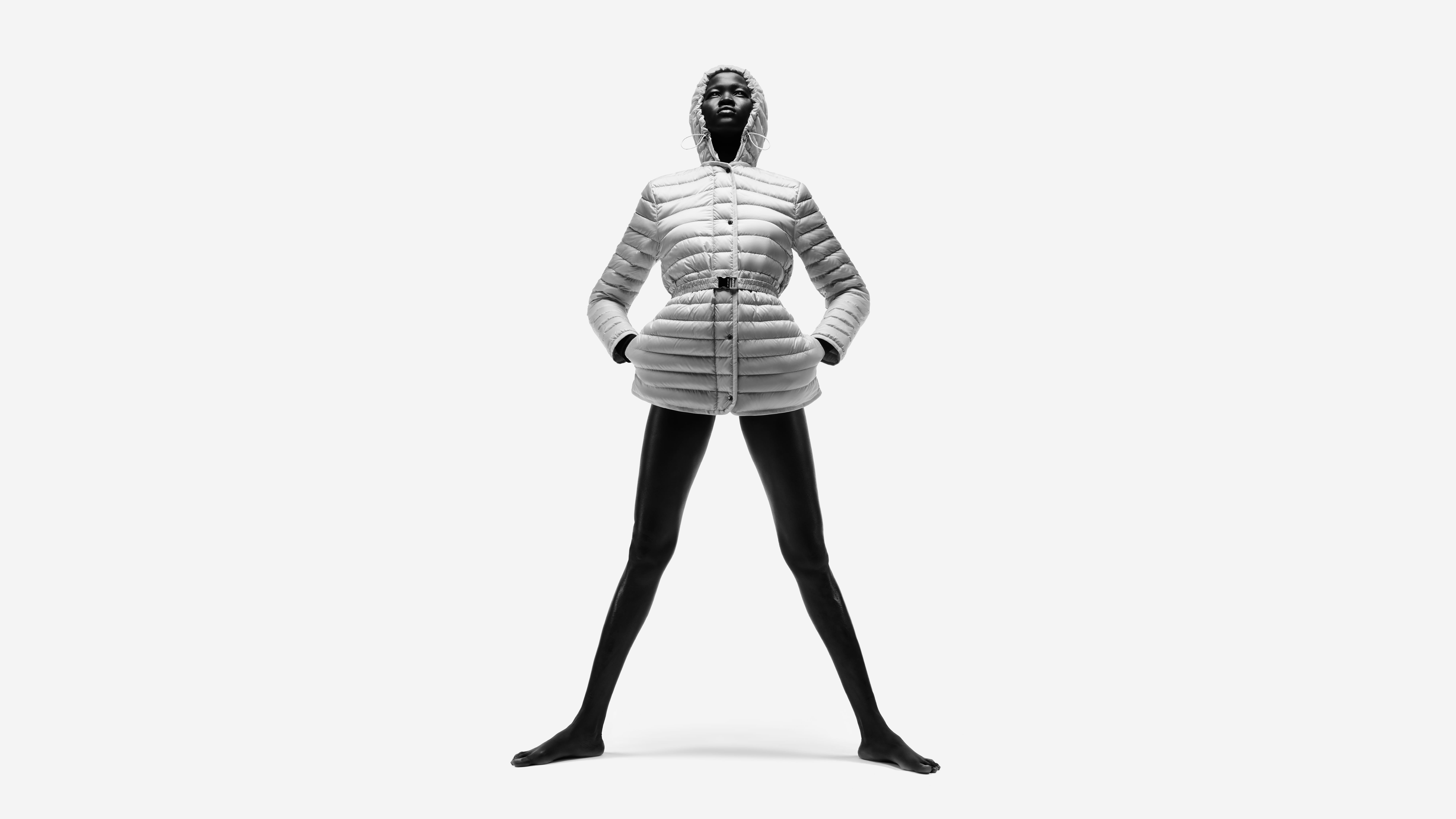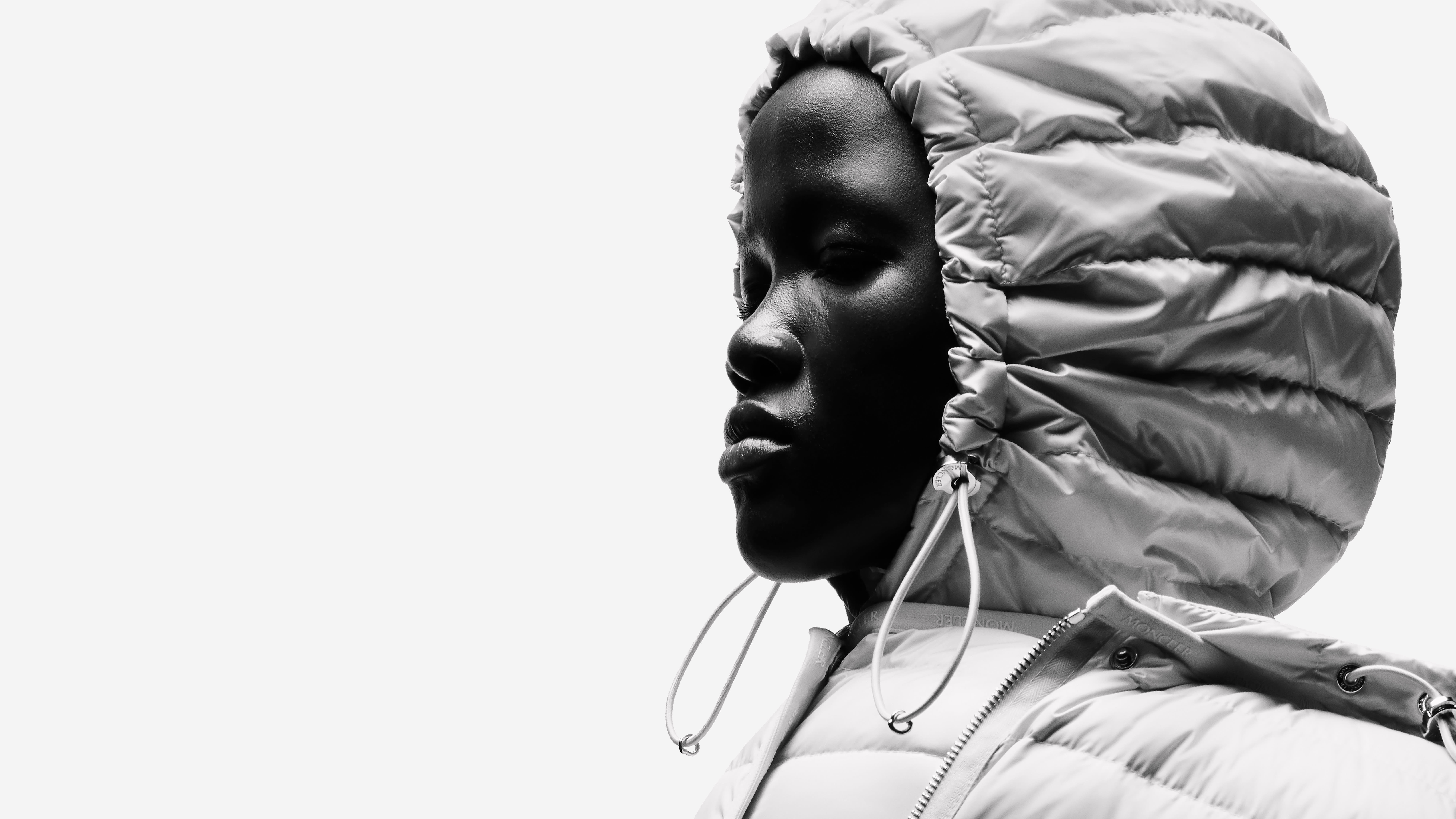 The visual concept offers a dramatic antidote to technicolor summer styling, showcasing stylized shots in predominantly monochrome chiaroscuro. Subtle interplay between silken and matt textures and stark angles brings new dimensions to details on lightweight puffers and transitional layers from Moncler Collection Summer 2023.