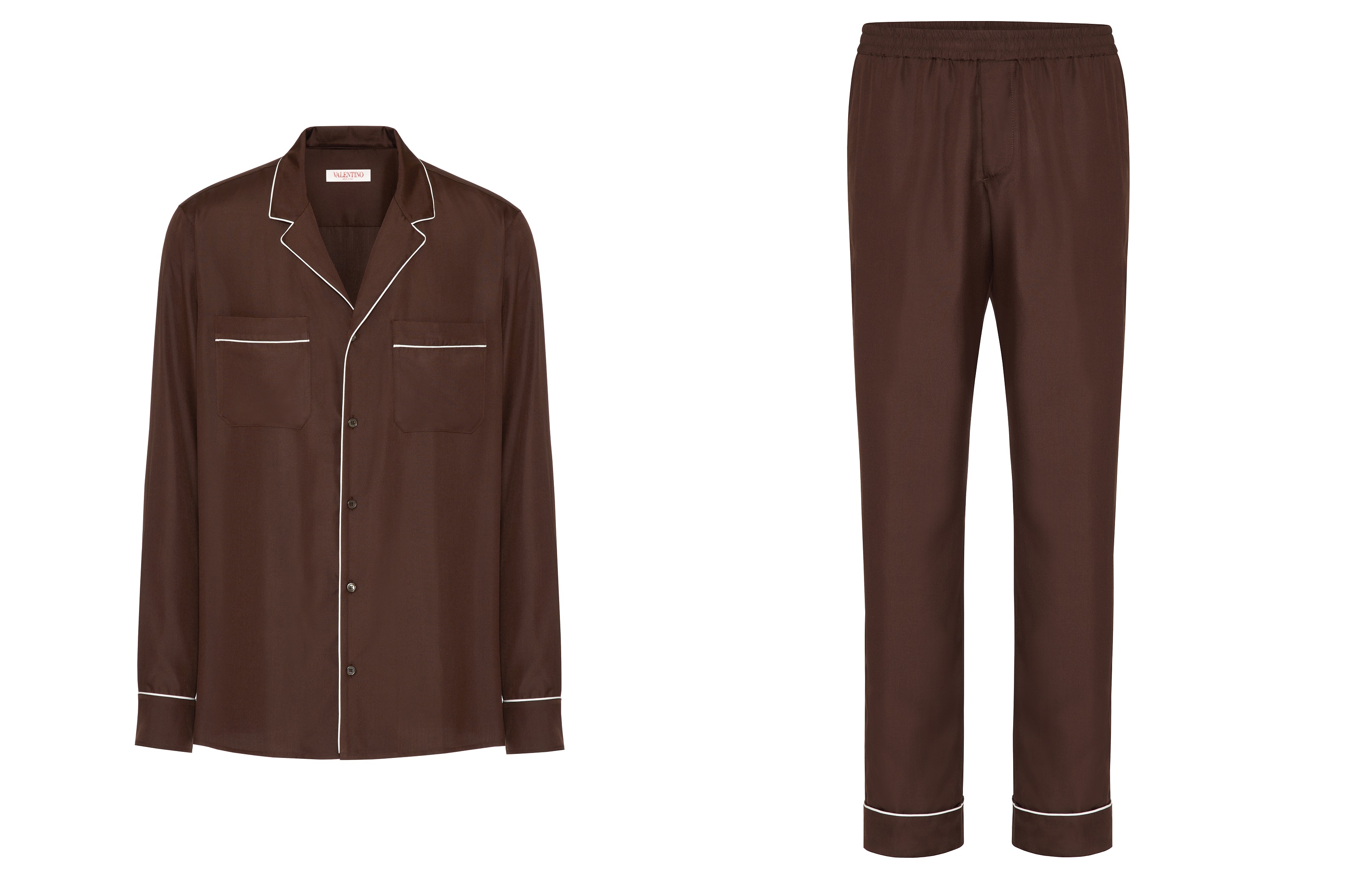 Over the seasons, polished silk fabric pyjamas have been decorated with Maison Valentino’s archival prints but also presented in monotone options. The classic black version is enriched by sophisticated white piping details.