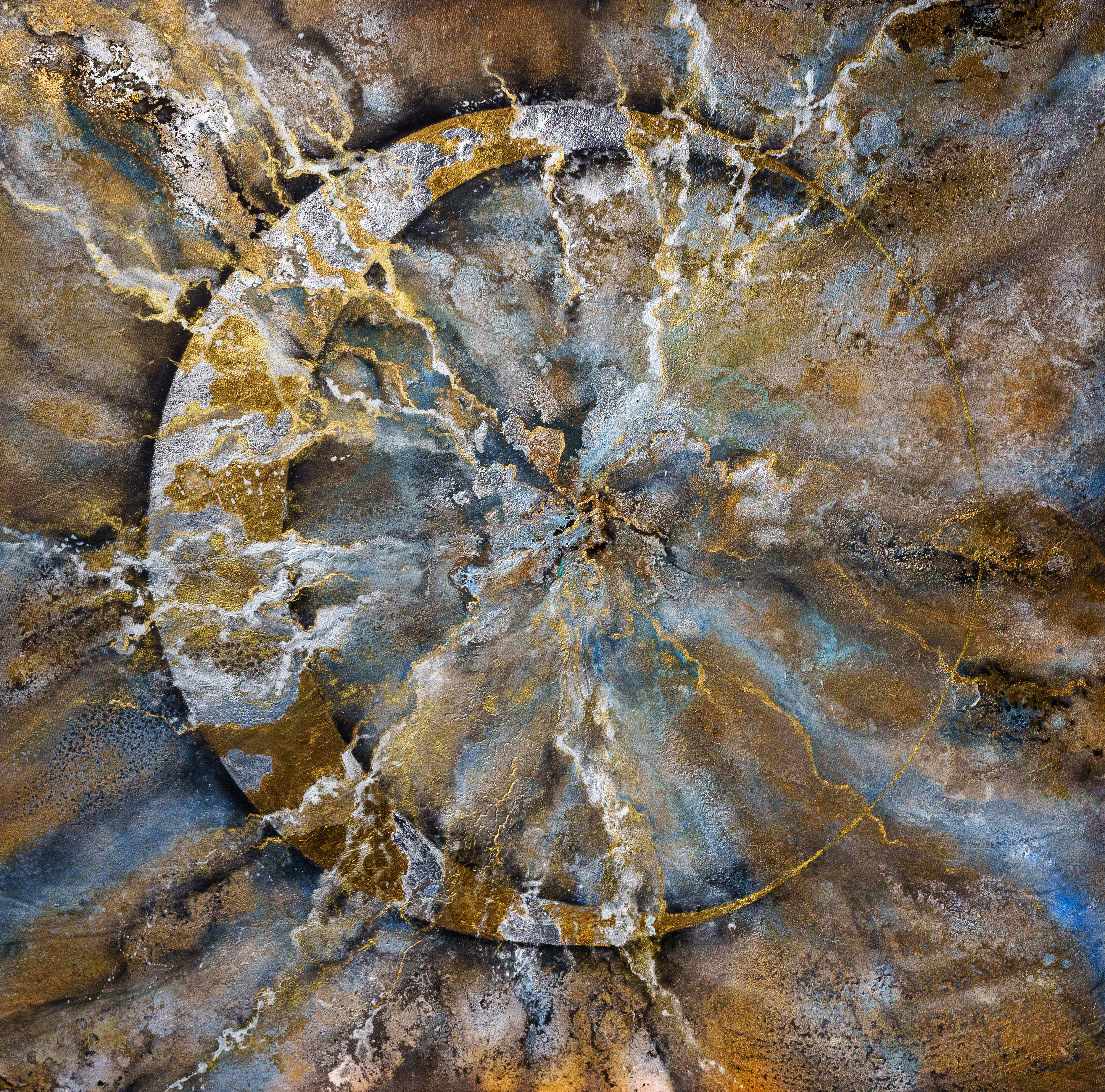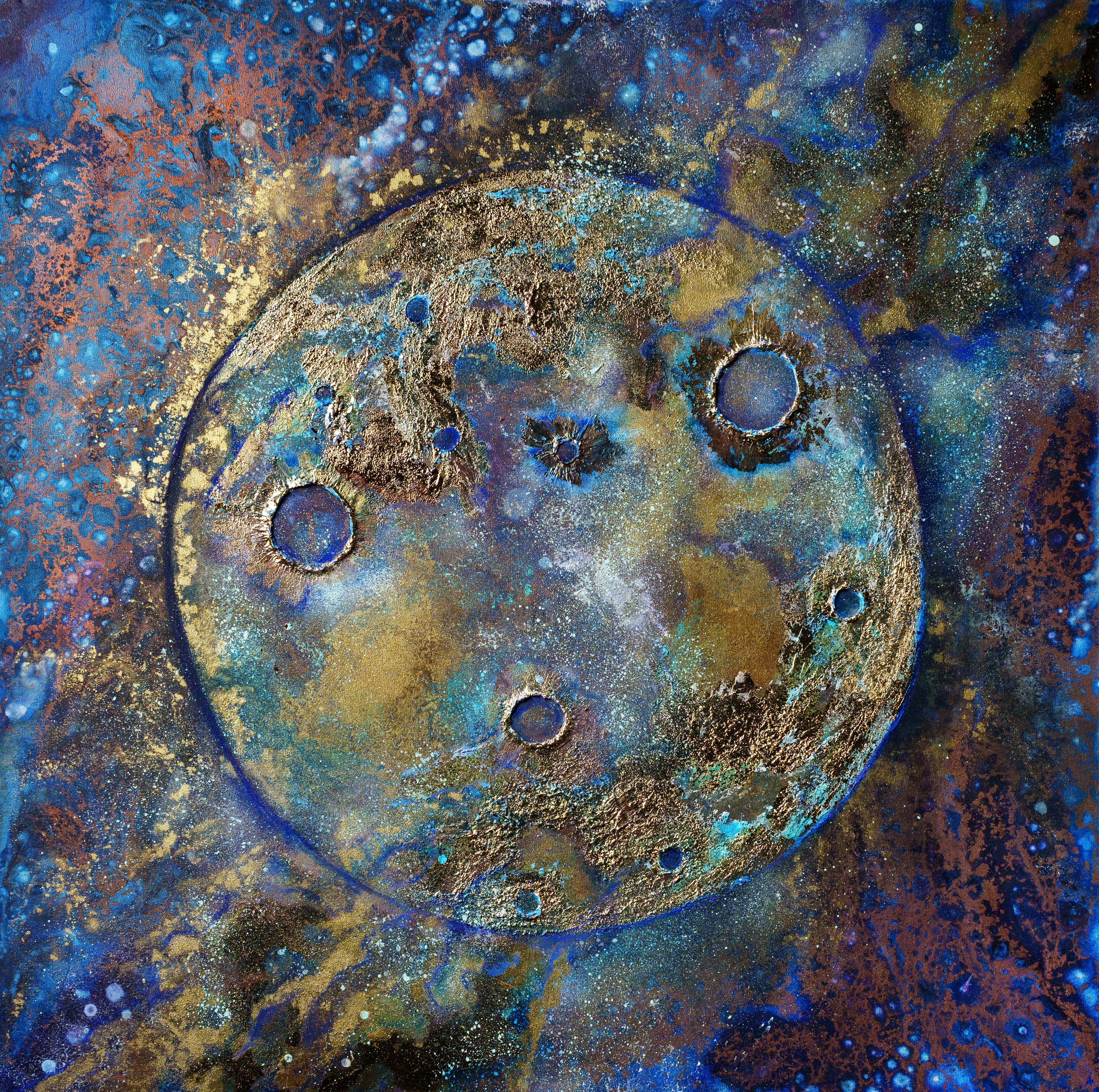 Maria Lys is a contemporary artist who utilizes traditional painting methods, fluid art techniques, epoxy resin as well as gold and silver leaves to create unique pieces that play with colour and appeal to viewers’ subconscious. Occasionally, she integrates semi-precious stones and minerals to add a natural touch and sacred mystery to her work. She believes that artists are conductors of higher energy and uses her painting as a tool for expressing her innermost feelings and experiences.