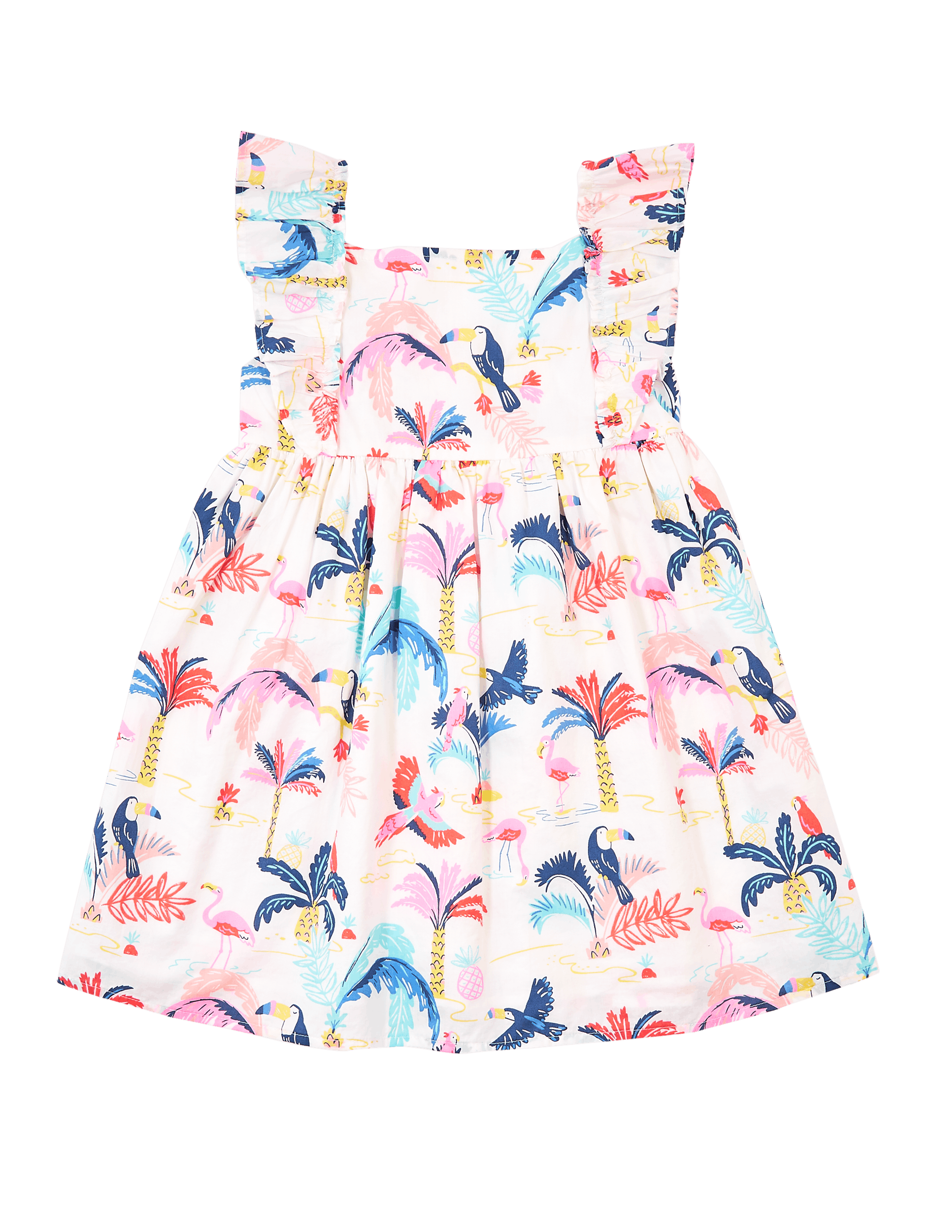 Hero pieces from the girl’s collection include the Pure Cotton Flamingo Print Dress, decorated with a colourful print of toucans, flamingos and palm trees, an elasticated neckline for comfort and finished with charming ruffled sleeves. The Denim Shirred Jumpsuit will also be a sure hit for little fashionistas, with a shirred bodice and a wide cropped leg for easy movement.
