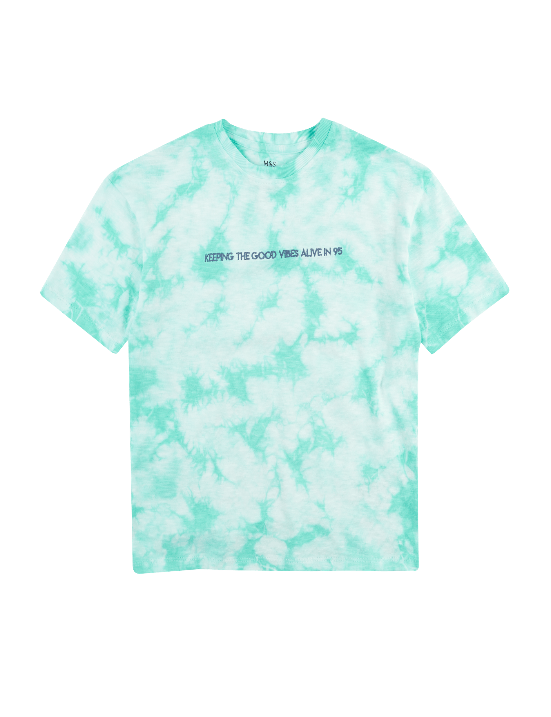 Boys can sport the season’s tie-die trend with a Pure Cotton Tie Die Slogan T-Shirt, channelling 90’s vibes with ‘Keeping the good vibes alive 95’ embroidered across the front and a textured graphic and embroidery on the back. Whilst the Pure Cotton Shark Shorts feature fierce shark patterns and turn-up hems. A drawstring at the waist helps find the regular fit.