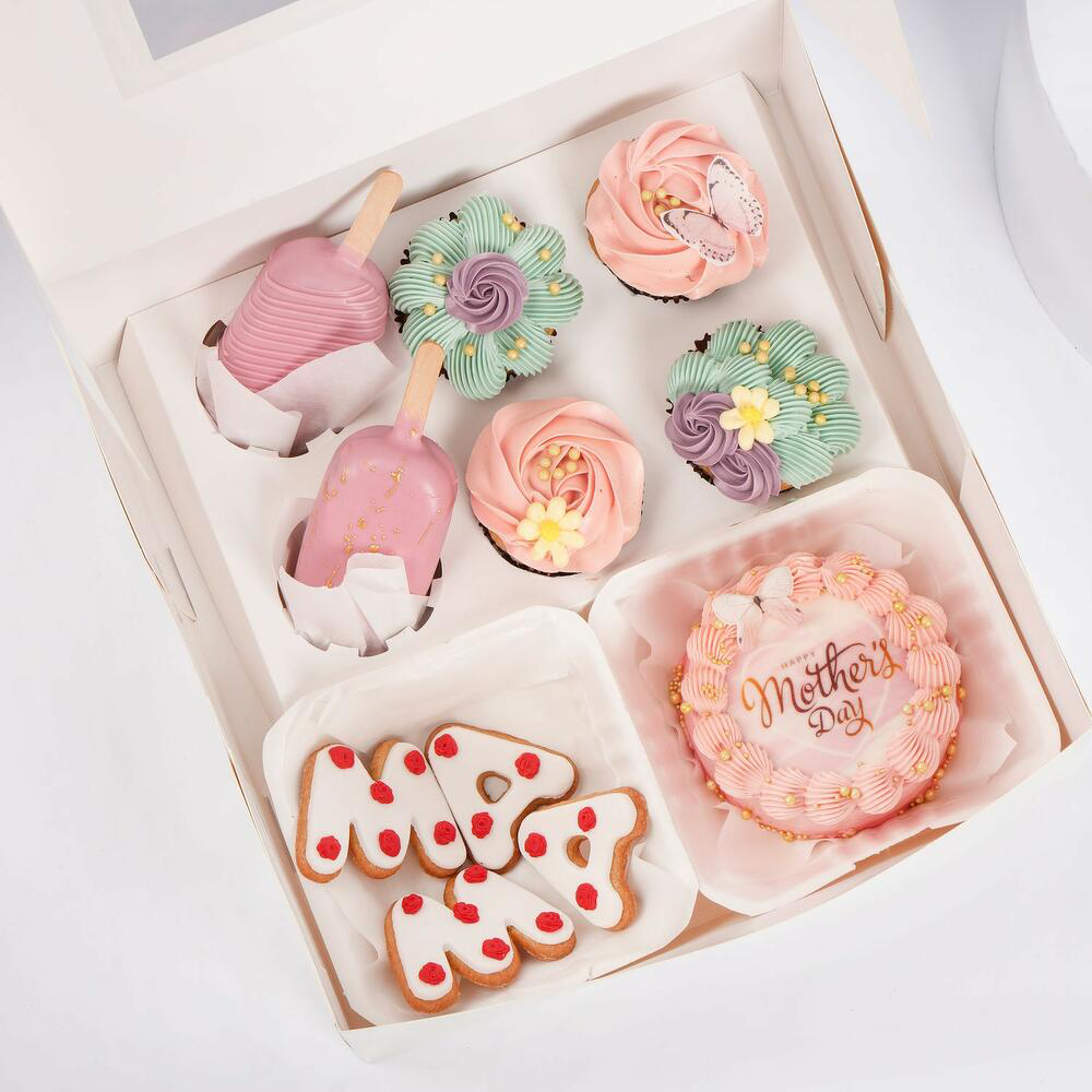 Spoil your mum with this delicious gift box, filled with a variety of treats to satisfy every craving – bento cake, cupcakes, cookies, and popsicles. Ideal for indulging on her special day, this themed box brings together everything she loves in one heartfelt package.