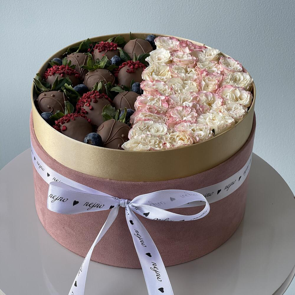In this premium box, luxurious roses meet indulgent chocolate-covered strawberries and fresh blueberries, making it the perfect gift for Mother’s Day. A beautiful blend of elegance and sweetness, it’s sure to brighten her day.