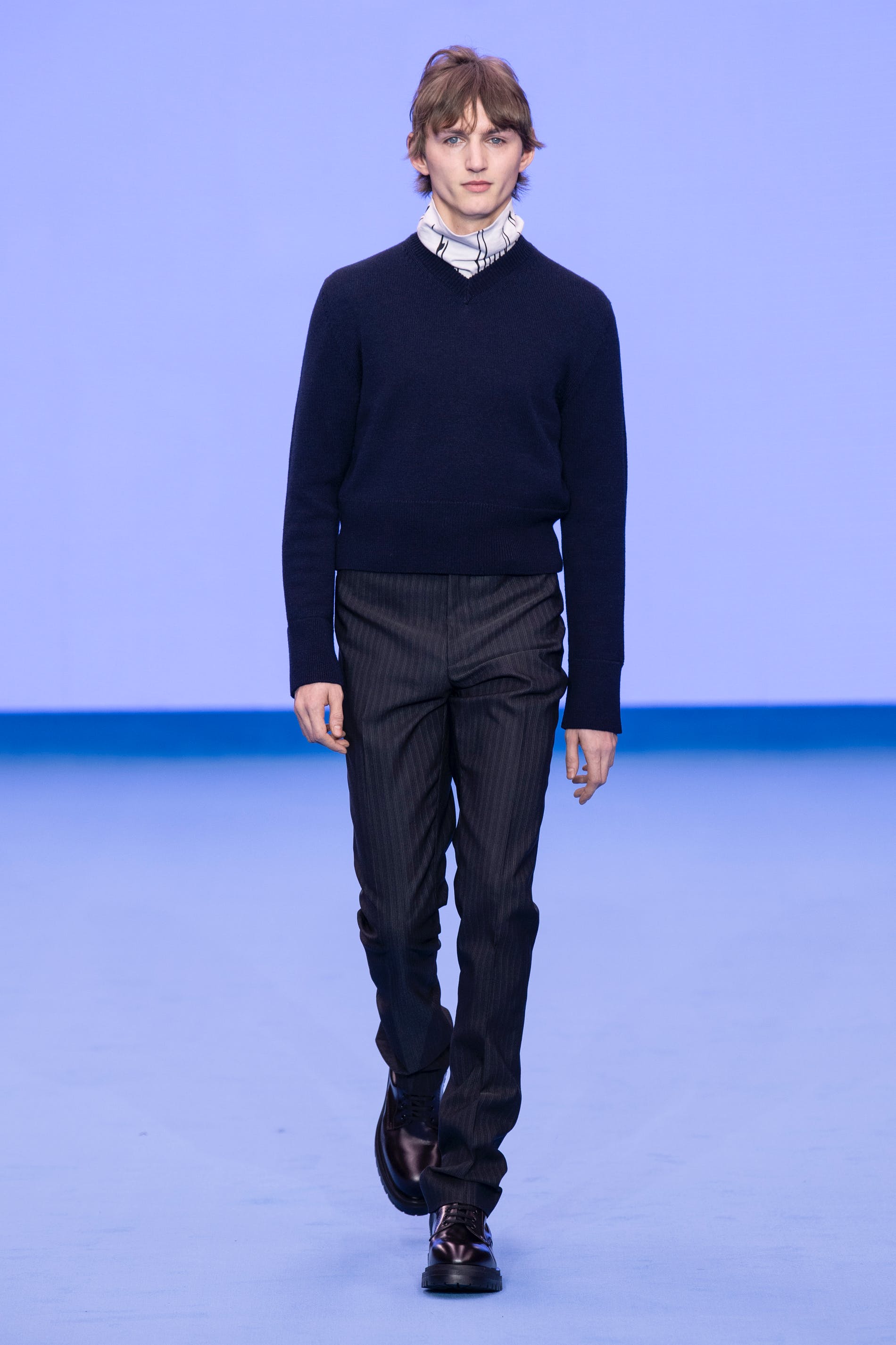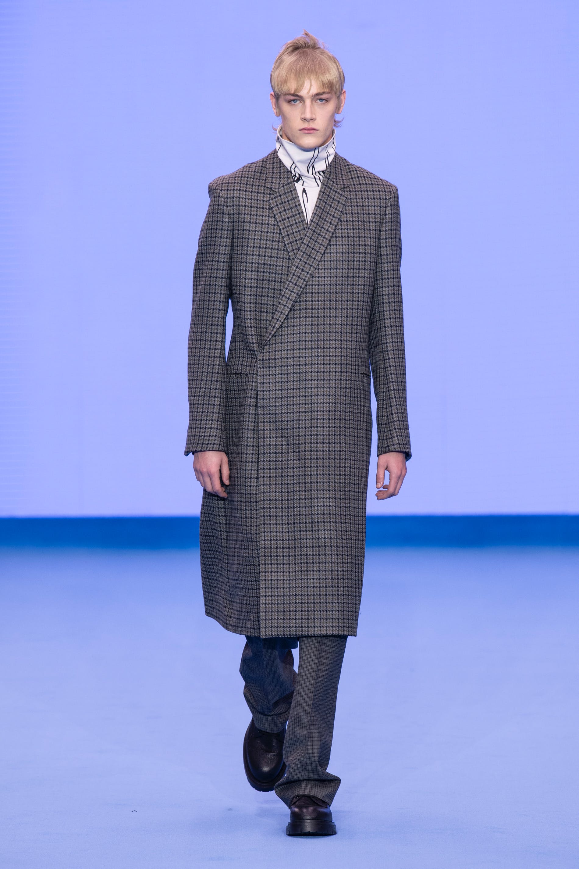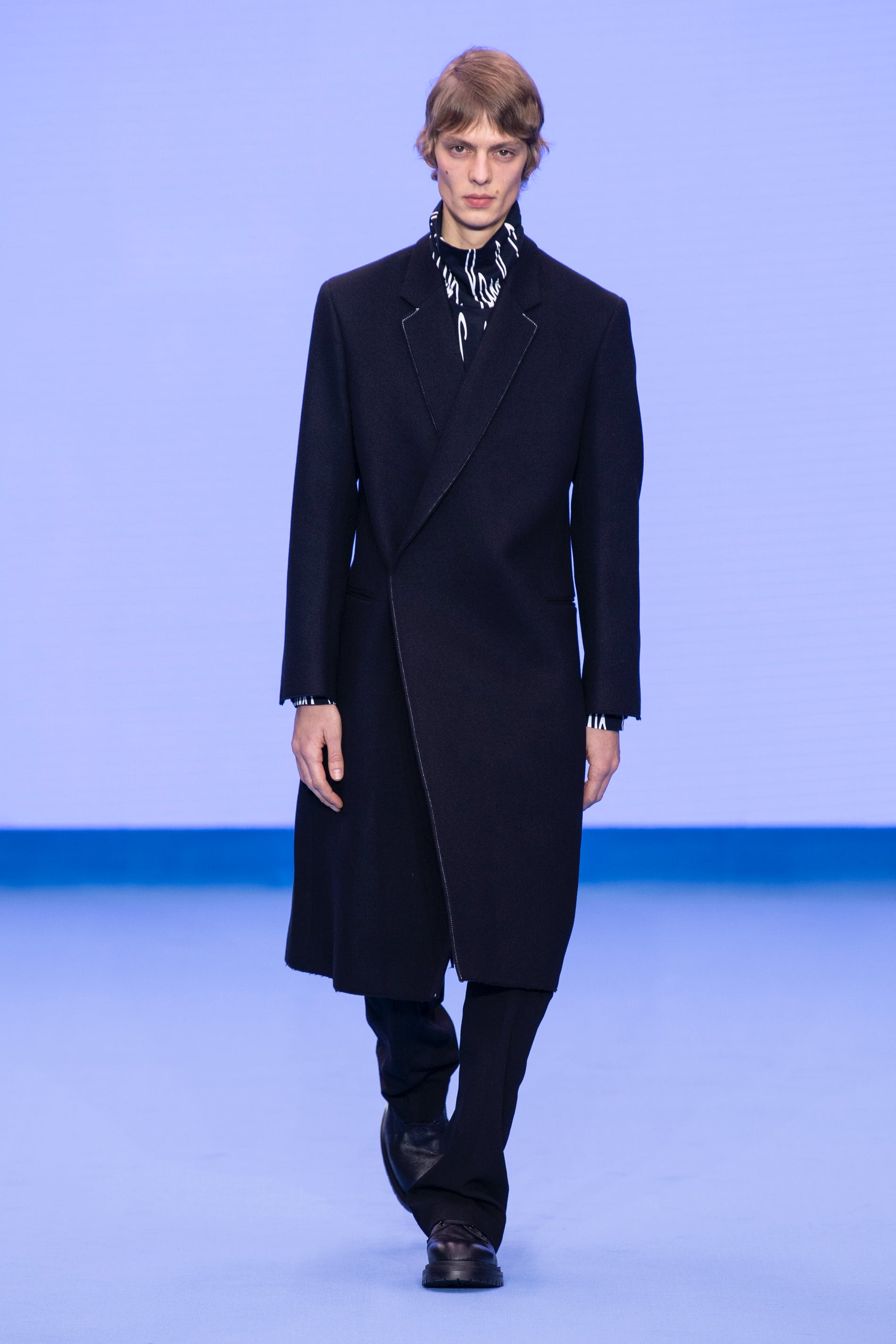 Having established a reputation for reinventing classics across his half century as a designer, Paul Smith refreshes wardrobe archetypes for Autumn/Winter ’20, his fiftieth anniversary collection. Prints and shapes from Paul’s own past are revisited, reinterpreted and celebrated once more. Classic double-breasted Melton overcoats are finished with contrast top-stitching and raw edges whilst clean, lean tailoring nods to the Seventies with added length and high-breaks but has a modern, minimal feel with fly fronts.
