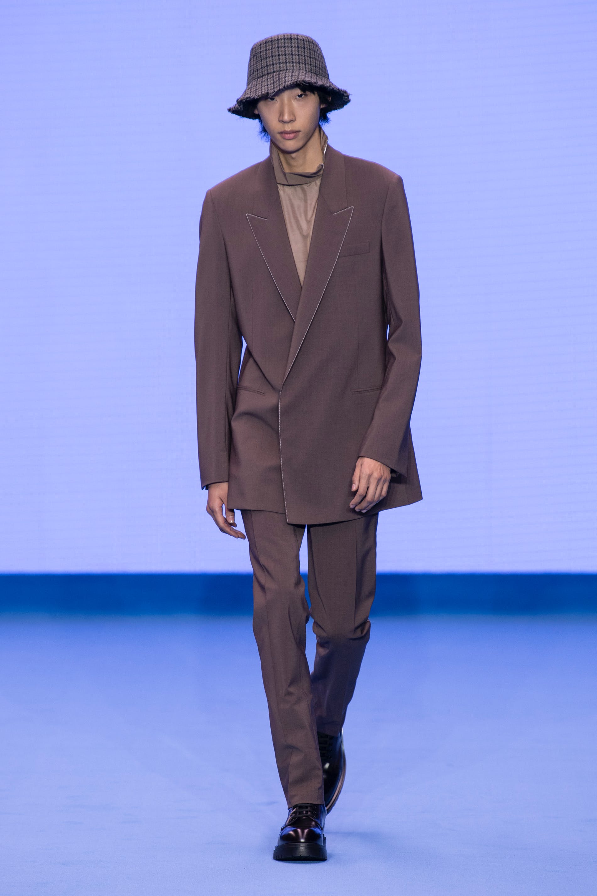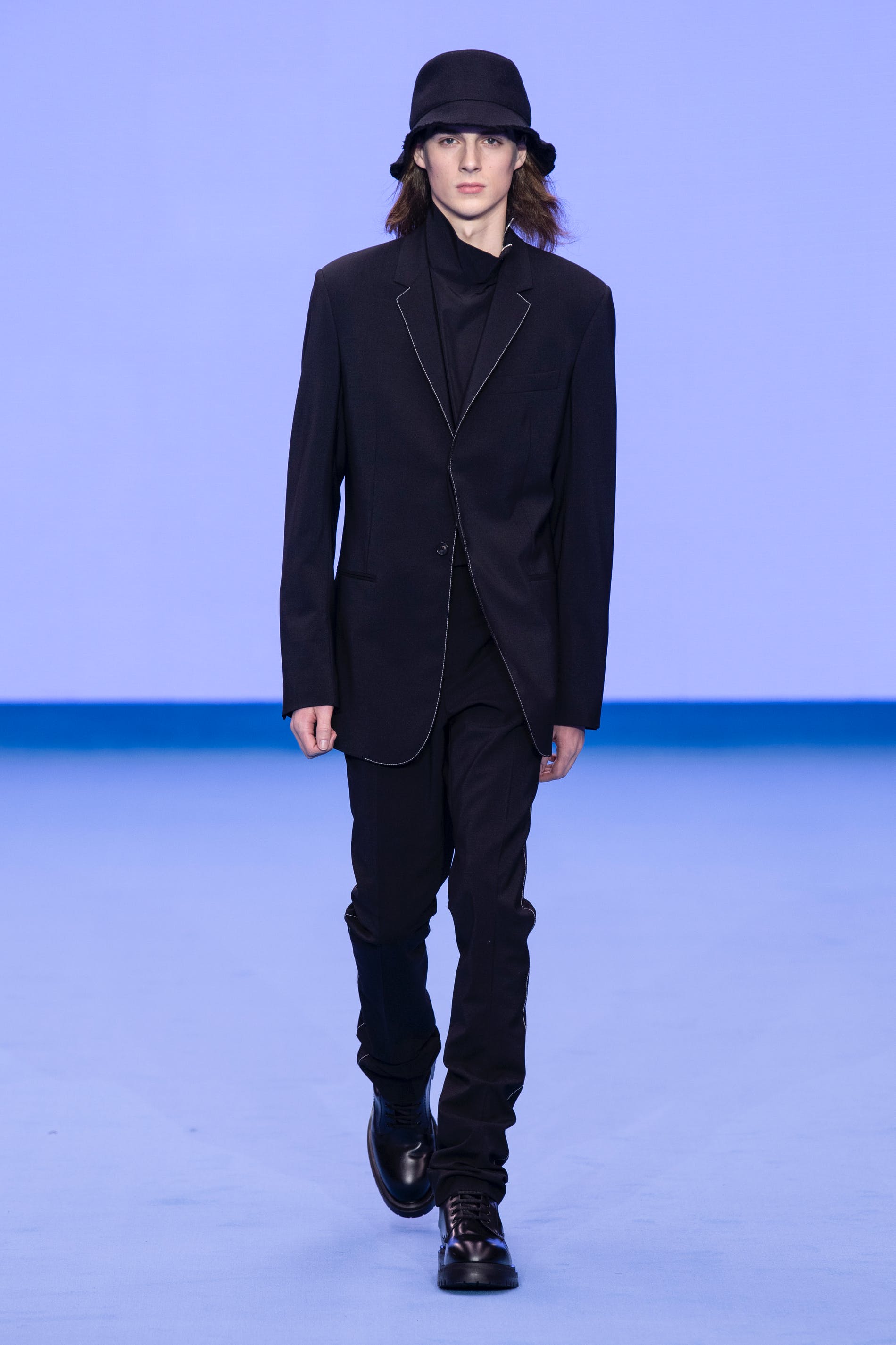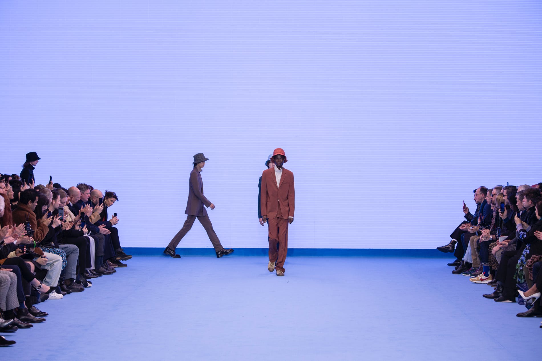 Having established a reputation for reinventing classics across his half century as a designer, Paul Smith refreshes wardrobe archetypes for Autumn/Winter ’20, his fiftieth anniversary collection. Prints and shapes from Paul’s own past are revisited, reinterpreted and celebrated once more. Classic double-breasted Melton overcoats are finished with contrast top-stitching and raw edges whilst clean, lean tailoring nods to the Seventies with added length and high-breaks but has a modern, minimal feel with fly fronts.