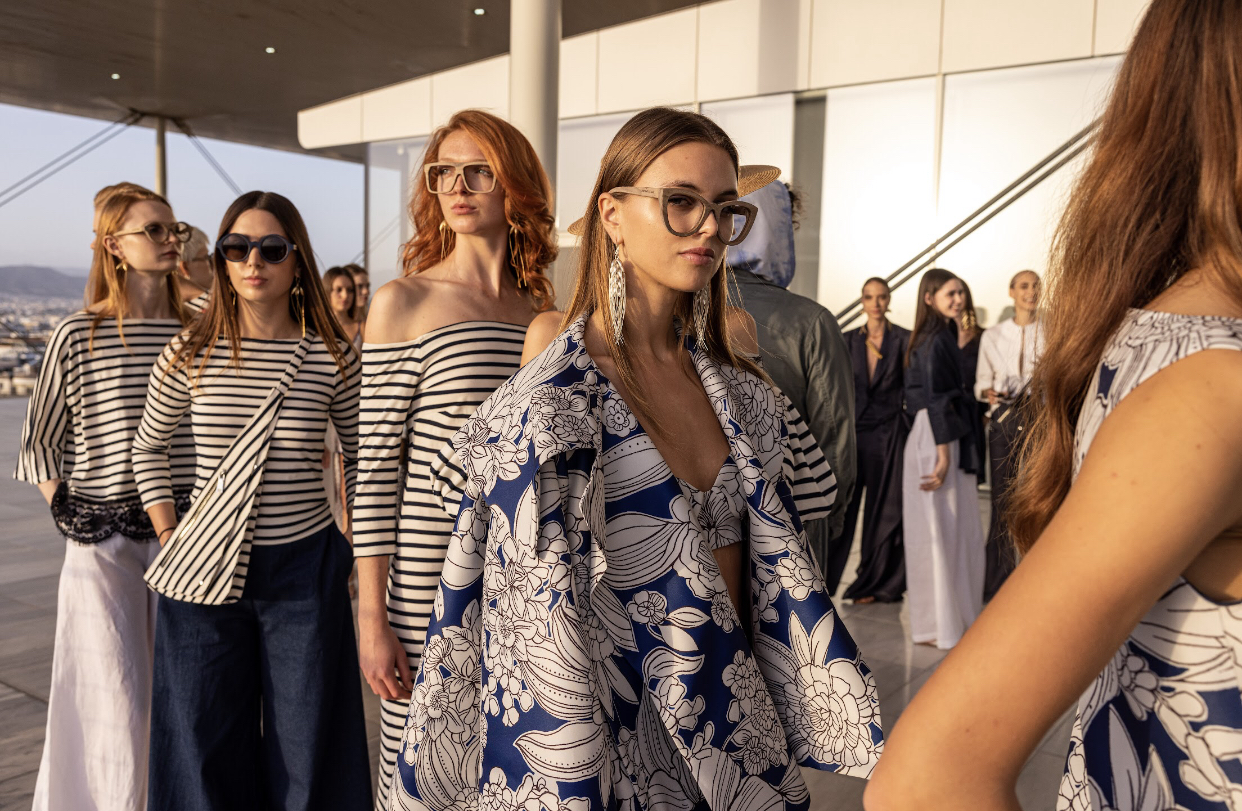The unique handcrafted creations of Pavone Rossa completed the looks in the fashion show that introduced the new collection of renowned fashion designer Vasilis Zoulias which took place at the Stavros Niarchos Foundation.