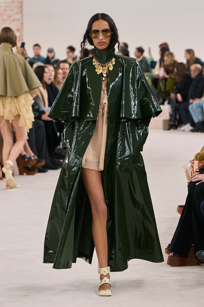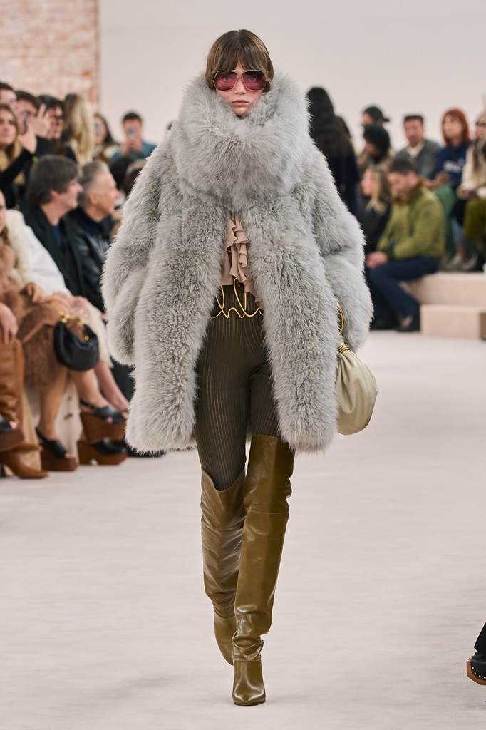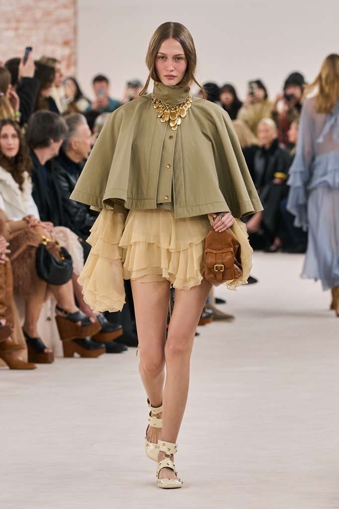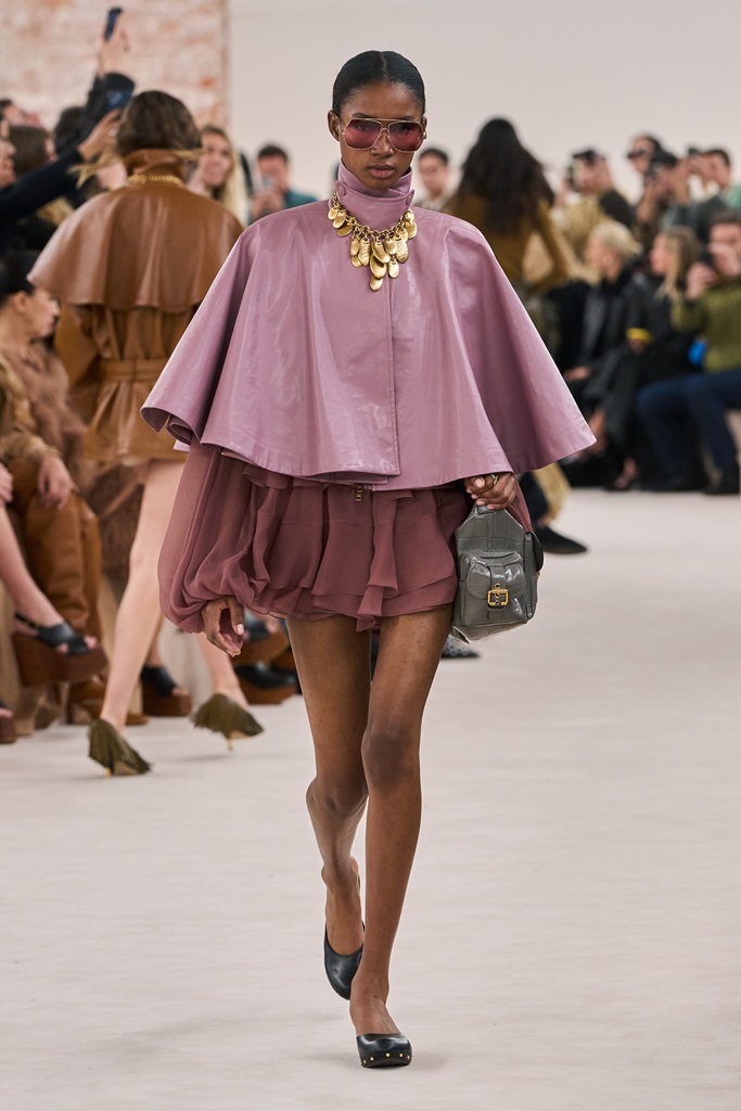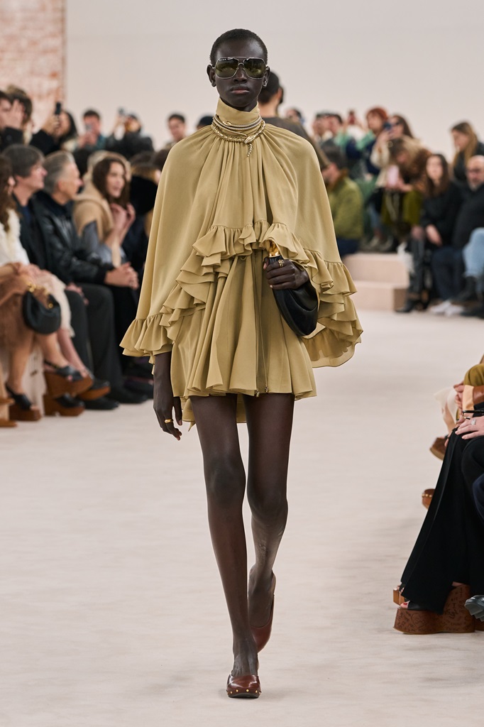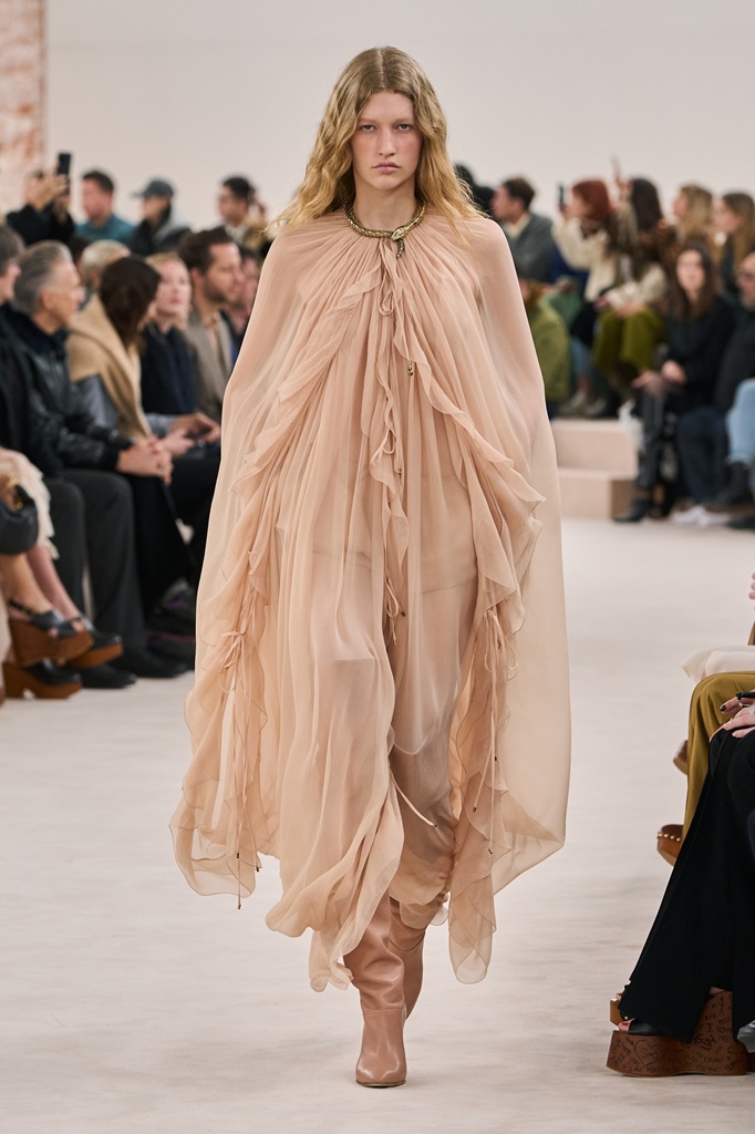 I want to return to the original roots of the house and build a sensual Chloé that radiates with warmth and positivity. This collection goes back to the late 1970’s era of the house that I feel so connected to. A time that was about a natural femininity. Sensual, effortlessly powerful and free. The fluidity, motion, and movement of the Chloé silhouette is all about this freedom. I want to play with contrasting proportions in the silhouette, in an intuitive way. To embrace and capture the Chloé woman’s essence, and all the contradictions she embodies. This is what defines the Chloé attitude.