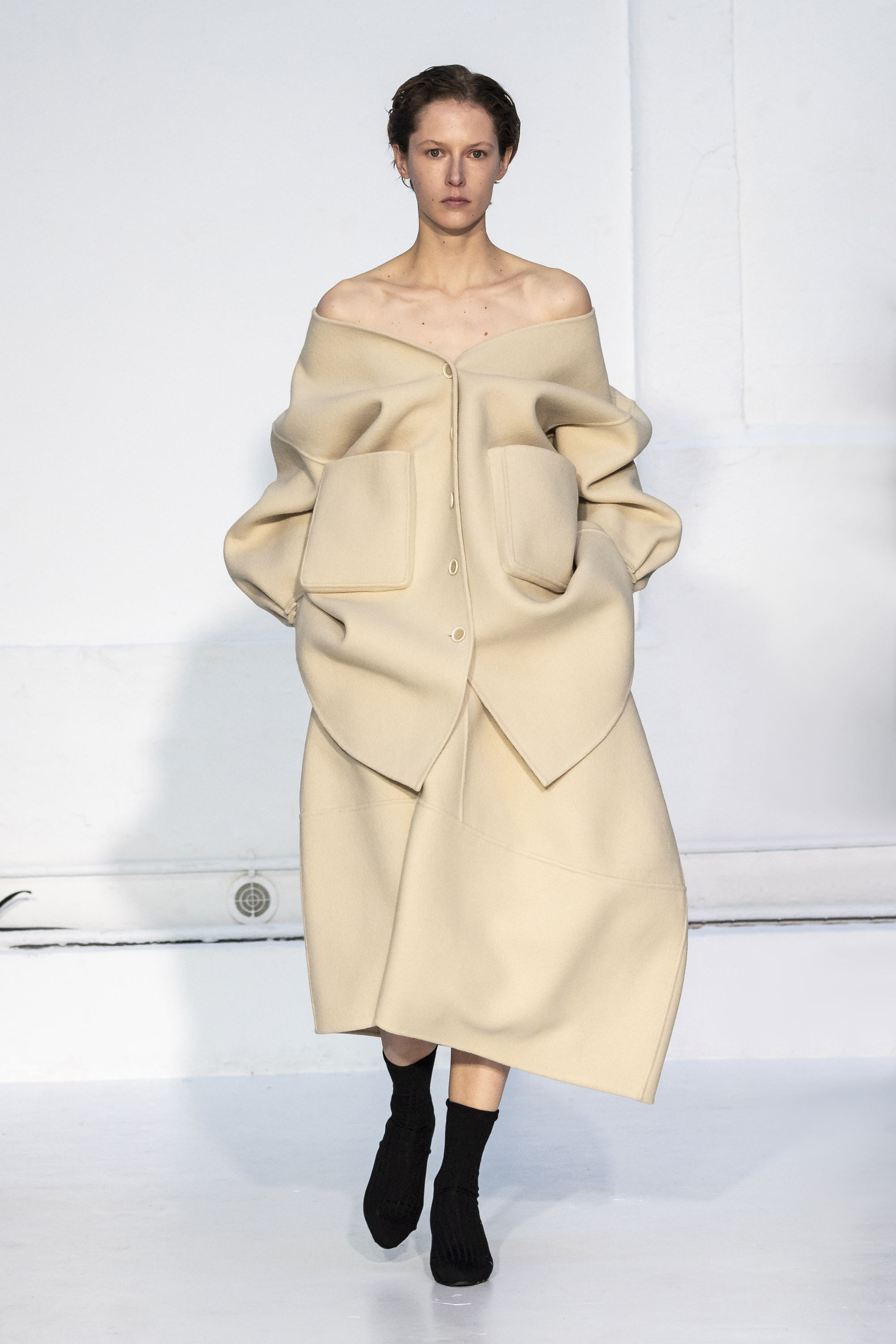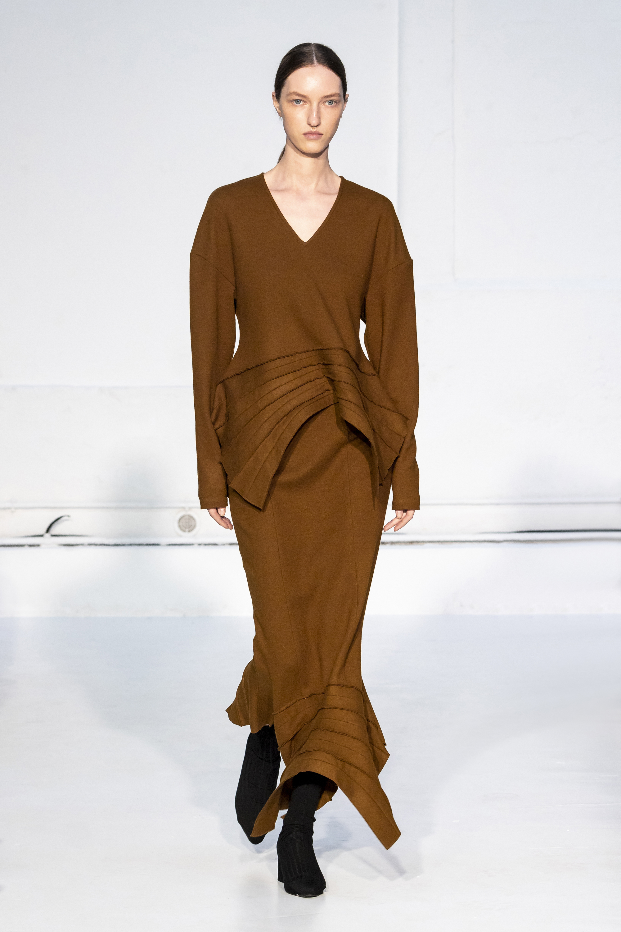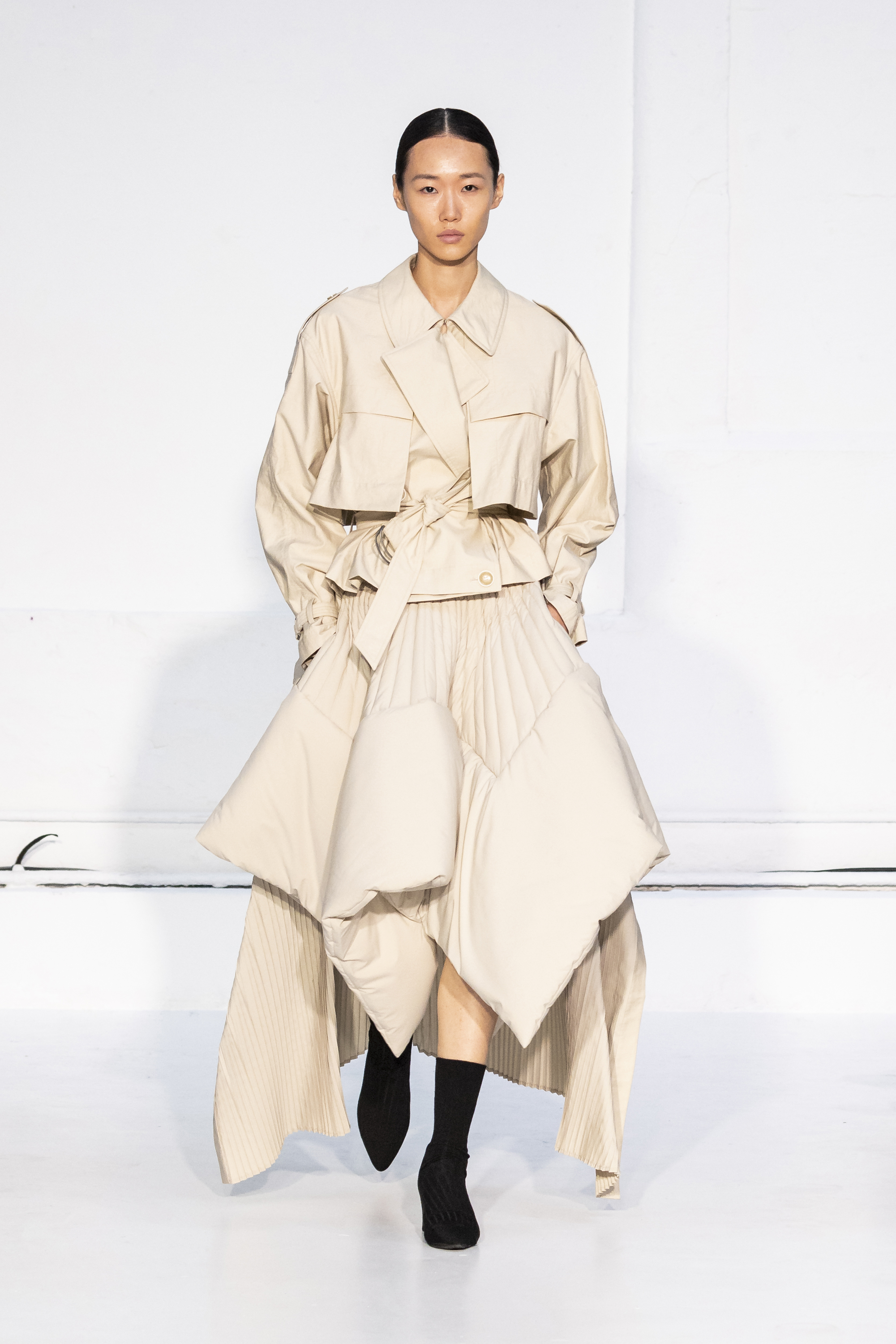 The practicality and relaxation of DAWEI are also strongly shown in the collection: adding asymmetric effect to a voluminous skirt has dissipated its solemnity and highlighted the urban sense; patching soft knitted sleeves to a top made of stiff fabric has increased its comfort; incorporating sporty materials and elements such as space cotton and elastic band in a majestic tailor has had it look more effortless; making a single piece which has various wears and matches, has created feelings to wearer of freely traveling through diverse scenarios, as unexpected surprises injected into the ordinary life.
