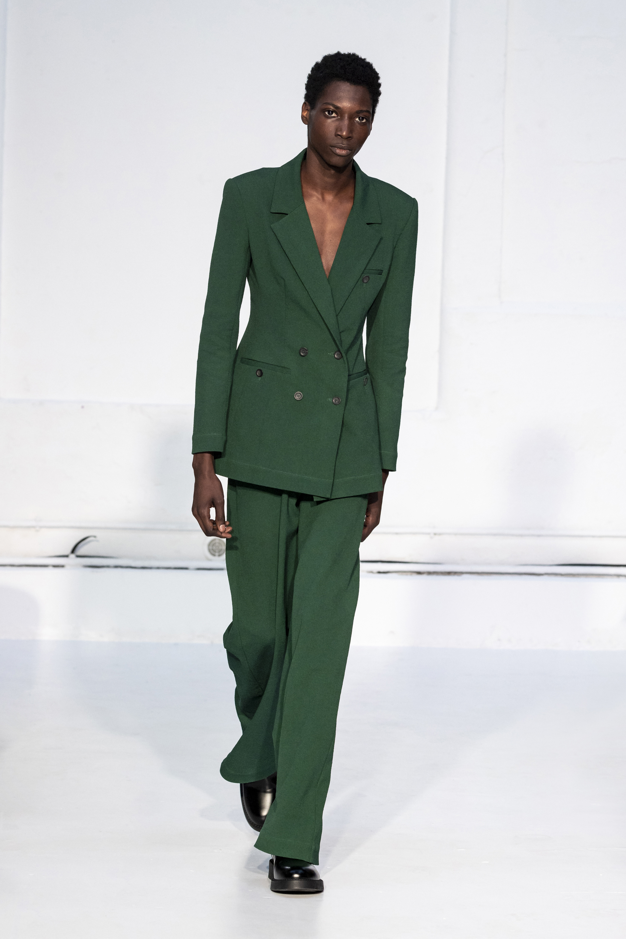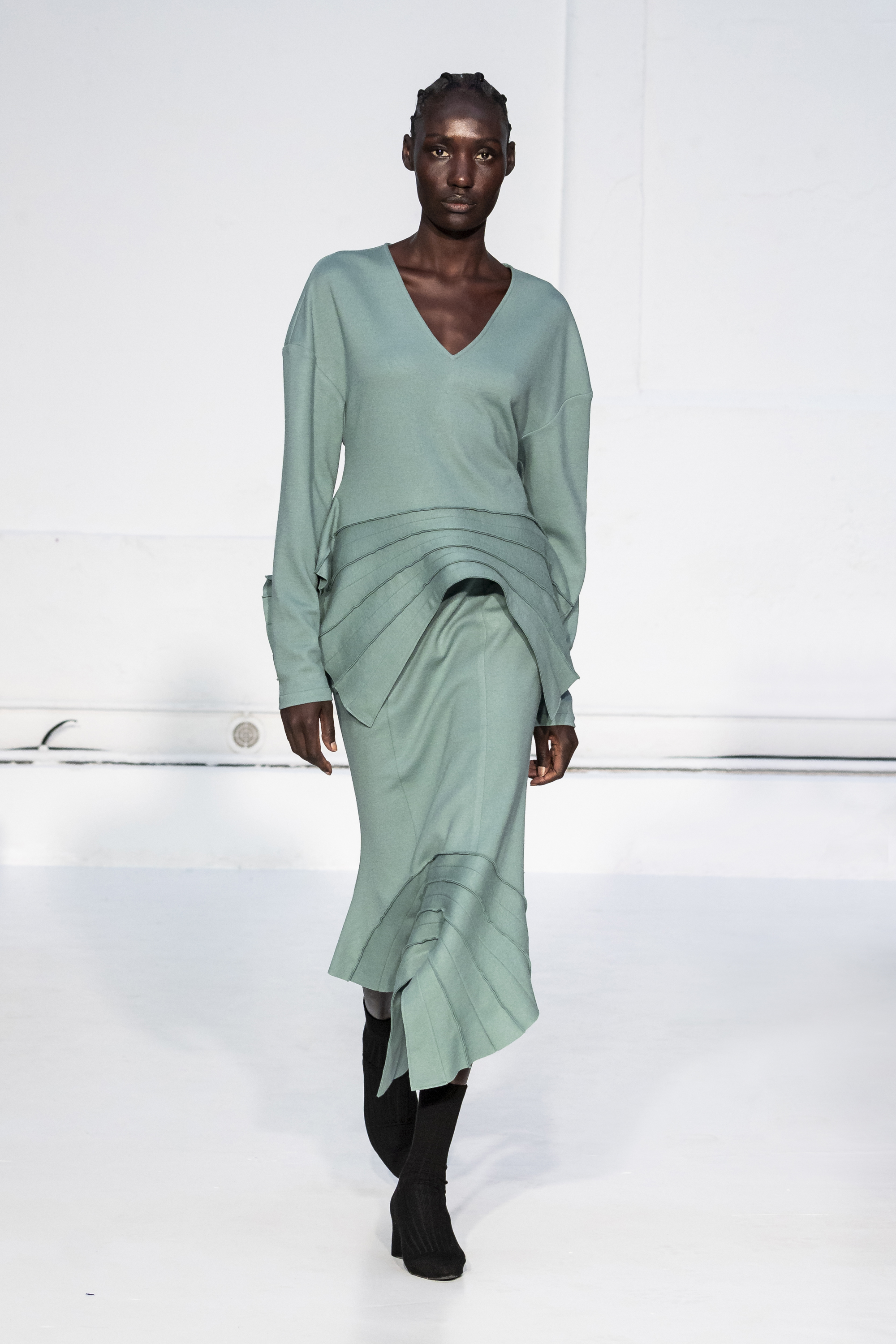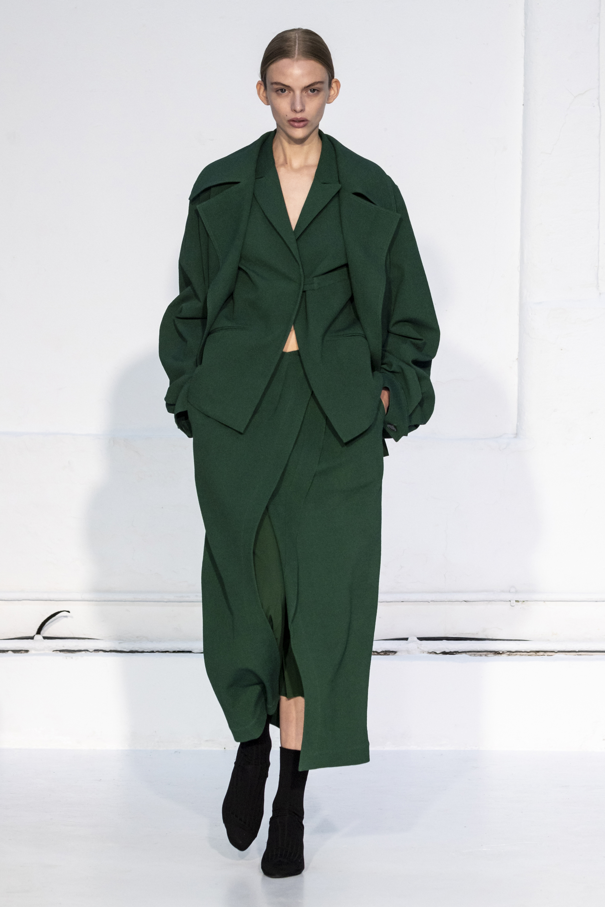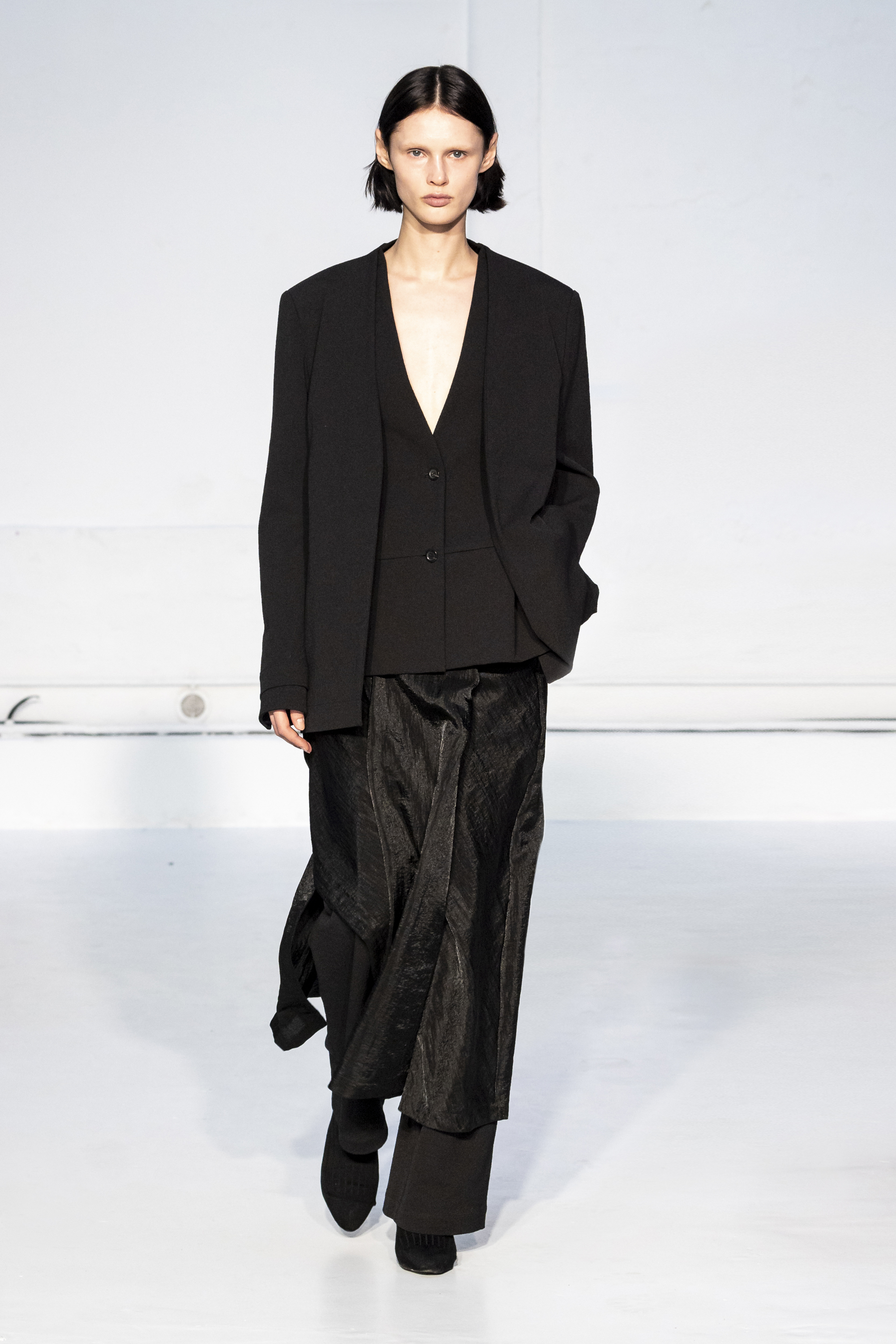 The practicality and relaxation of DAWEI are also strongly shown in the collection: adding asymmetric effect to a voluminous skirt has dissipated its solemnity and highlighted the urban sense; patching soft knitted sleeves to a top made of stiff fabric has increased its comfort; incorporating sporty materials and elements such as space cotton and elastic band in a majestic tailor has had it look more effortless; making a single piece which has various wears and matches, has created feelings to wearer of freely traveling through diverse scenarios, as unexpected surprises injected into the ordinary life.