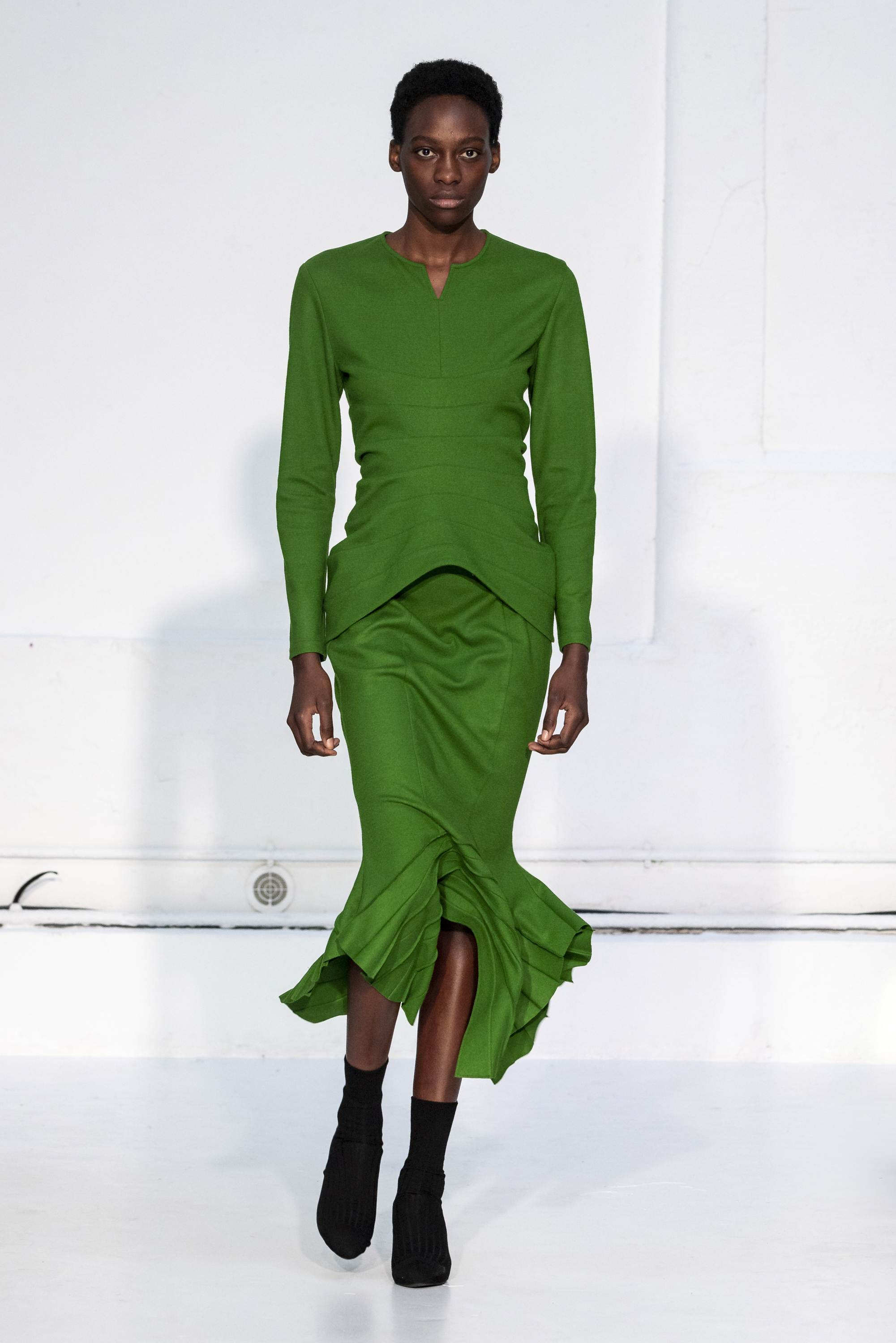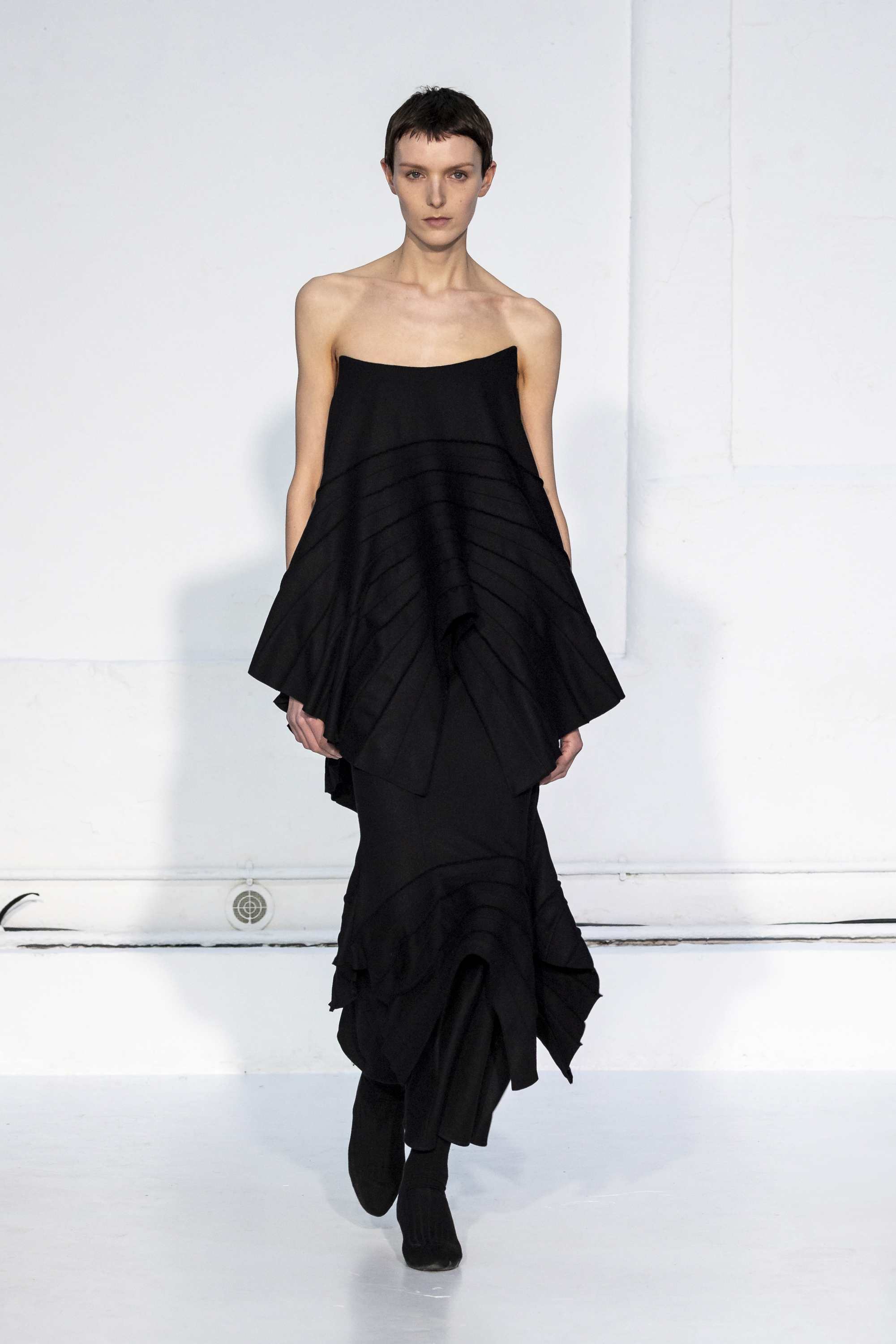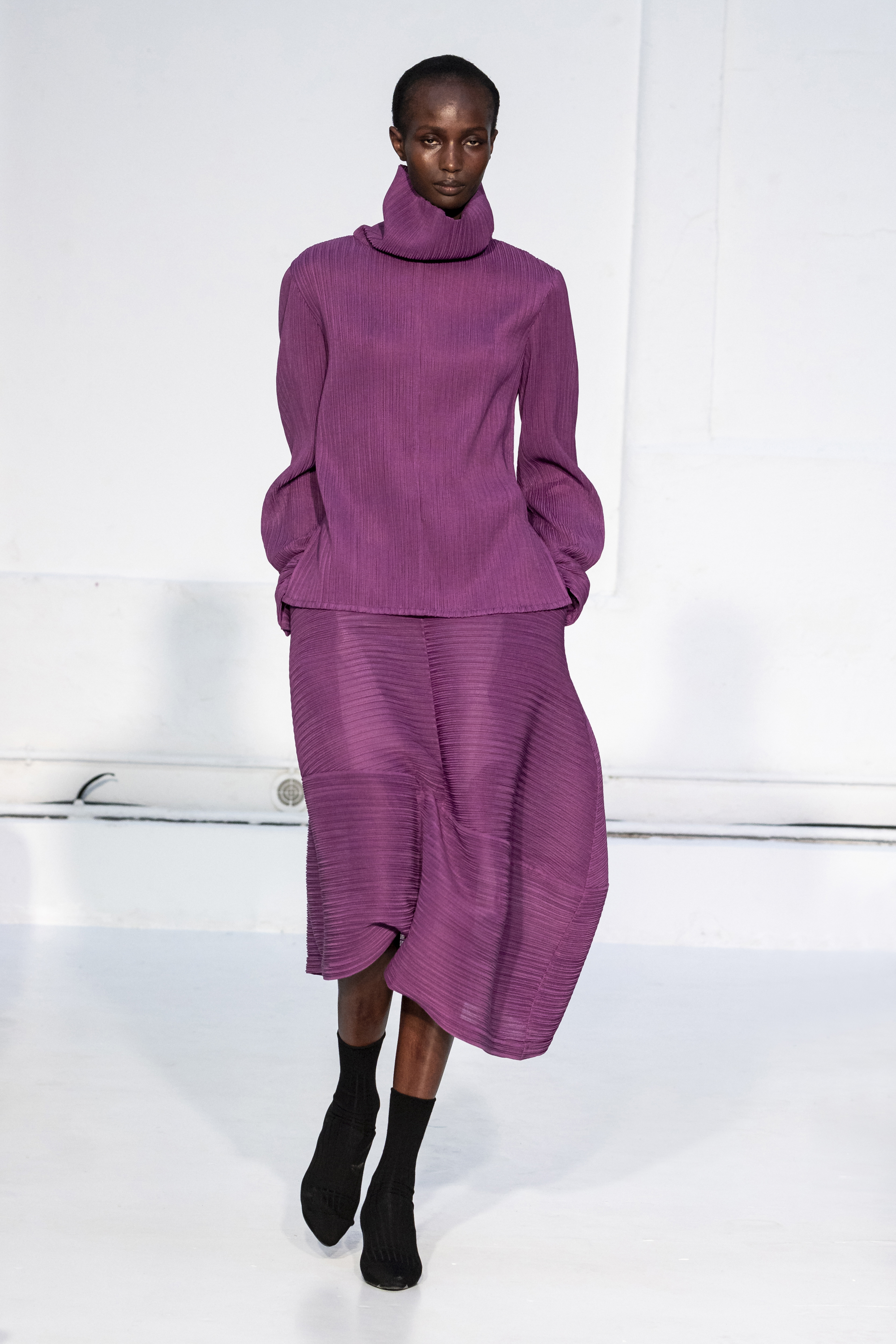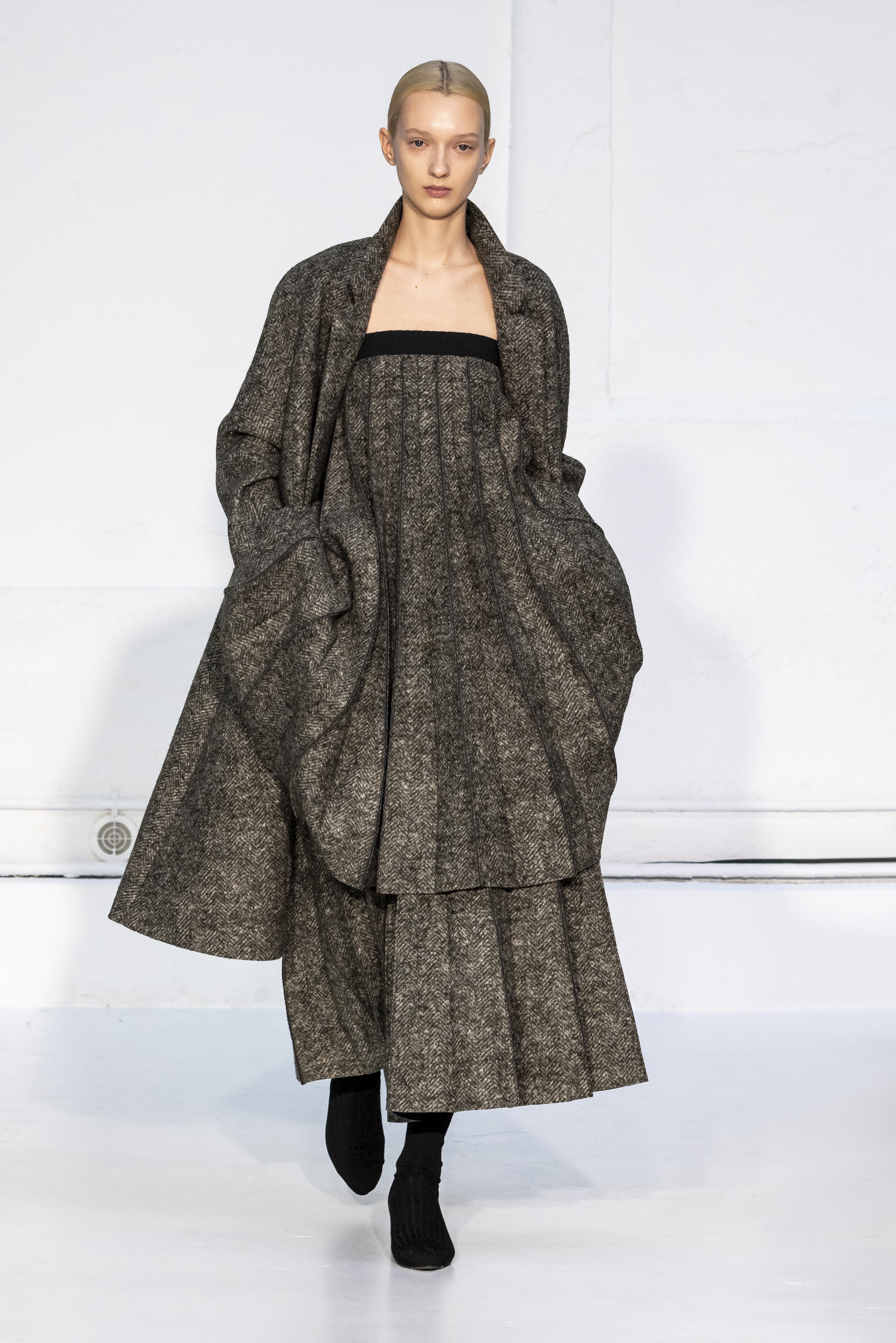 The corset silhouetted with sharp lines, the accordion-like skirt that can be fluidly stretched, the dramatically designed hemline of the coat, the purposely placed tab and the fluffy gigot sleeves......these are all marks found by DAWEI from the past within the palace. Meanwhile, the hand-sewn sunray pleats has added a stately dimension to the collection. Like winding rivers, the pleats horizontally or vertically spread over the pieces. Following the undulation of the body, the curves of elegance are depicting spontaneously.