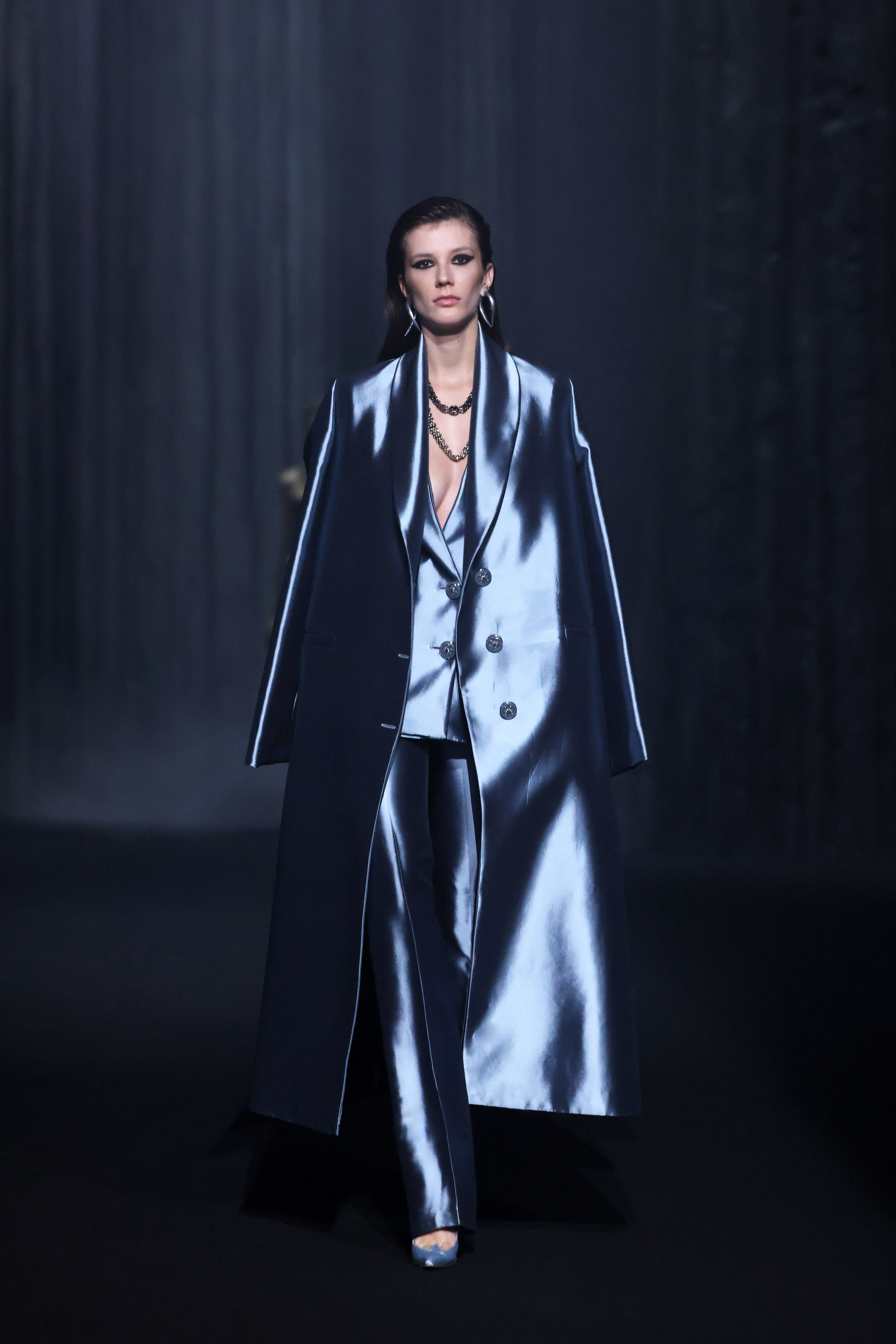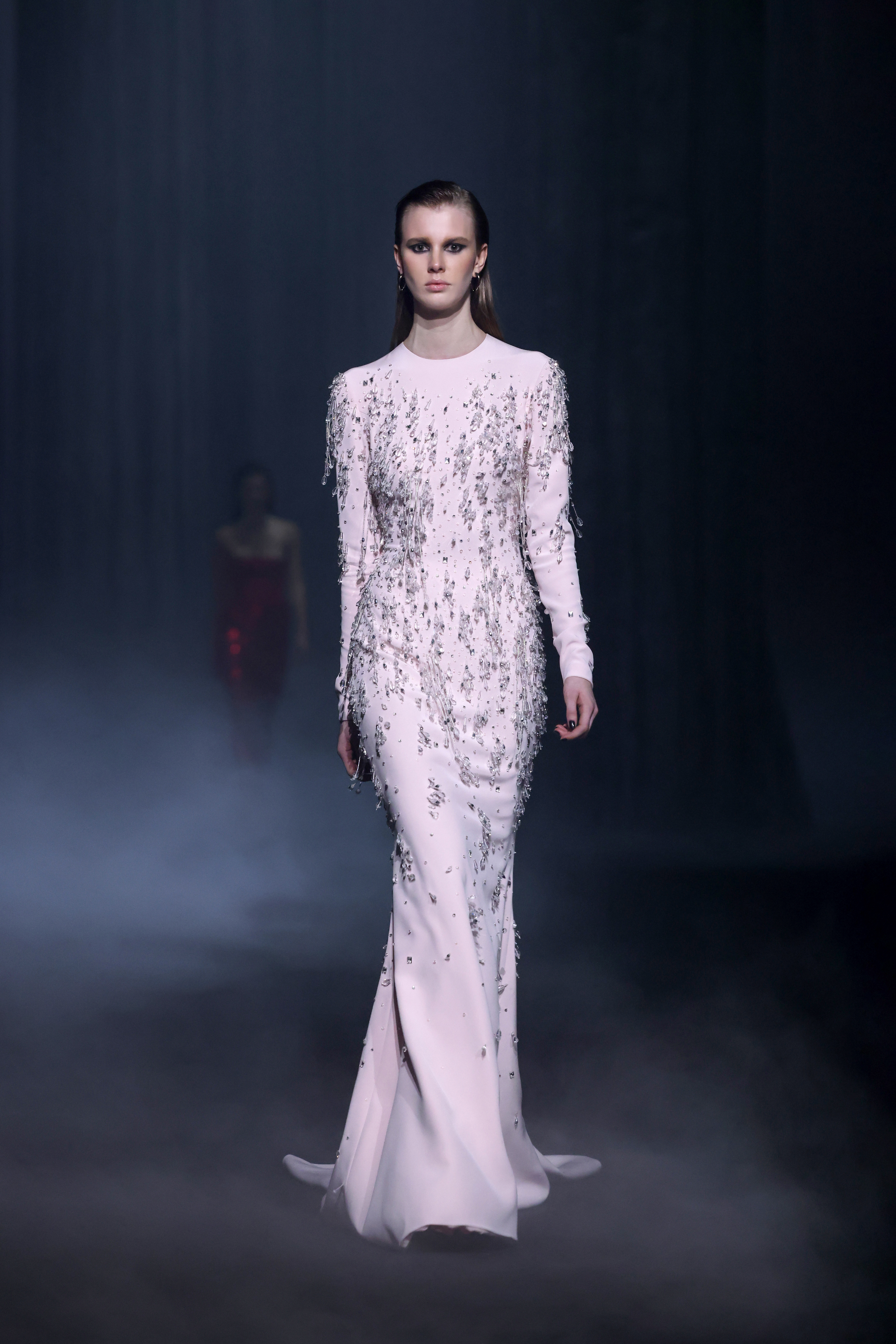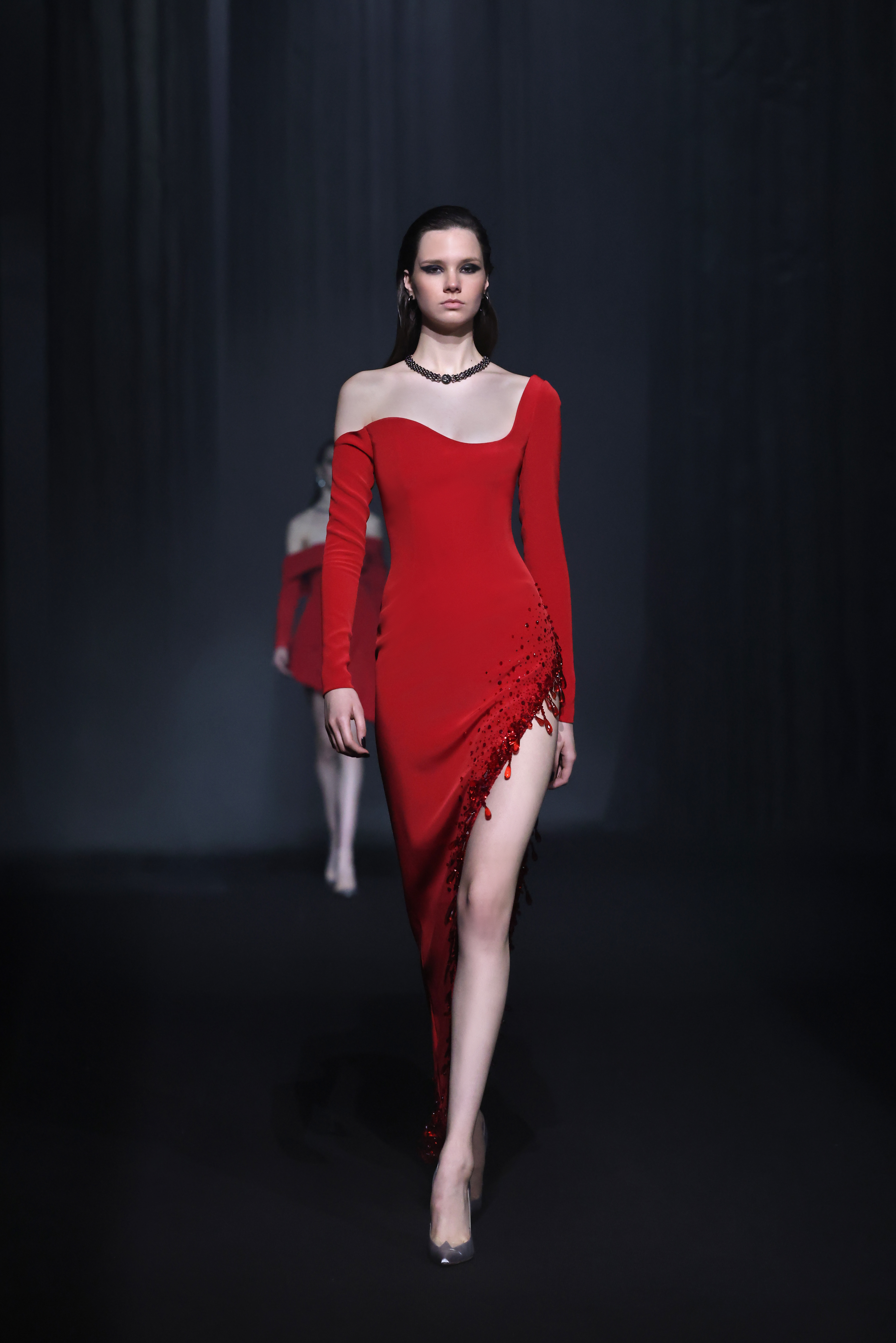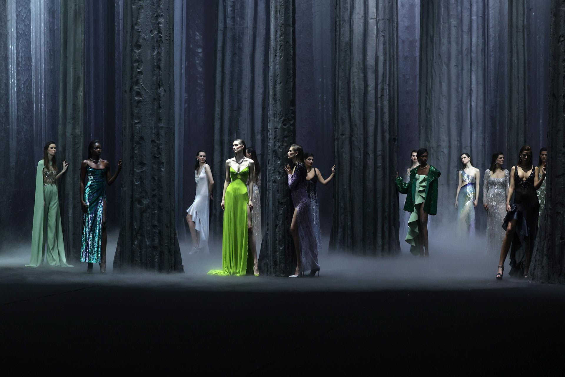Inspired by a concept that is as visually arresting as it is socially relevant, the Maison Georges Hobeika Ready-to-Wear collection for Fall 2023 celebrates the division between night and day, and more particularly the dramatic creatures of the dusk. While the creative inspiration comes from the world of vampires, as seen in the cult series True Blood, the idea of a dichotomy between the accepted and the unaccepted, a fear of the unknown and a contrasting desire to belong are all part of this richly dramatic creative moment. The presentation film chooses as its backdrop a dark forest wrapped in haze, playing with our sense of fear and our need for sanctuary. Beneath the drama and beauty of the collection lie a powerful comment on the importance of mental health and of those – hospital workers, security staff – who are active during night hours to ensure that we are safe while we sleep.