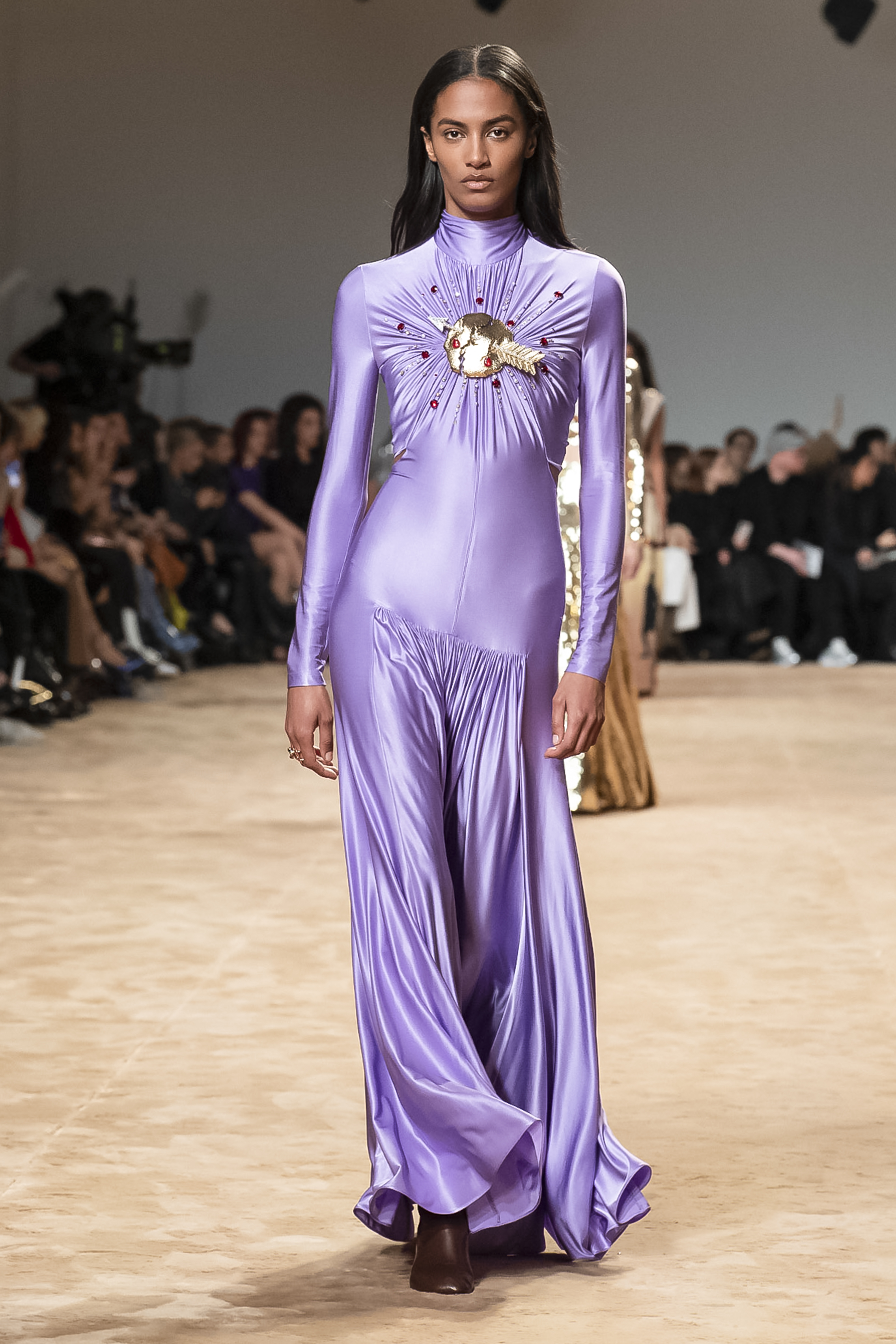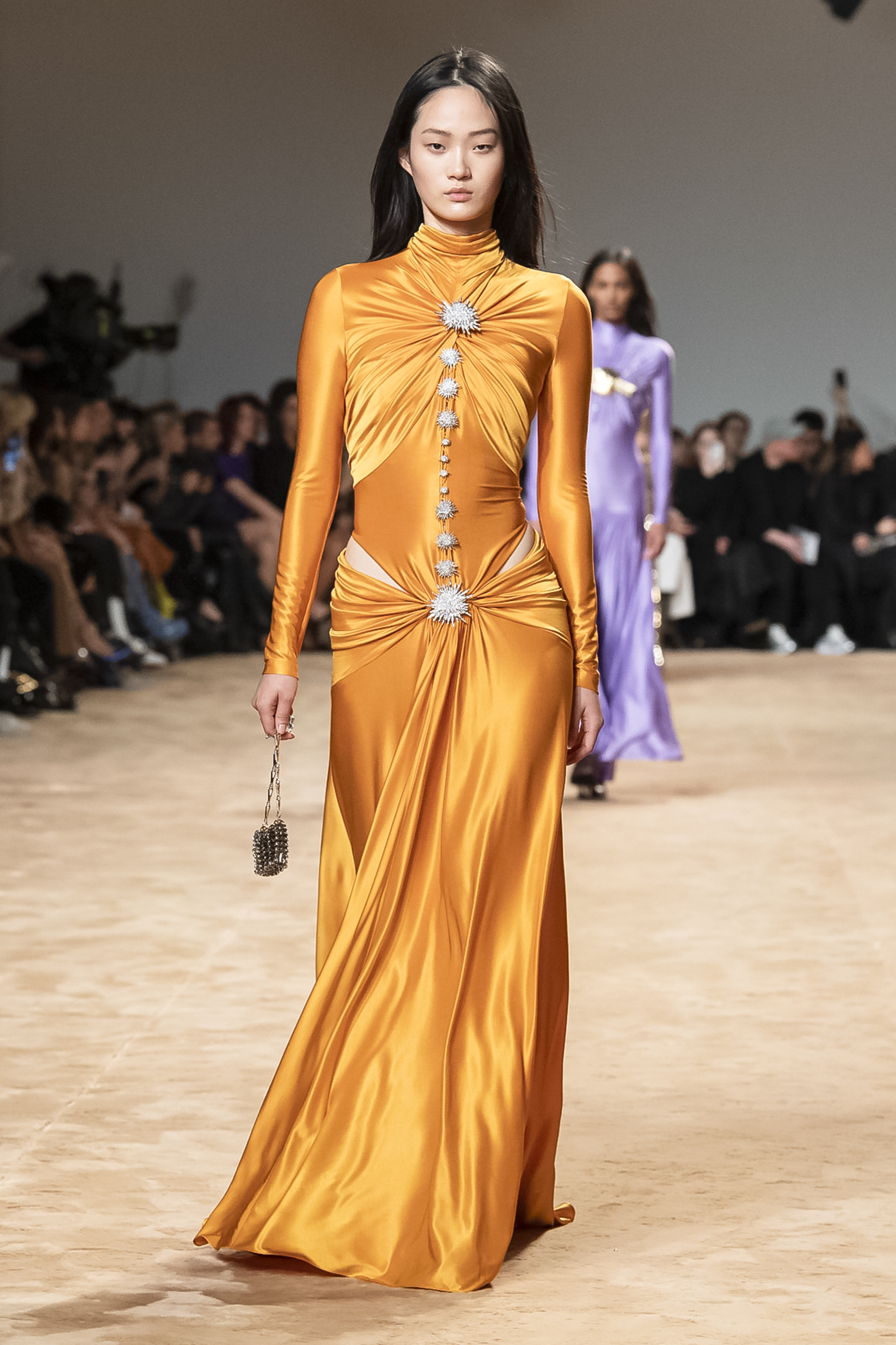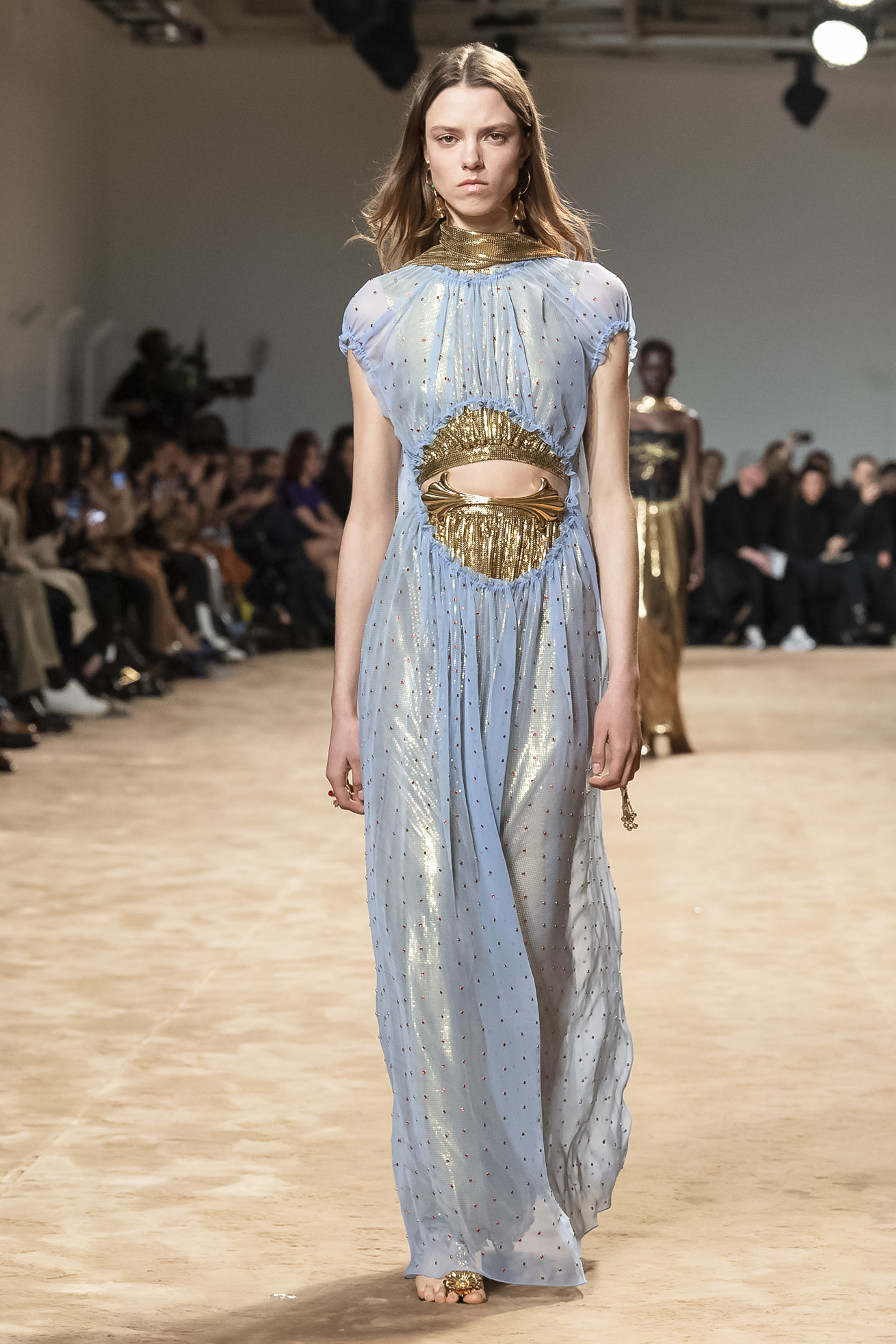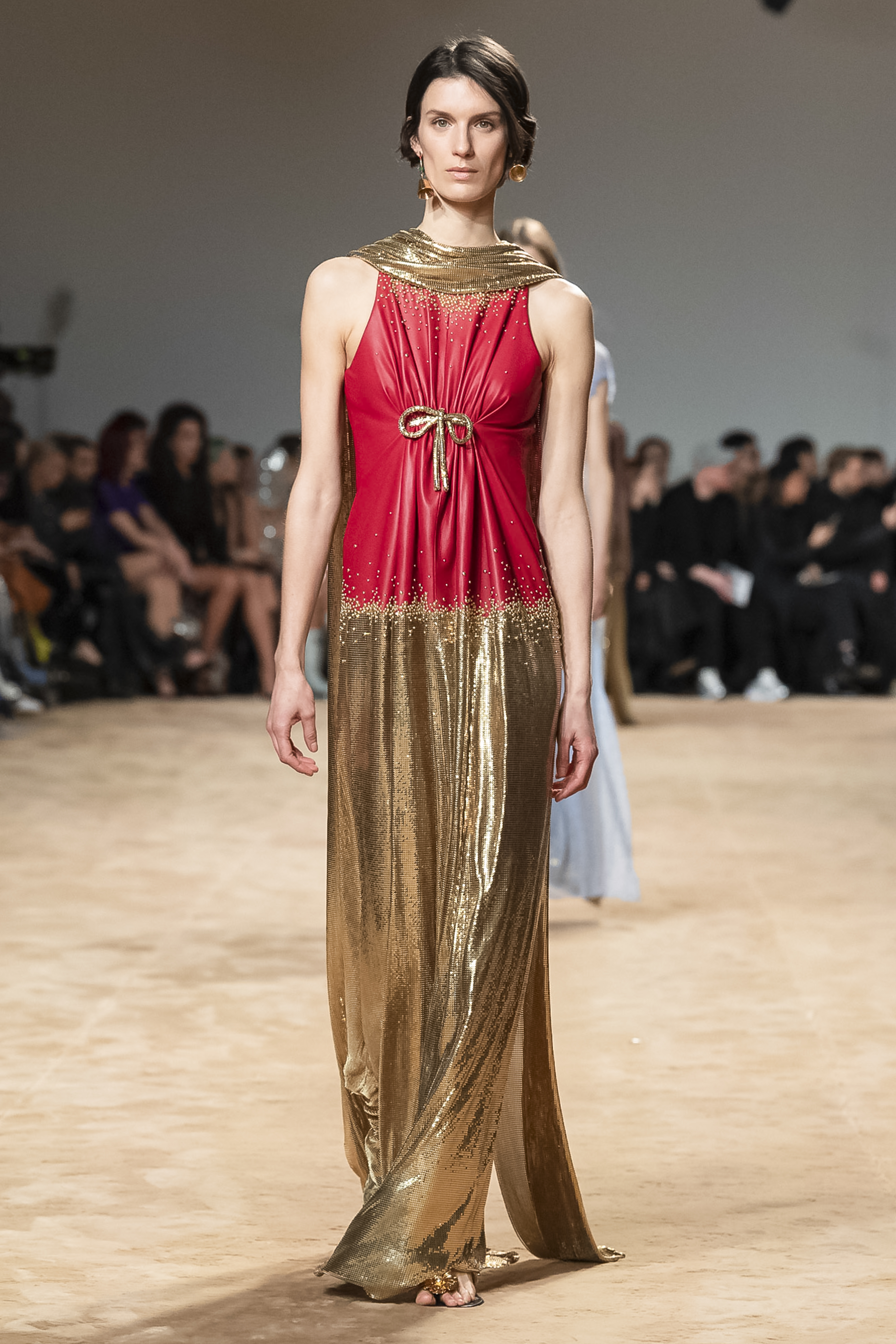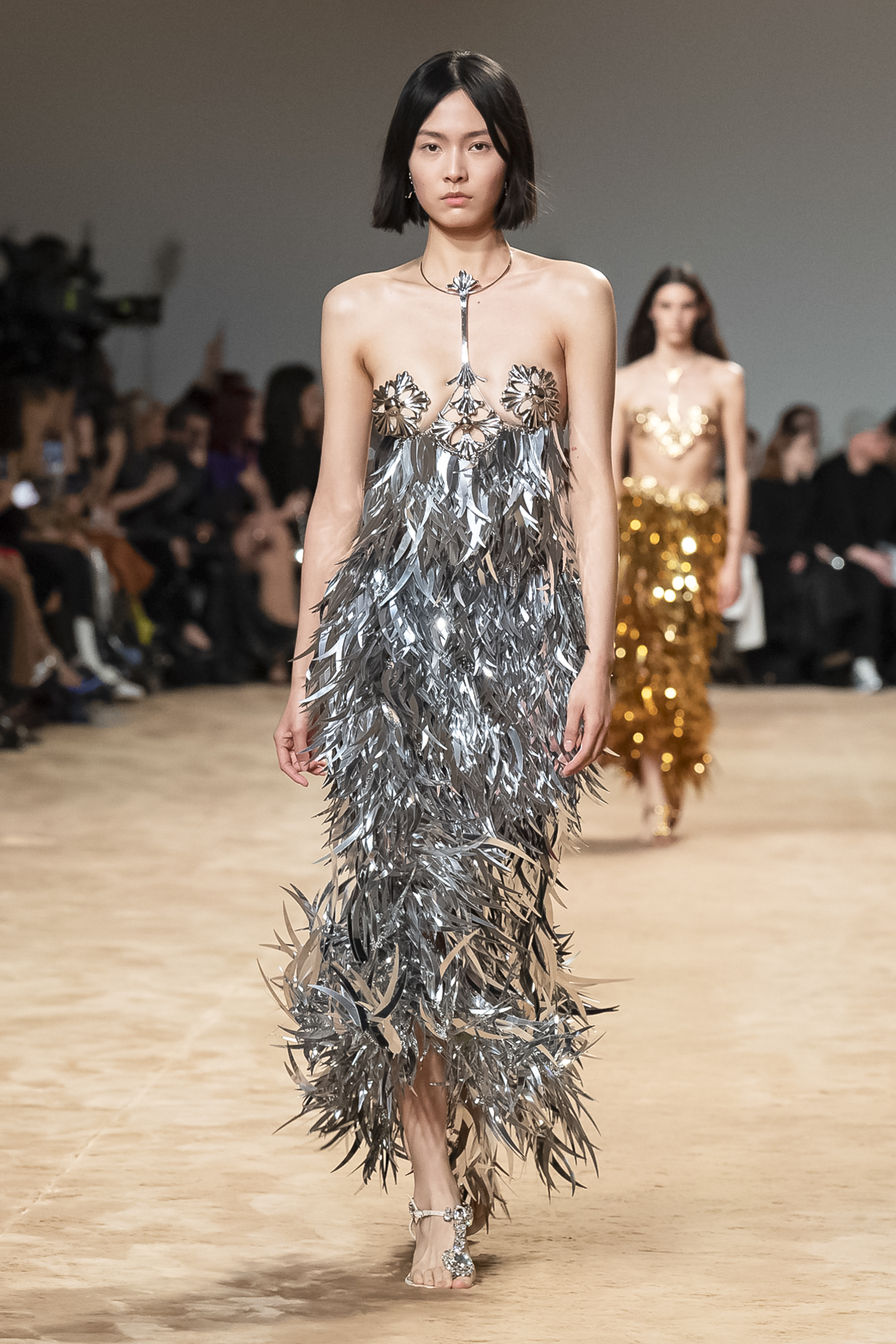 Unexpected materials, the perpetual pursuit of Paco Rabanne, emerge with new intrigue. Sensations are translated through the symbolic pillars of design: colour, form, volume, movement.