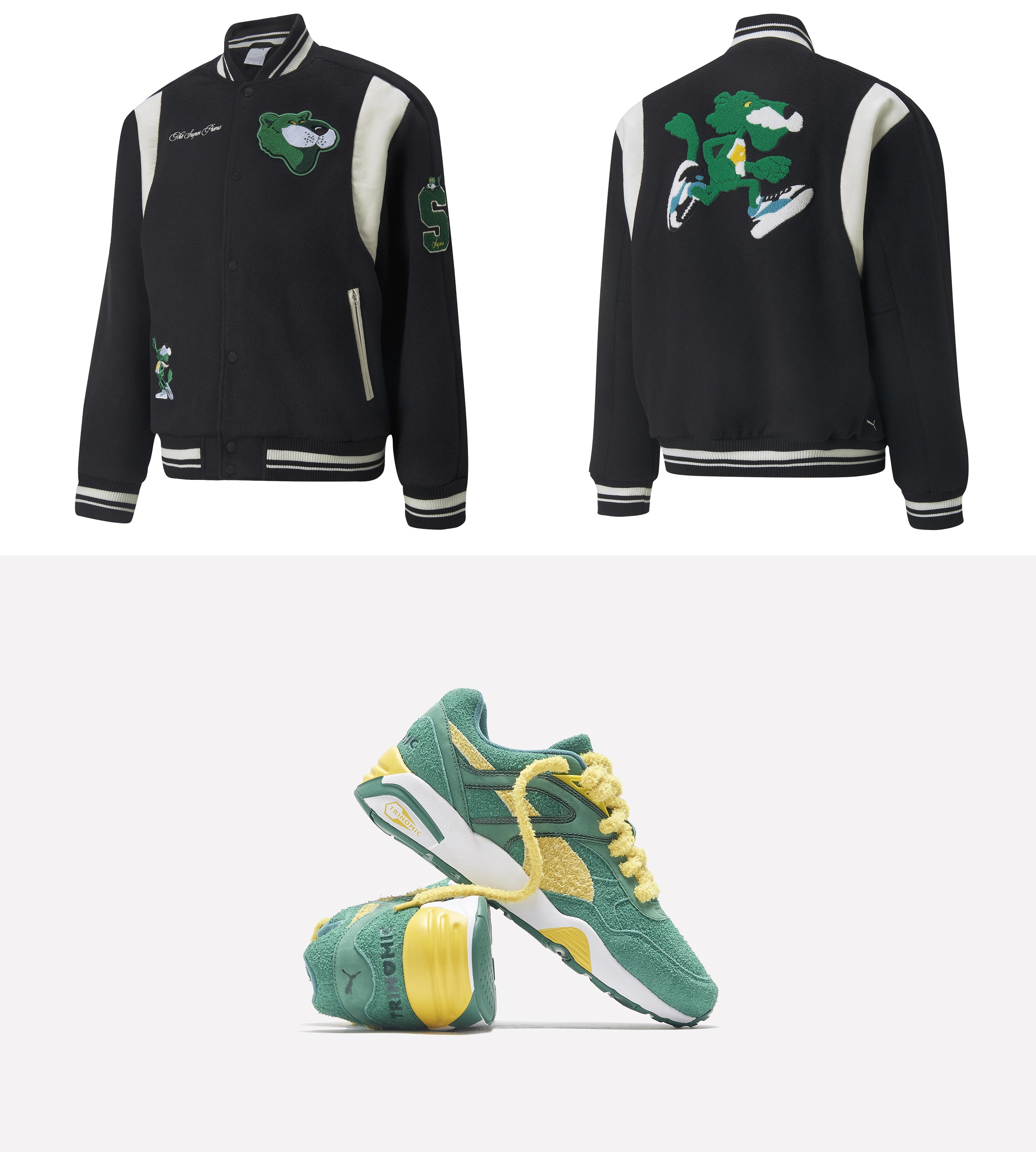 Super PUMA is the hero of a limited comic book series created by PUMA in the 1970s, that chronicled the adventures of a fearless green cat. Now, the feline protagonist is the inspiration behind the capsule, which includes a plush toy created in collaboration with German toy company Steiff.