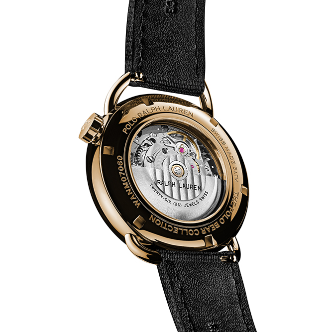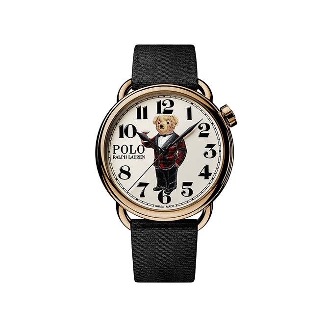 The festive Martini Tartan Polo Bear showcases a dapper bear wearing an impeccable tartan tuxedo, complete with embroidered velvet slippers holding a martini glass. Available in a stainless-steel case or in a limited edition run of 18K rose gold, the bear is printed in 3D on the dial and visually stands out against a white lacquered background, black Arabic numbers and shiny black hands. Crafted in Swiss watchmaking tradition, the 42-mm timepiece is powered by an RL200 caliber mechanical self-winding Swiss movement that is hand-finished with vertical Côtes de Genève stripes and circular graining, known as perlage.