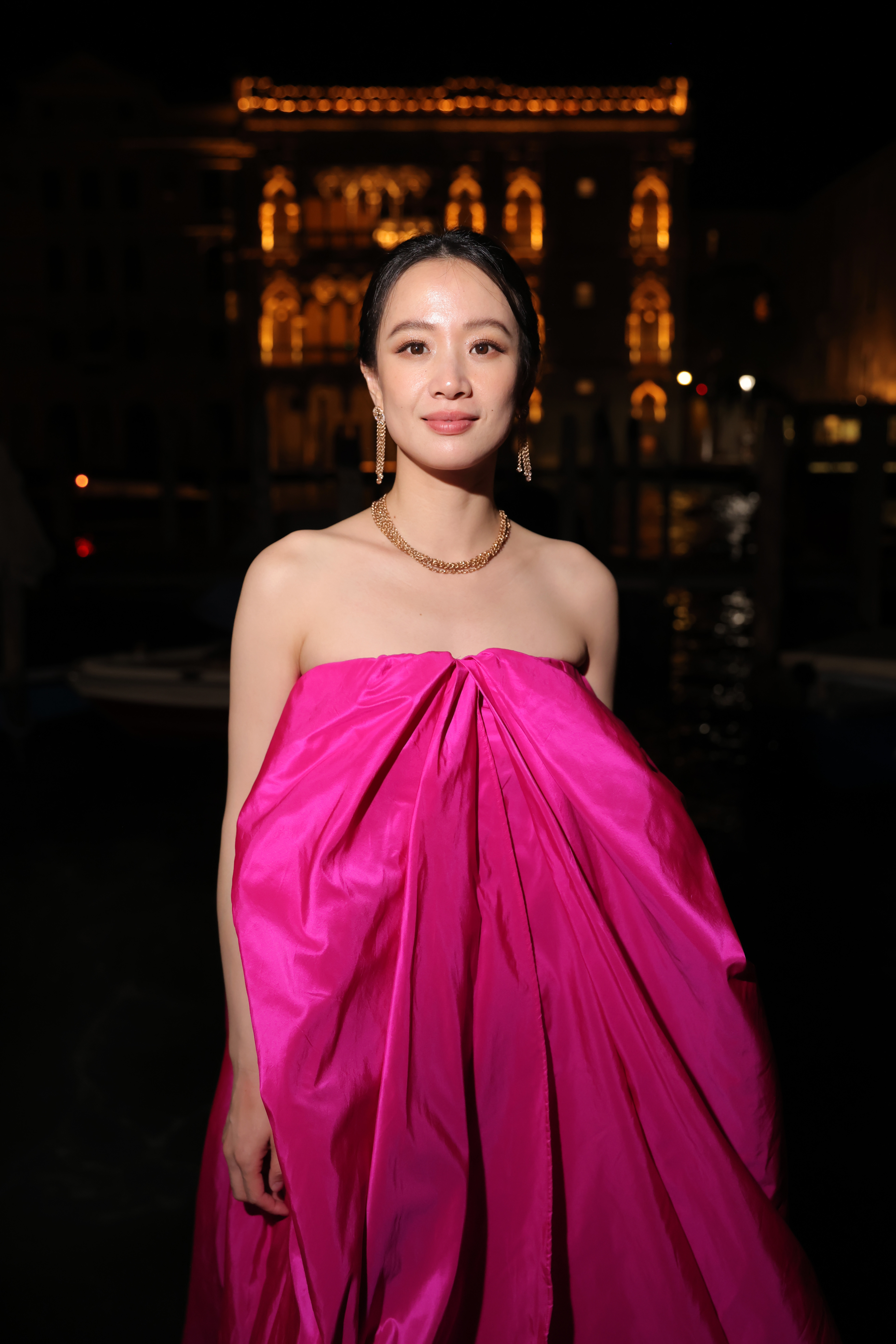 At the Gala Dinner held at the early-Renaissance Palazzo Contarini Polignac, guests enjoyed a special performance by Laura Marzadori, the first violinist of the Milanese Teatro alla Scala. The masterful Venetian Dream necklace was unveiled for the first time on beautiful display with some of the brand’s iconic jewelry collections. Celebrities, press, and KOLs were treated to a gourmet dinner by Michelin-starred chef Massimiliano Alajmo, and then it was time for the reveal of the newly illuminated Cà d’Oro façade – the first of its kind for a palazzo overlooking the Grand Canal.