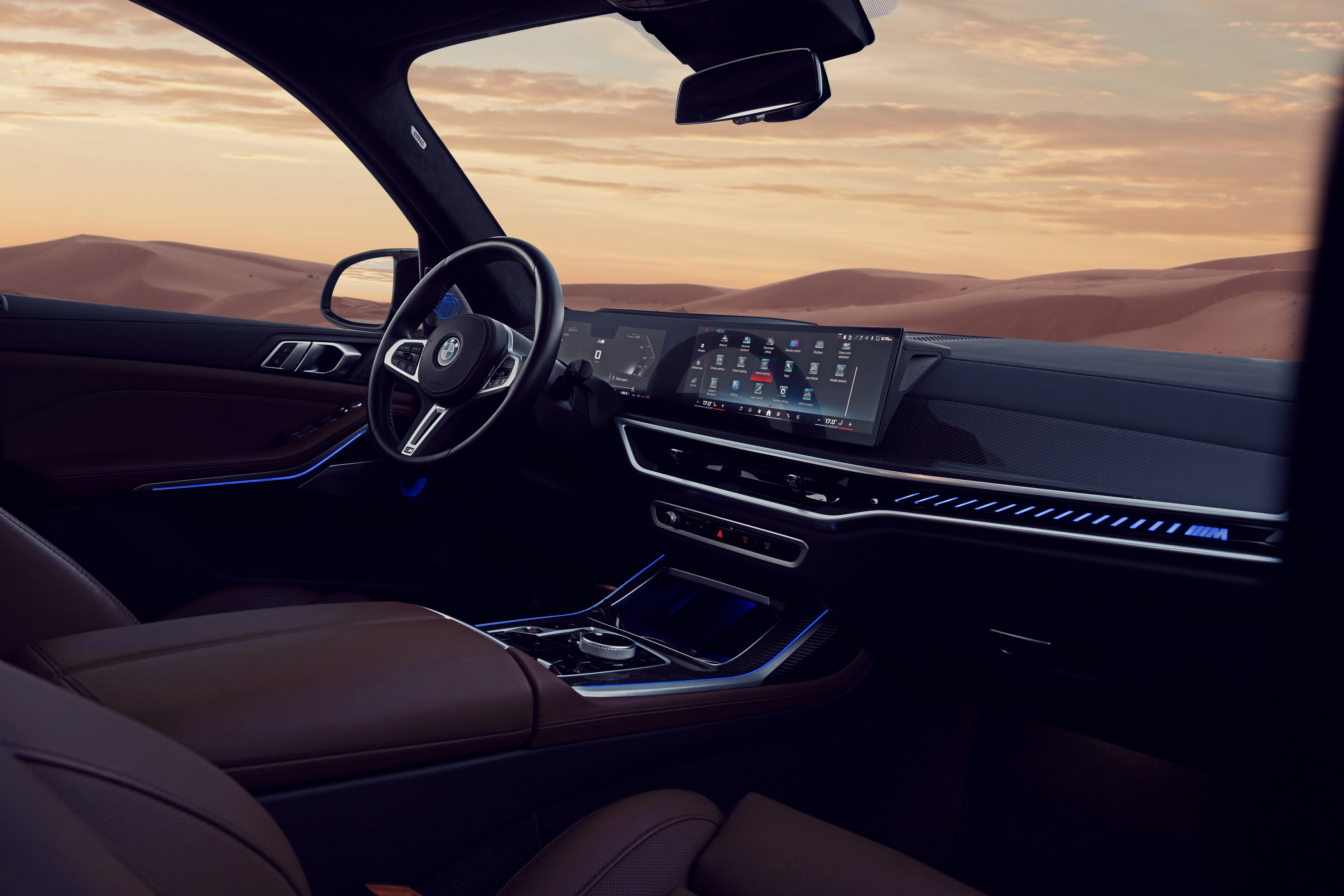 The M Sport design elements, including aggressive front and rear bumpers, high-gloss black accents, and exclusive 22-inch M light-alloy wheels, enhance the vehicle’s dynamic stance. With the available two-tone paint finish, the X7 M60i radiates an elite level of sophistication, making every arrival an event in itself.Step inside, and you are immediately enveloped in an atmosphere of pure indulgence. The BMW X7 M60i’s cabin is an exquisite blend of high-quality materials, advanced technology, and ergonomic brilliance. Every surface, from the Merino leather upholstery to the meticulously crafted wood and aluminum trim, reflects BMW’s commitment to luxury.The Sky Lounge panoramic glass roof, embedded with LED lighting, transforms nighttime drives into a celestial experience, while the customizable ambient lighting sets the perfect mood. The heated and ventilated massaging seats ensure unparalleled comfort, whether navigating city streets or embarking on a grand road trip.Second-row passengers indulge in Executive Lounge seating, where first-class comfort meets thoughtful design, offering power-adjustable options and generous legroom for a truly luxurious ride. For added entertainment, the optional Rear Seat Entertainment Professional system transforms the cabin into a private theater with high-definition screens and immersive premium sound, ensuring every journey is as engaging as the destination. And with a versatile, foldable third row, the BMW X7 M60i ensures that every drive—whether a family adventure or a refined escape—is a seamless blend of luxury and enjoyment.
