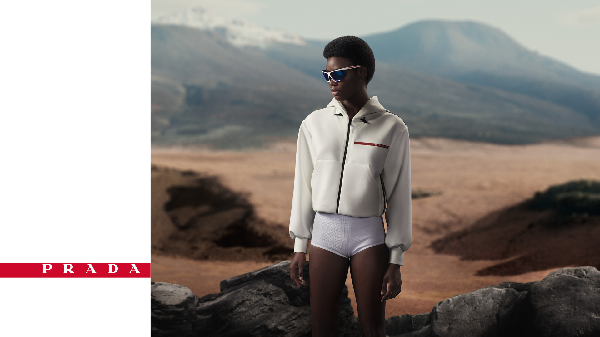 Clothing echoes these interlocked realities - always drawing inspiration from the natural movement and needs of the body, Linea Rossa translates this to engineered garments in technological fibres, with seams and details outlined as graphic devices, in monochrome black and white, or fluo orange. Juxtapositions between purpose and intent find further reflection: bodysuits and swimsuits contrast with lightweight outerwear, adaptable to any climate or territory.