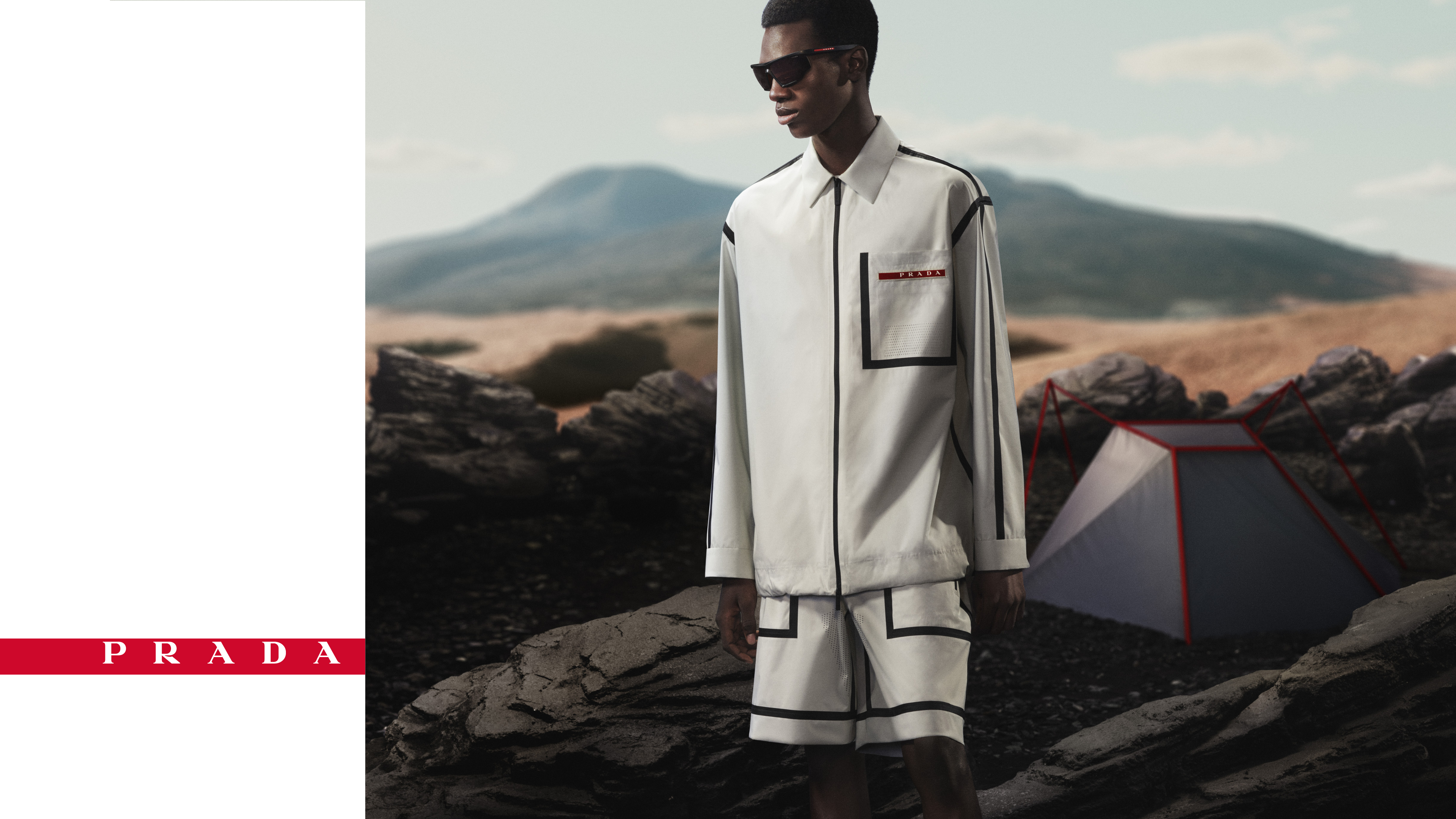 Clothing is a home for the body - shelter, protection. Exploring this idea further, for its Spring/Summer 2023 Linea Rossa campaign set, Prada collaborates with OMA to design a lightweight, modernist tent adapted to urban territory - geometric, mutli-faceted, and structured around the signature red lines of Linea Rossa.