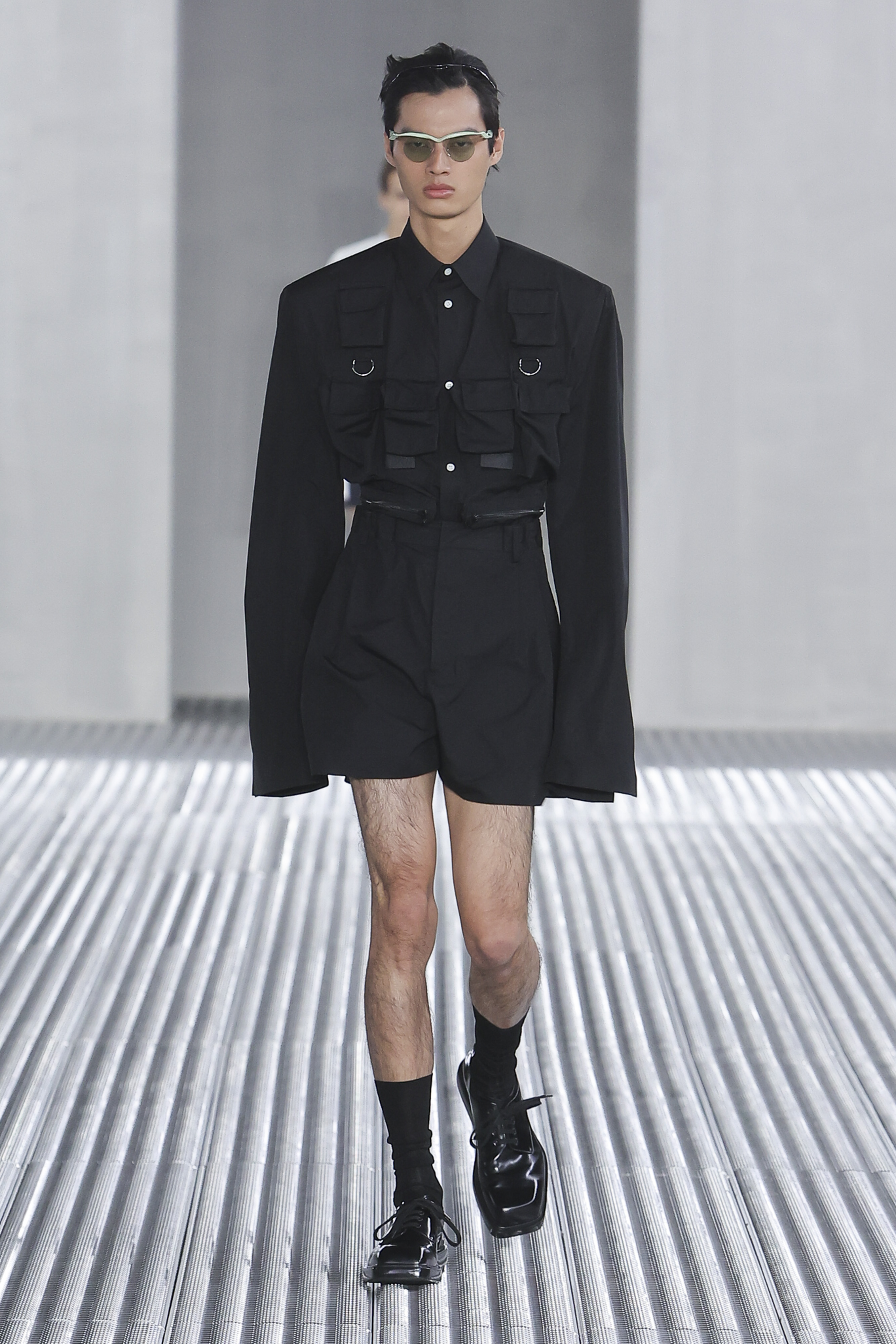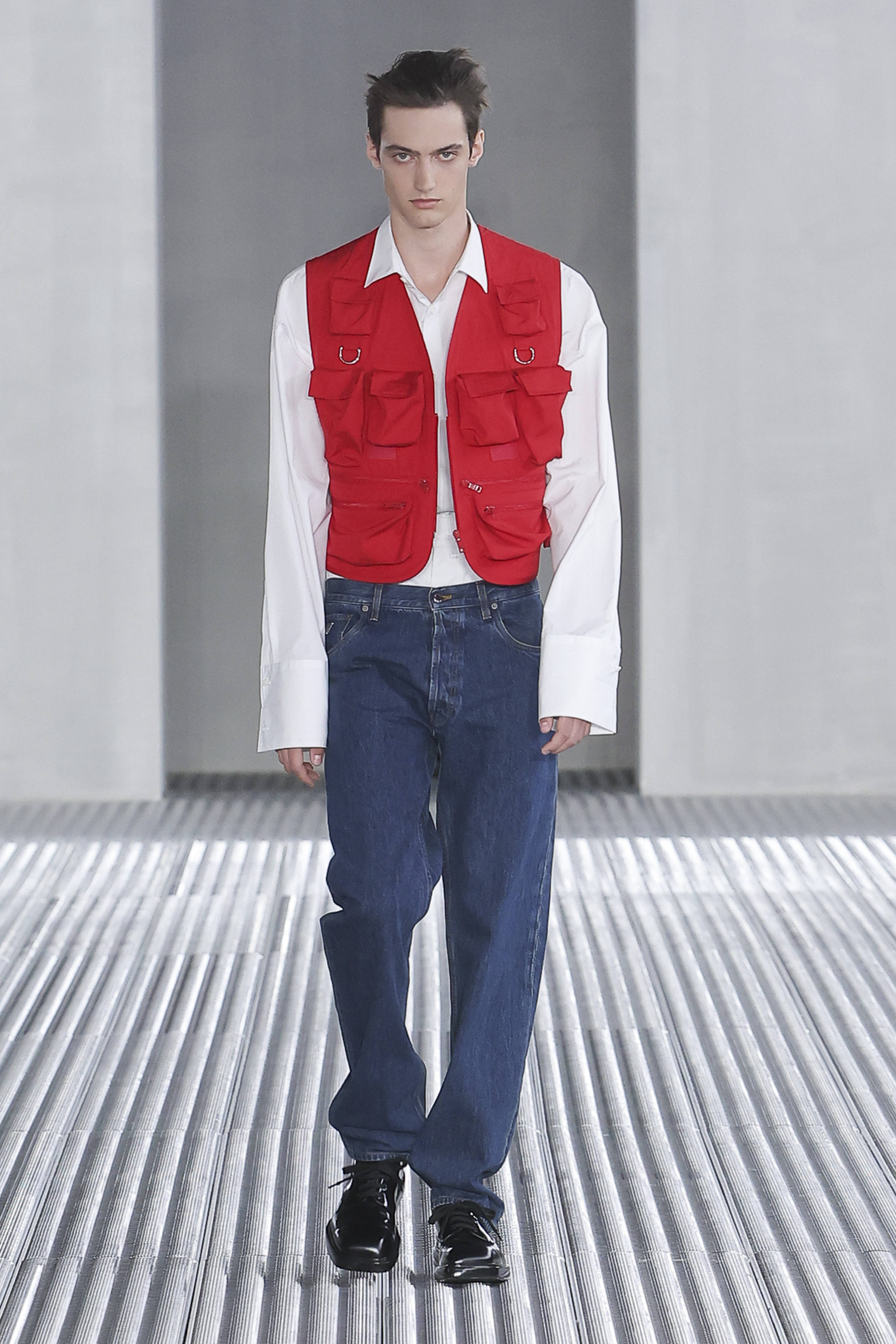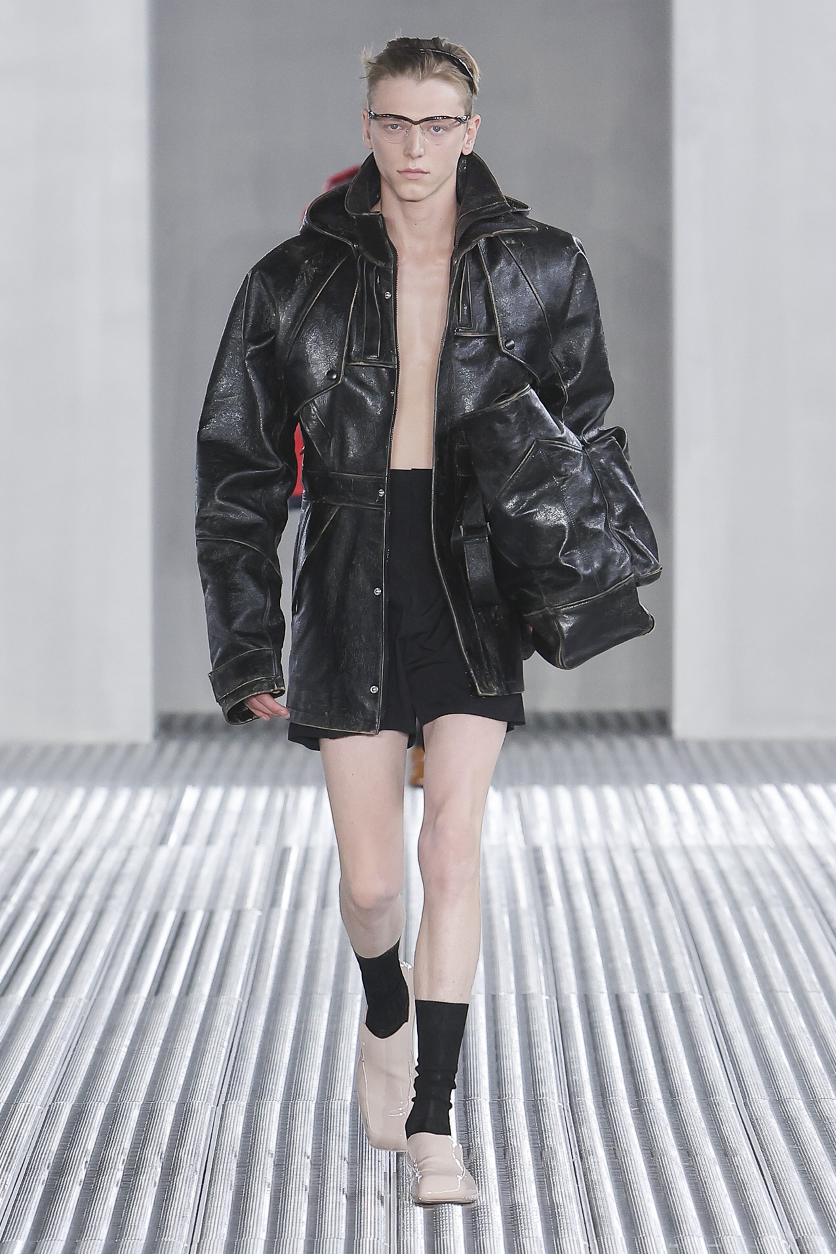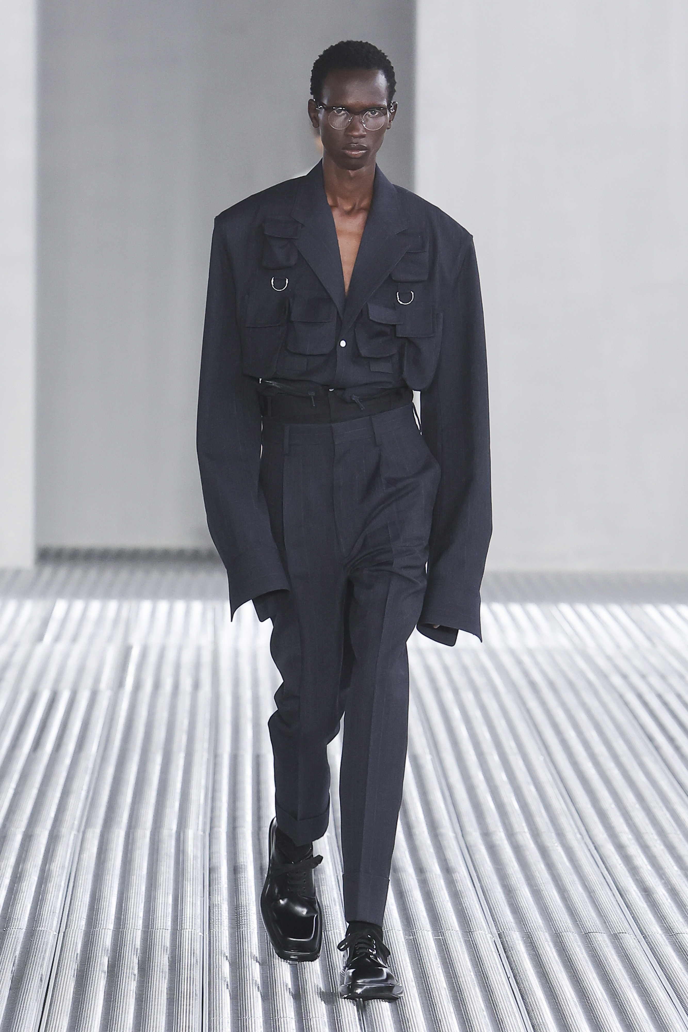 The shirt is a point of departure, its structure and details borrowed as a base to transform an entire stable of menswear - suits, raincoats, active sportswear, reporter jackets. Reconsidered construction, re-constructed. Beginning with simplicity, the collection proposes a notion of expansion, amplification of an idea - a paradox between silhouette and materiality. The ultimate aim is a constant awareness of the body within, and its liberation.