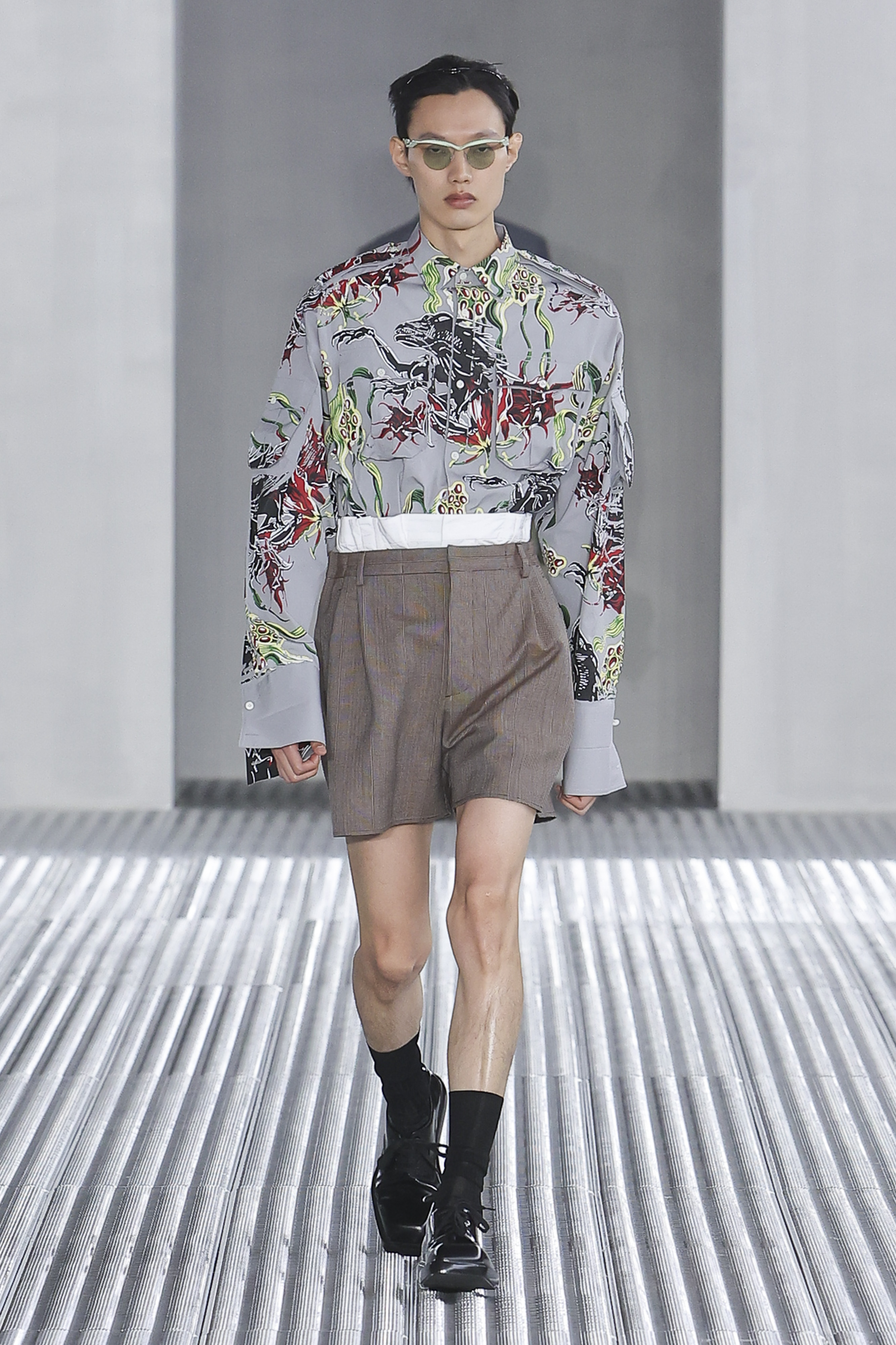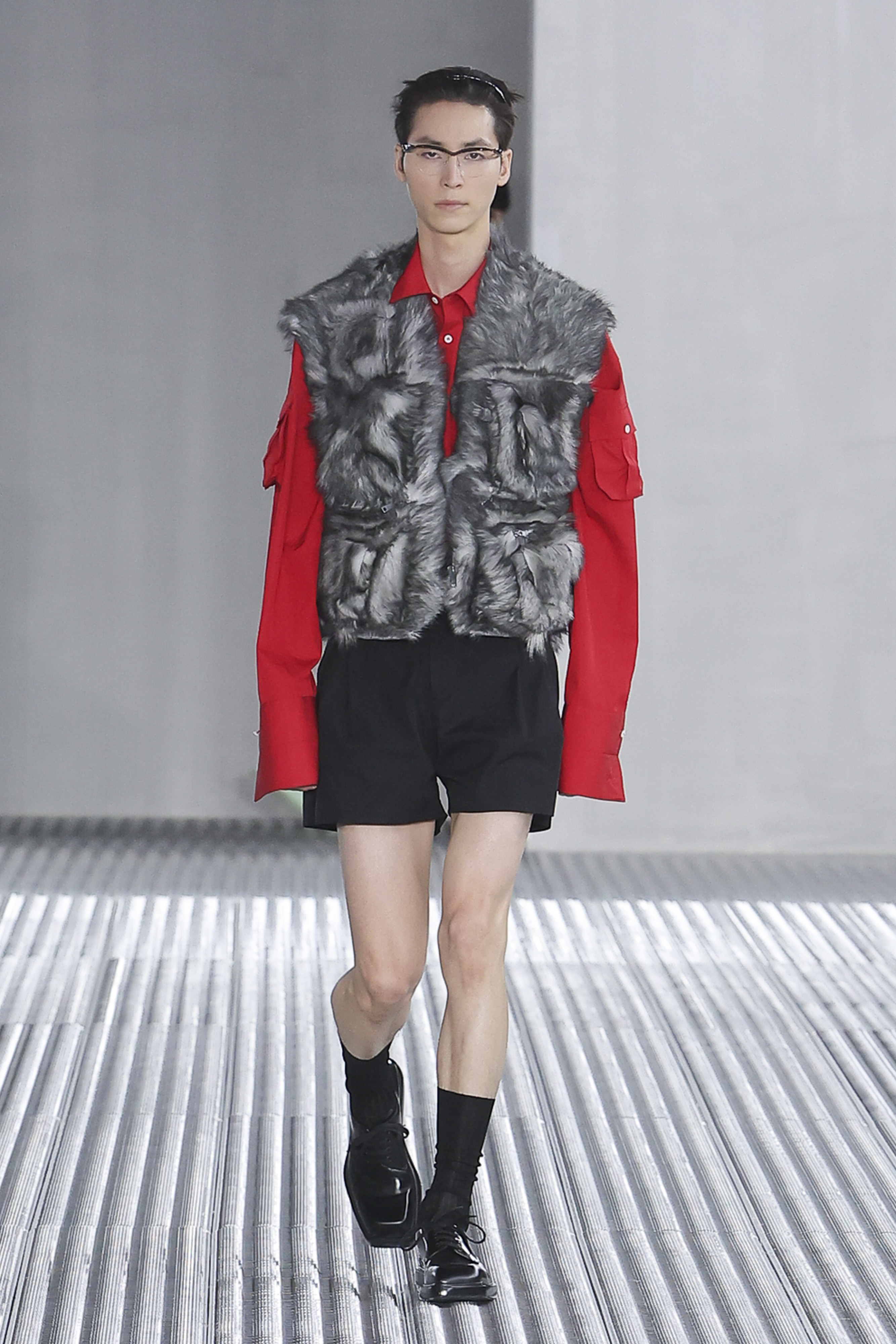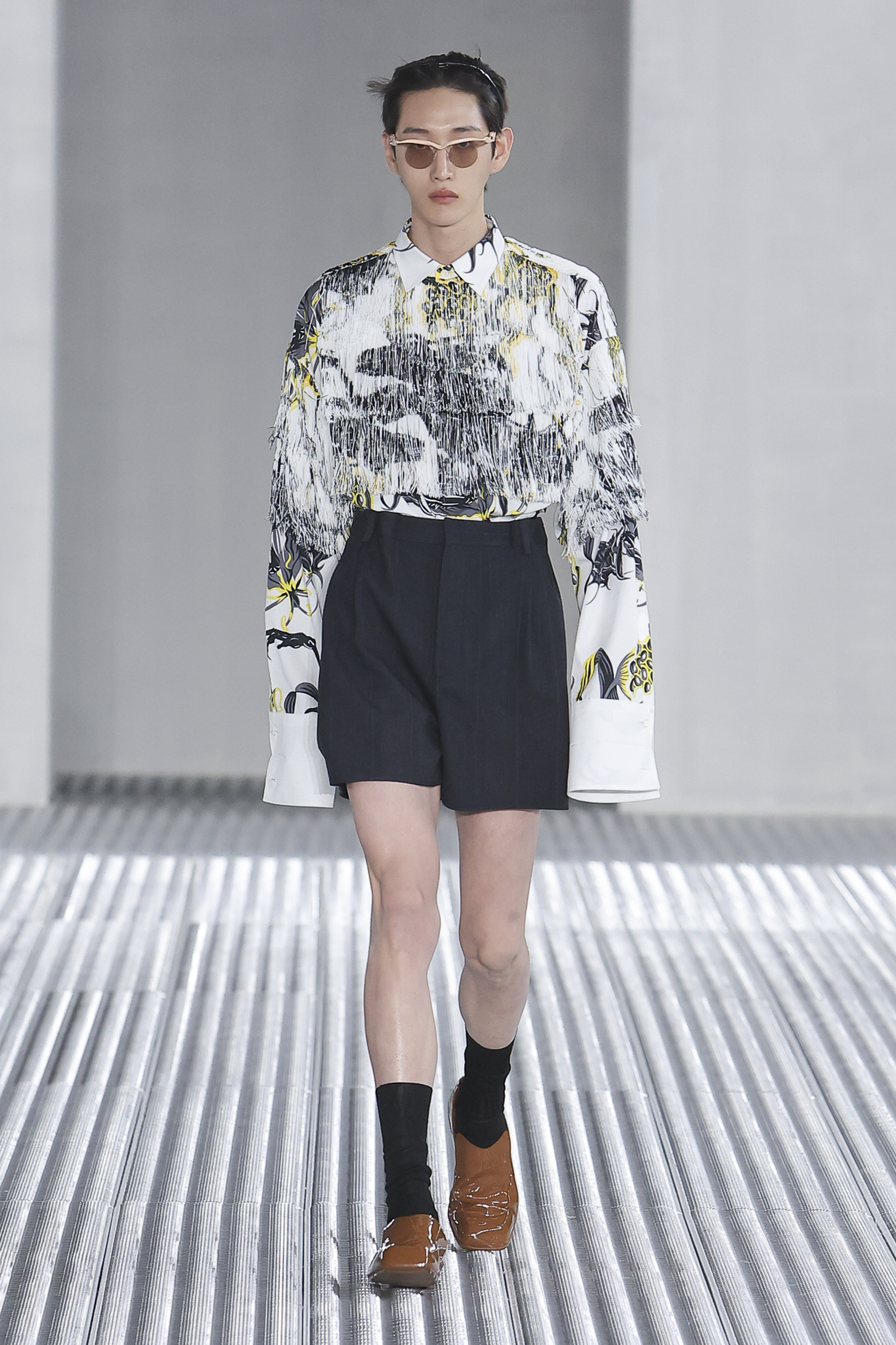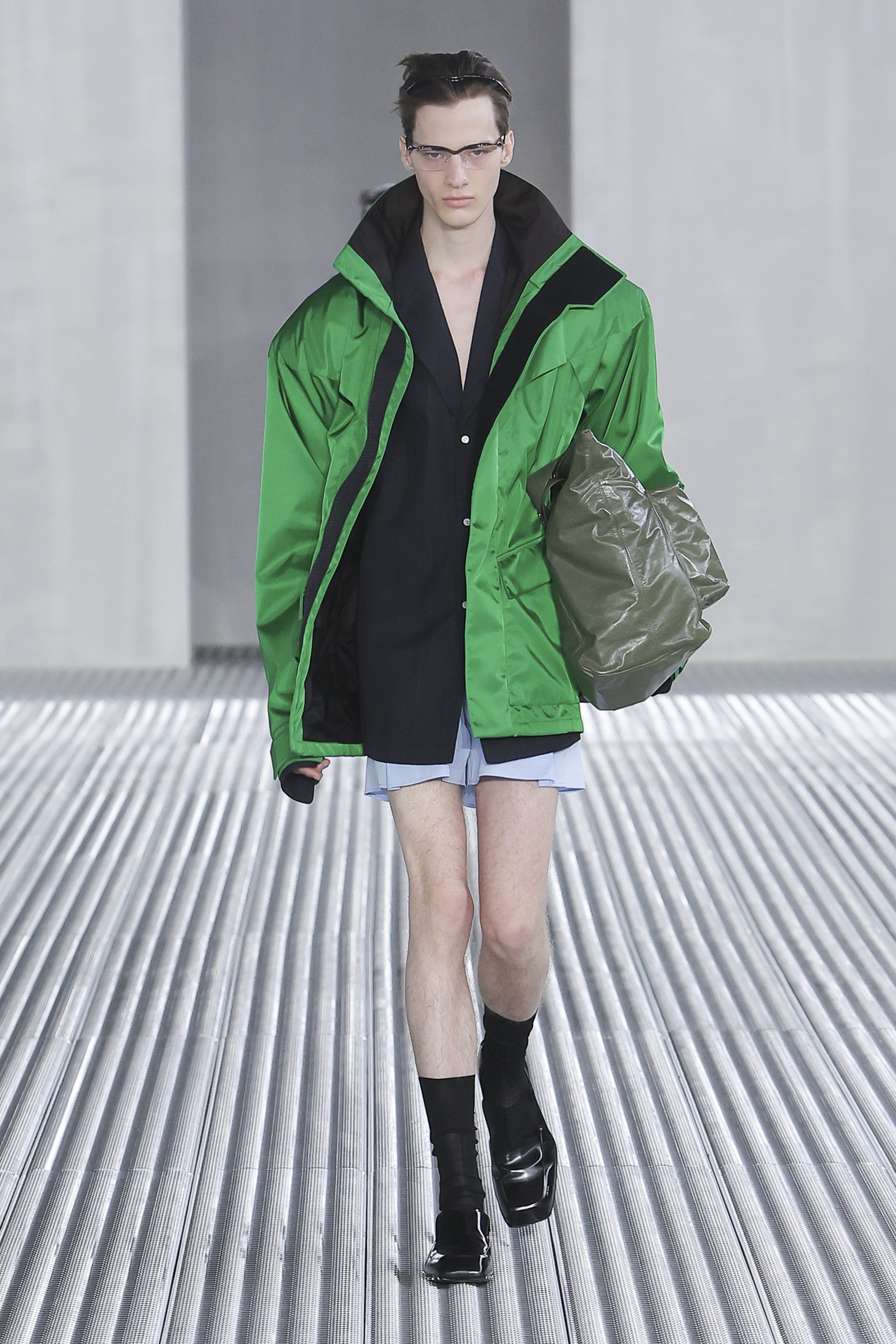 The shirt is a point of departure, its structure and details borrowed as a base to transform an entire stable of menswear - suits, raincoats, active sportswear, reporter jackets. Reconsidered construction, re-constructed. Beginning with simplicity, the collection proposes a notion of expansion, amplification of an idea - a paradox between silhouette and materiality. The ultimate aim is a constant awareness of the body within, and its liberation.