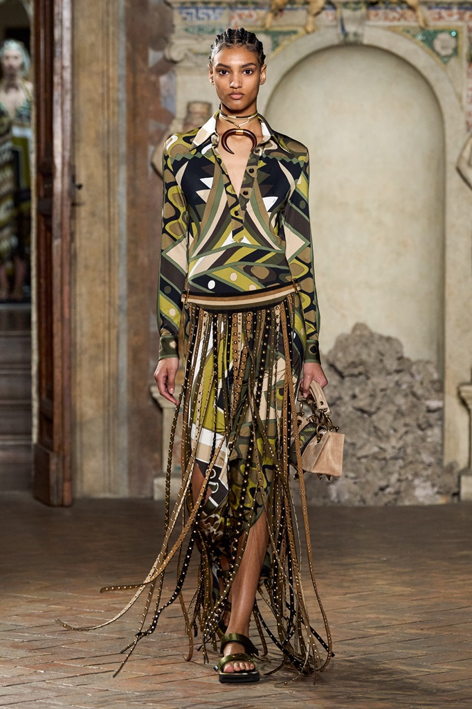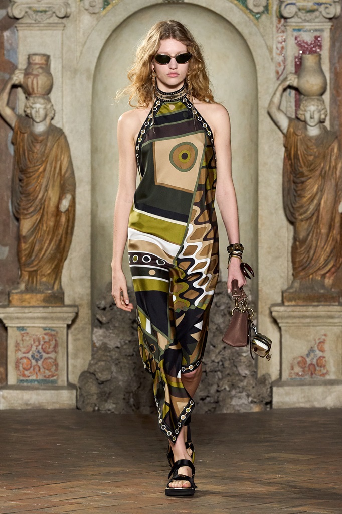 An escape to Rome leads to the historic Palazzo Altemps near the Piazza Navona, where Vivara along with other heritage prints return in a collection that gives off bold, modern and sensual expression. From an urban chic attitude to looks for days and nights by the beach, classic codes have been remixed and dialled up to emphasise Pucci's creative dynamism.