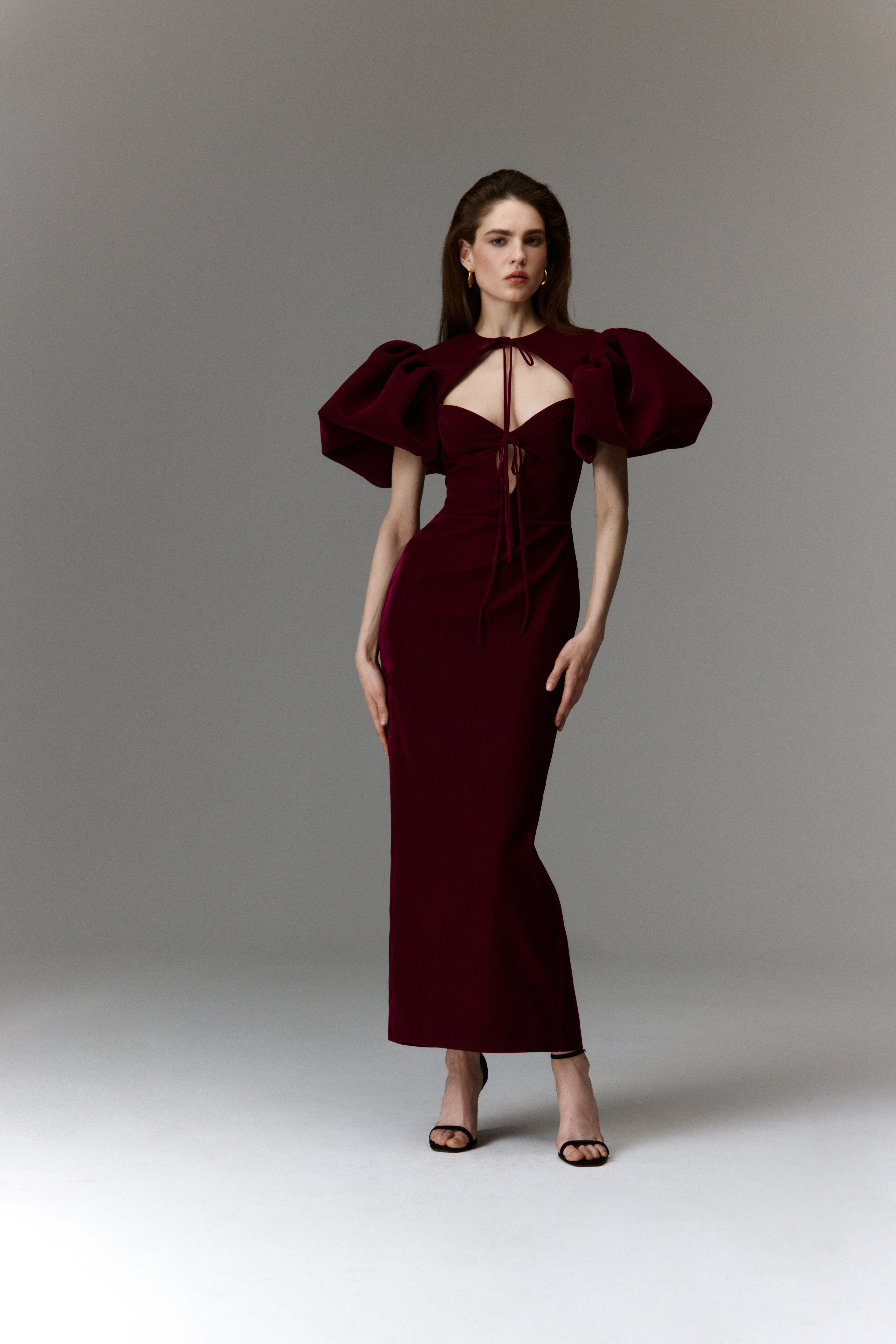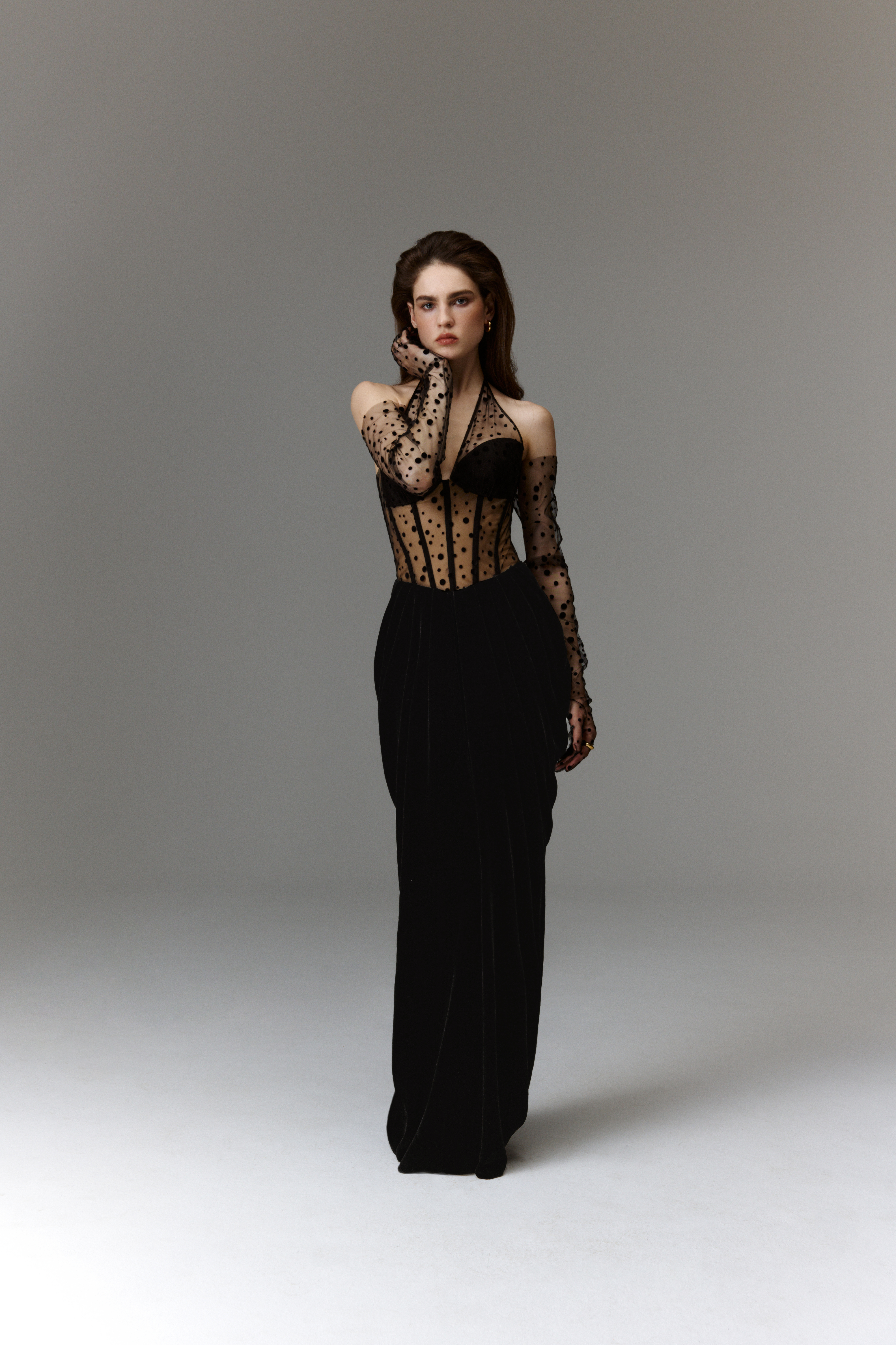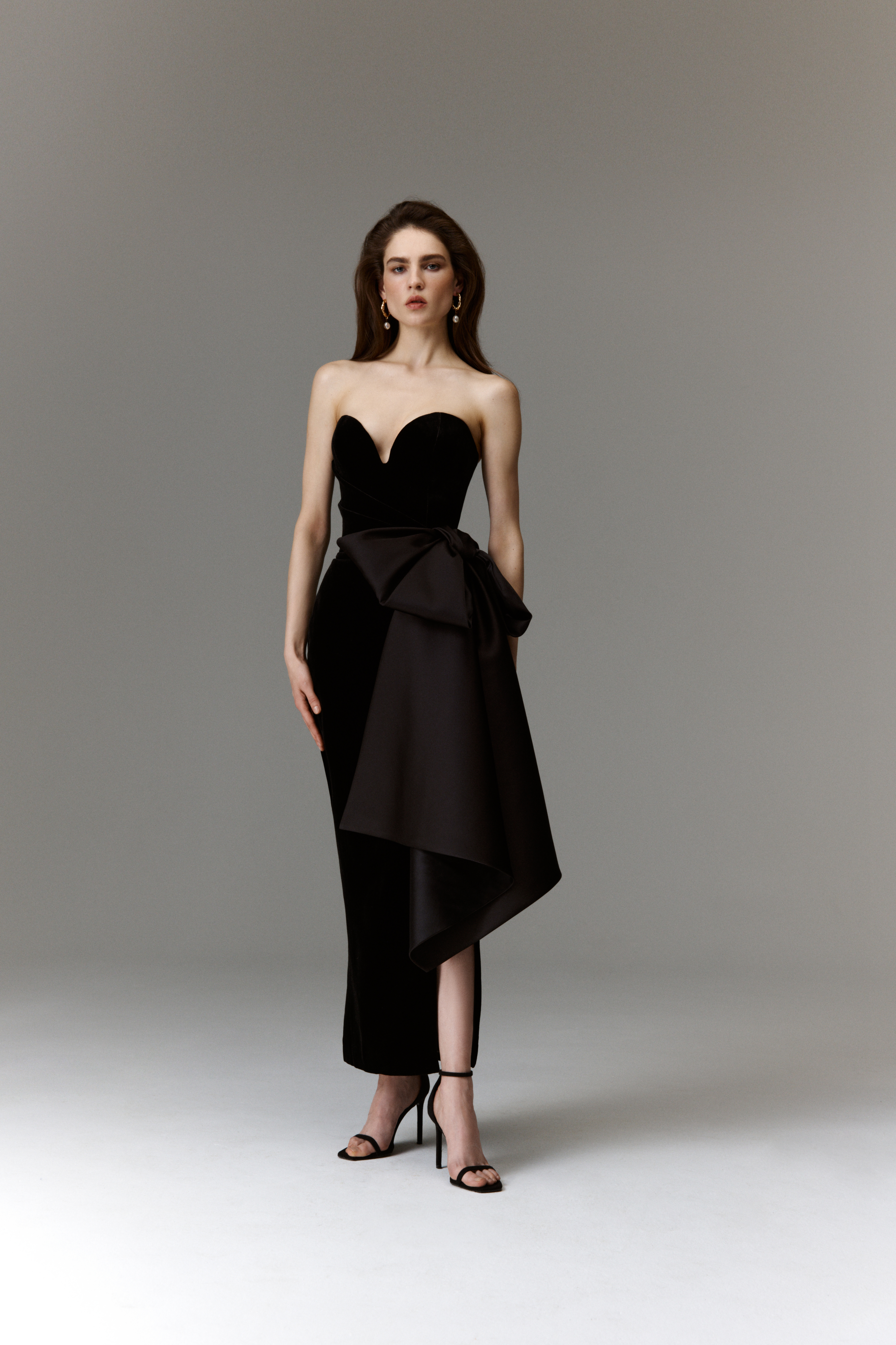 By seamlessly blending classic silhouettes with romantic touches, the collection radiates a whimsical charm. Intricate detailing and graceful evening dresses define its core, offering versatility for various occasions. A range of delicate bows, nostalgic godet dresses, open-back gowns, and corset-based bustiers are all designed to enhance and bring harmony the female figure, elevating the wearers' elegance.