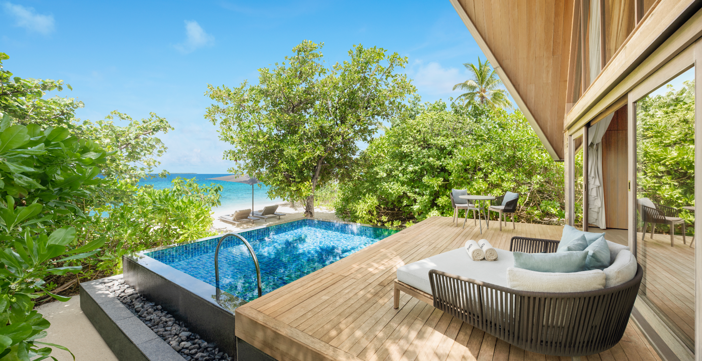 The designs of these villas were created concerning to the textures and patterns of the island’s sandy beaches. The interiors display customized bronze lights, and artworks inspired by driftwood, seashells, and seashore plants. The carpets in the villas reflect the beach’s layout. Moreover, all beach villas have large, floor-to-ceiling windows leading out to private terraces with views across the open ocean, free from any vegetation and right straight to your own private beach. Most interiors are designed to remain in the shade and stay calm during the day and keeping their privacy. While the blazing sun gives a scorching heat outside the villa, there’s the temperature control private pool with your very own outdoor lounge and sunbeds, making it a perfect retreat after a day spent on the beach and other water and land activities.