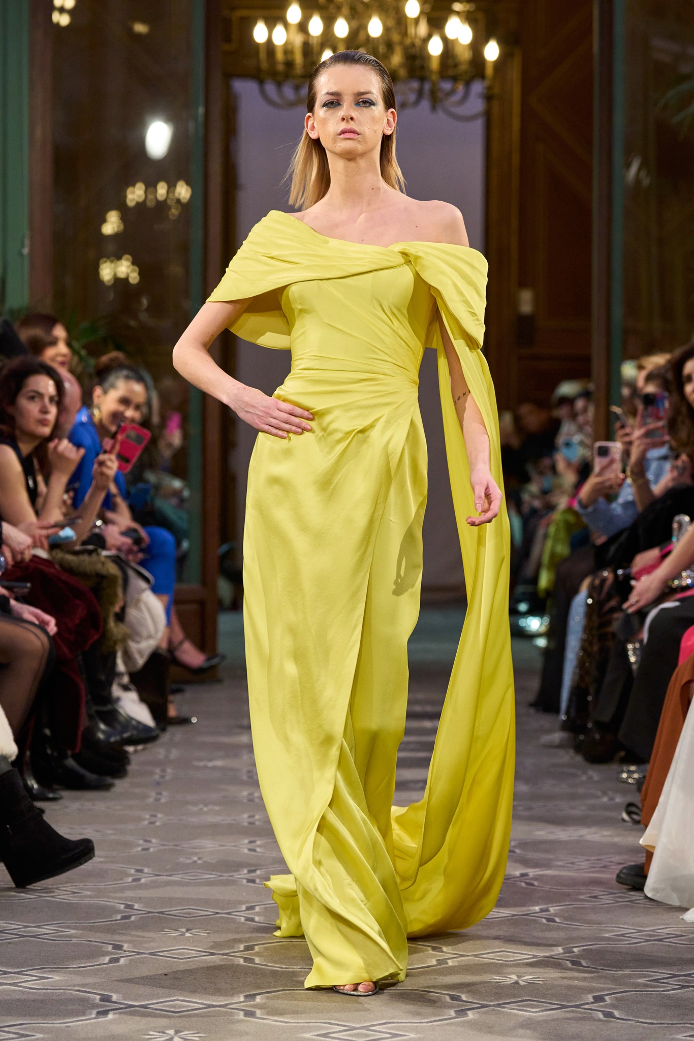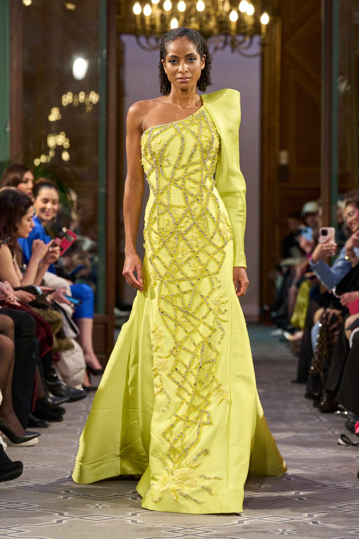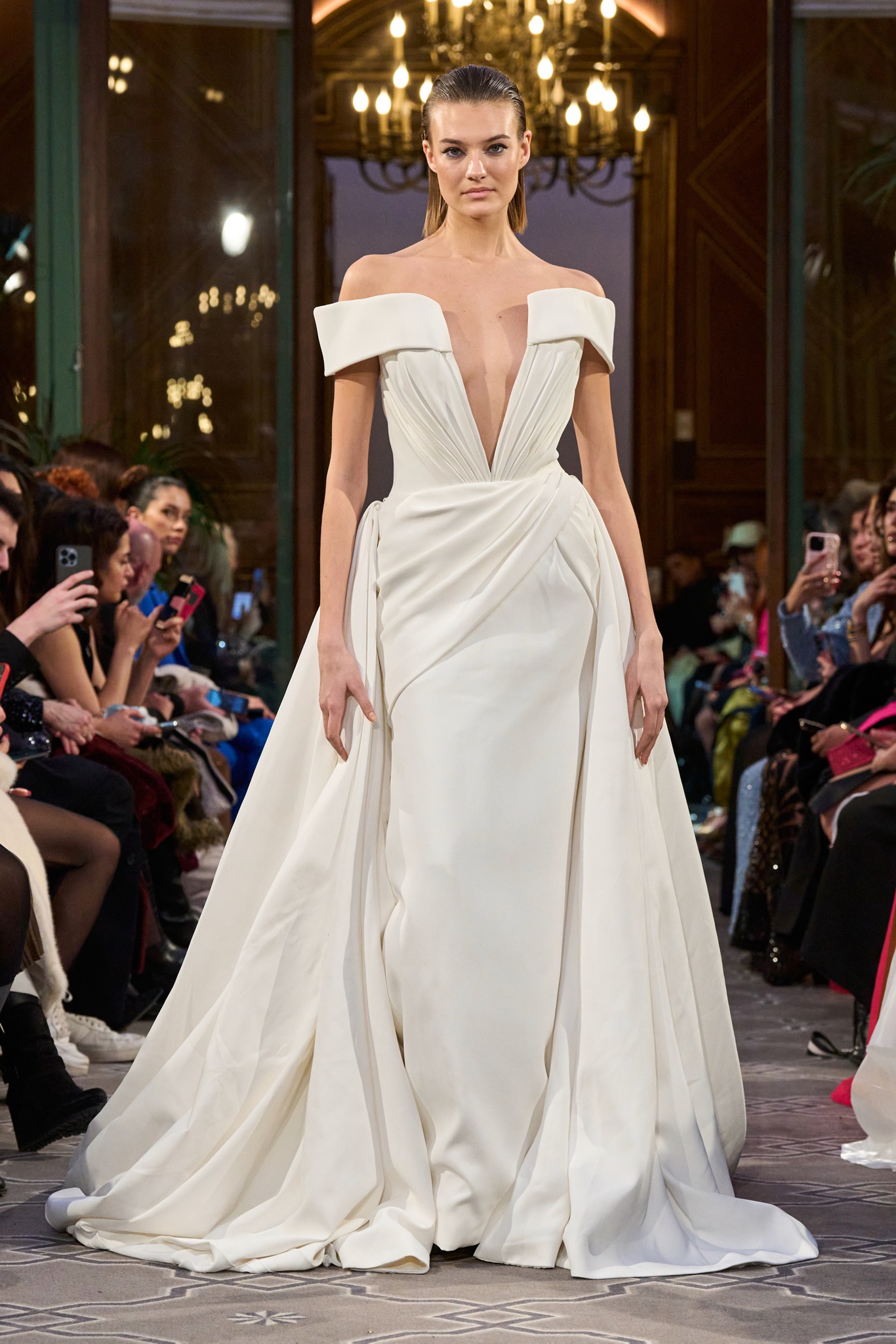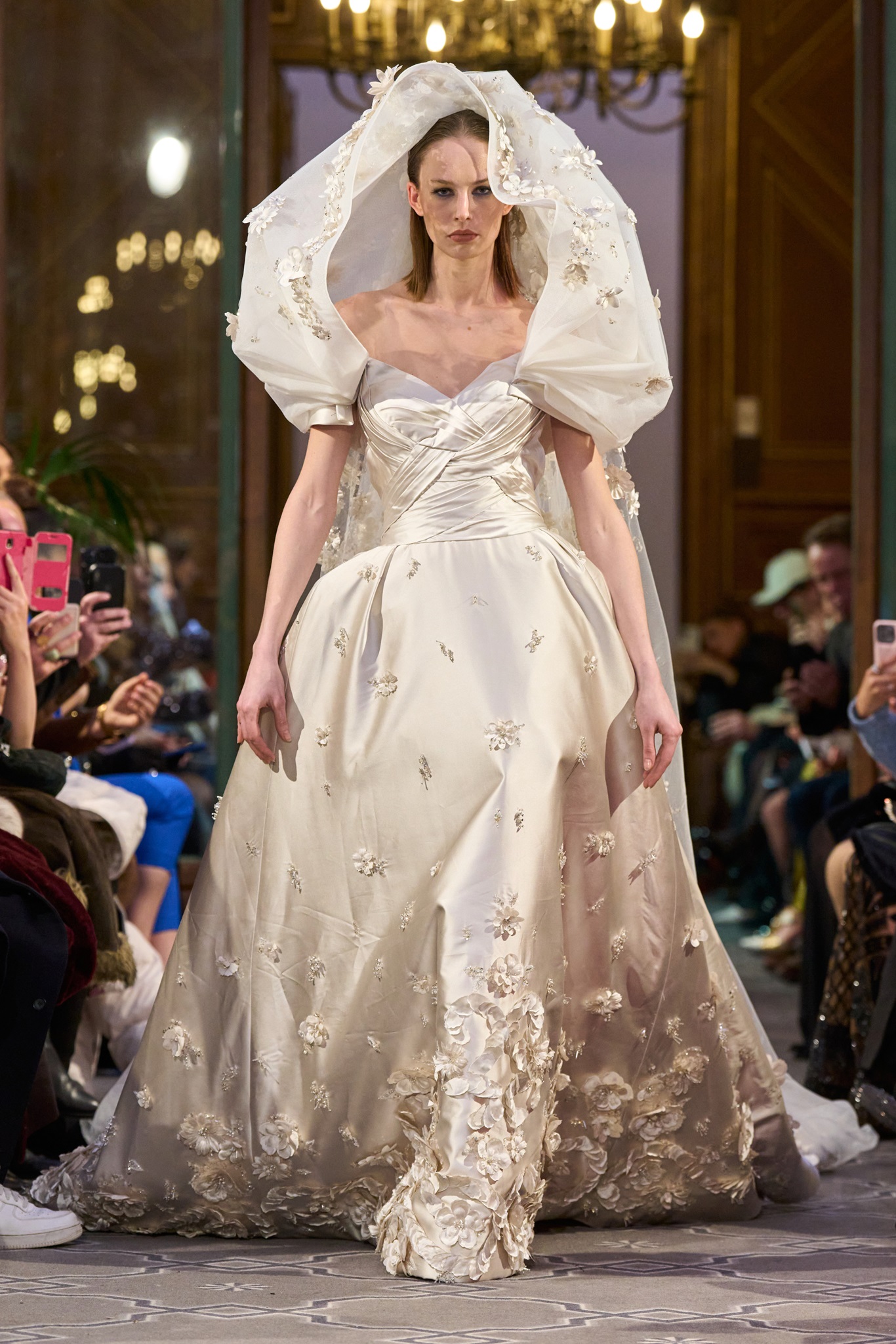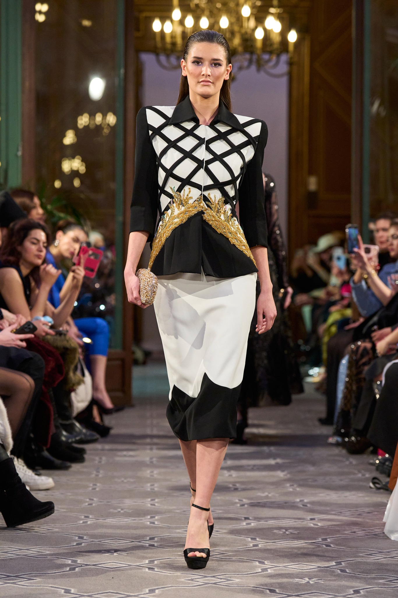 The show maintained a consistent context of creativity, concluding with a royal white wedding dress. Abi Nader creatively reconstructed and embroidered the fabric, resembling puzzle pieces, transforming the bride's look into a captivating royal context.