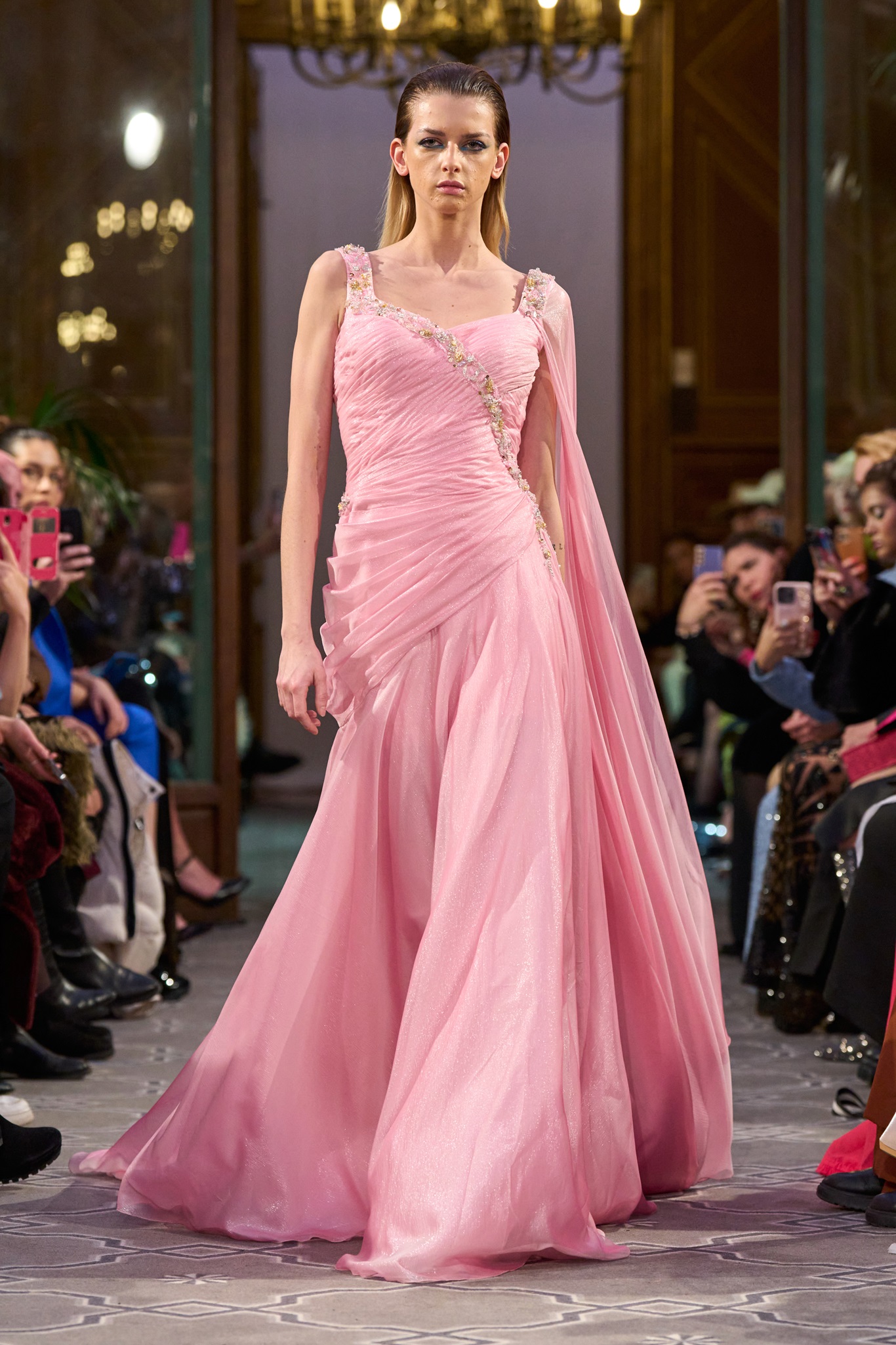 Impeccable elegance with creativity and grandeur is embodied in the professional revival of regal designs presented by the designer in an exceptional collection. Abi Nader dedicates the collection to gender diversity and integration in fashion design, introducing designs for men, emphasizing artistic integration in public appearances. Displayed during the Paris Fashion Week for "Haute Couture," the collection marks a significant artistic leap in a post-pandemic, ever-changing world. Abi Nader's precision and imaginative breadth redefine designs with unique styles, colors, ideas, and cuts. After a four-year absence, he resumes his showcases in Paris, making a qualitative and pivotal mark in the fashion world, being one of the first Lebanese to enter Paris and present shows after graduating from CHAMBRE SYNDICALE school.
