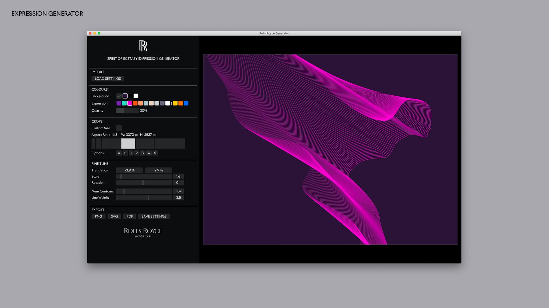 Pentagram was drawn to purple hues, specifically those with a deep and majestic tone. Historically rare in nature and with roots in mythology, art, piety and royalty, purple has always signified wealth and power. In a nod to the Spirit of Ecstasy, a colour named Purple Spirit will pave the way for the future of luxury by becoming Rolls-Royce's signature colour.