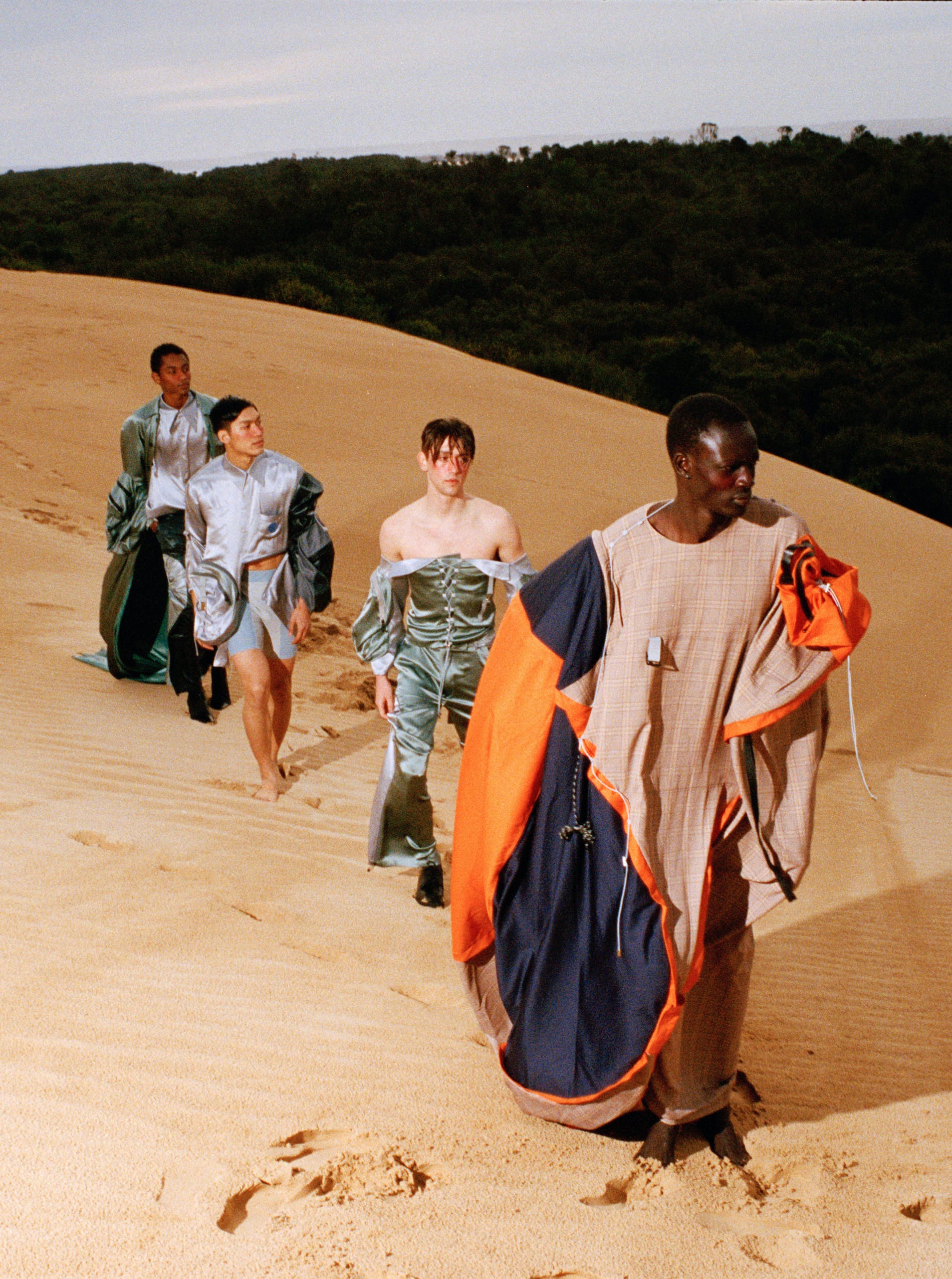 Jake is one of the top emerging Australian designers (RMIT | Master of Fashion (Design)), a true master of multifunctional genderless garments. The entire mission of the brand is deconstruction of modern gender, beauty and fashion stereotypes. Most of his garments are transformable and can be easily turned into a carrier bag, a warm blanket or a t-shirt.