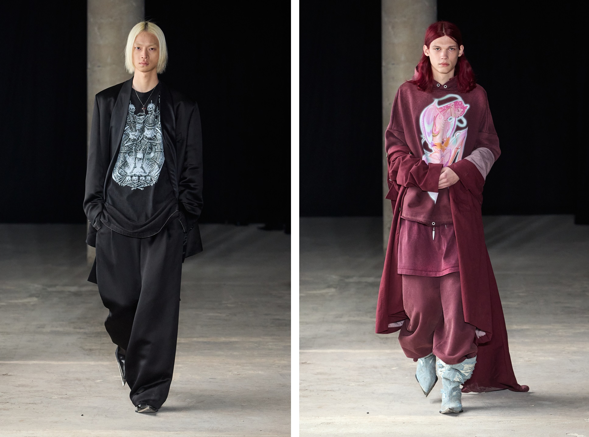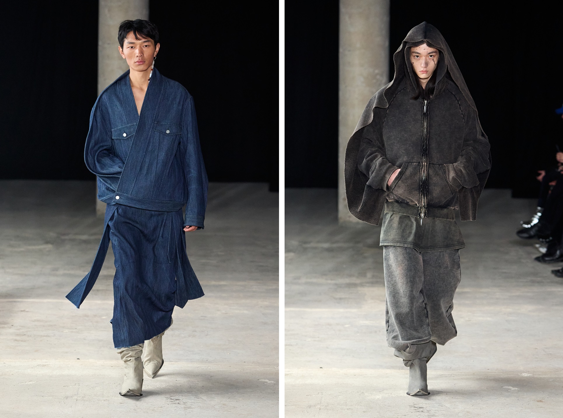 The iconic dagger can be found as ornamentation on zippers and drawstrings, also shaping the pointed toes of distressed cowboy boots and mules. Beyond its stylistic significance, the dagger holds deeper symbolism, frequently employed in Buddhist rituals, further emphasizing the collection's spiritual connection to the sacred Kangrinboqê. A jewelry collection featuring the distinctive dagger motif is also unveiled this season.