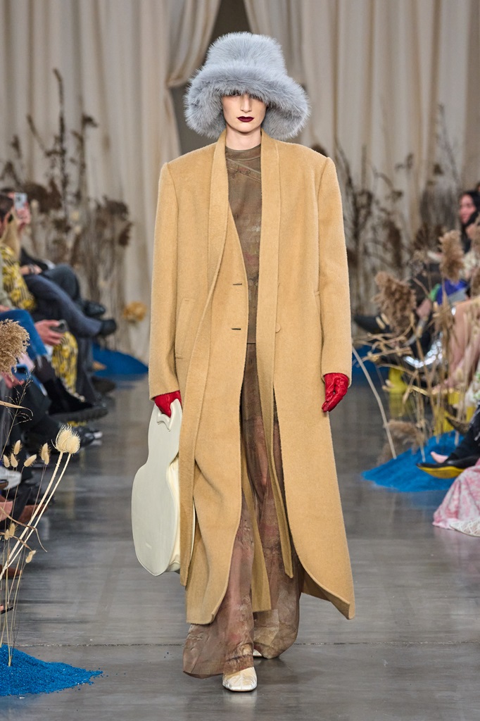 In particular, the floral prints are inspired by the four magnificent flowers found on Dunhuang murals, a system of 500 rock-cut temples in Gansu province along the Silk Road. Peony, pomegranate flower, poinsettia and honeysuckle represent the resilience of women, their ability to adapt and their understanding and hope for a life full of beauty and happiness.