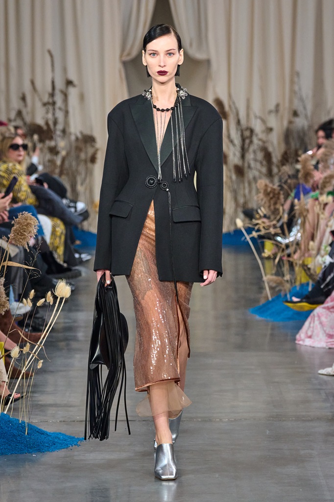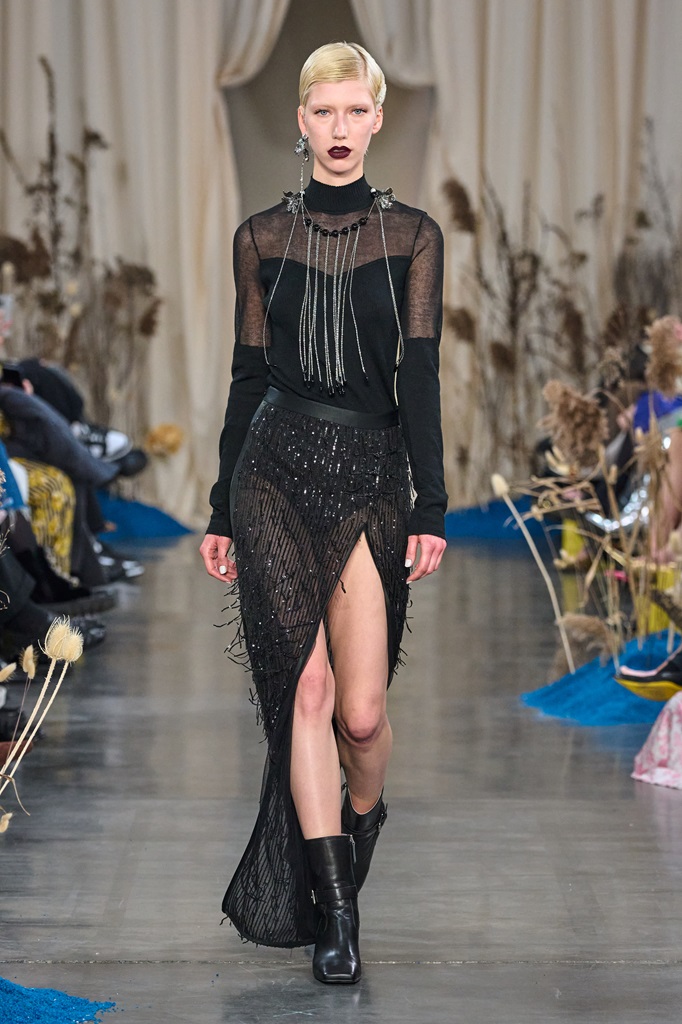 The designer drew inspiration from the immortal words of William Blake in his poem "Auguries of Innocence" and the cultural richness of the Silk Road to create a fashion experience that celebrates the connection between the microcosm and the macrocosm, the limited and the infinite.