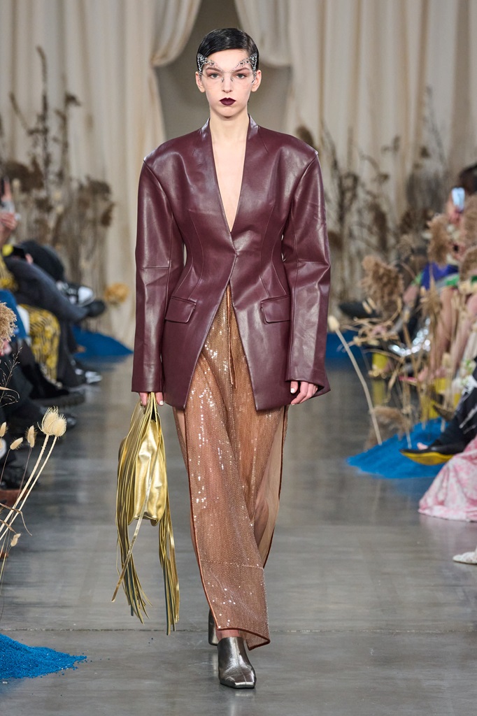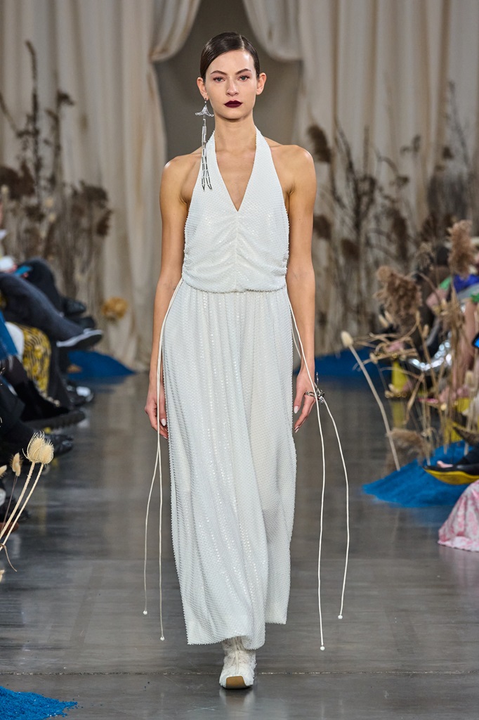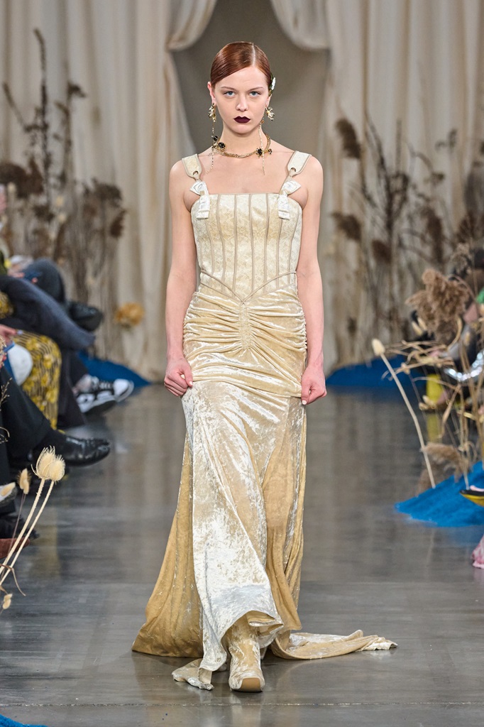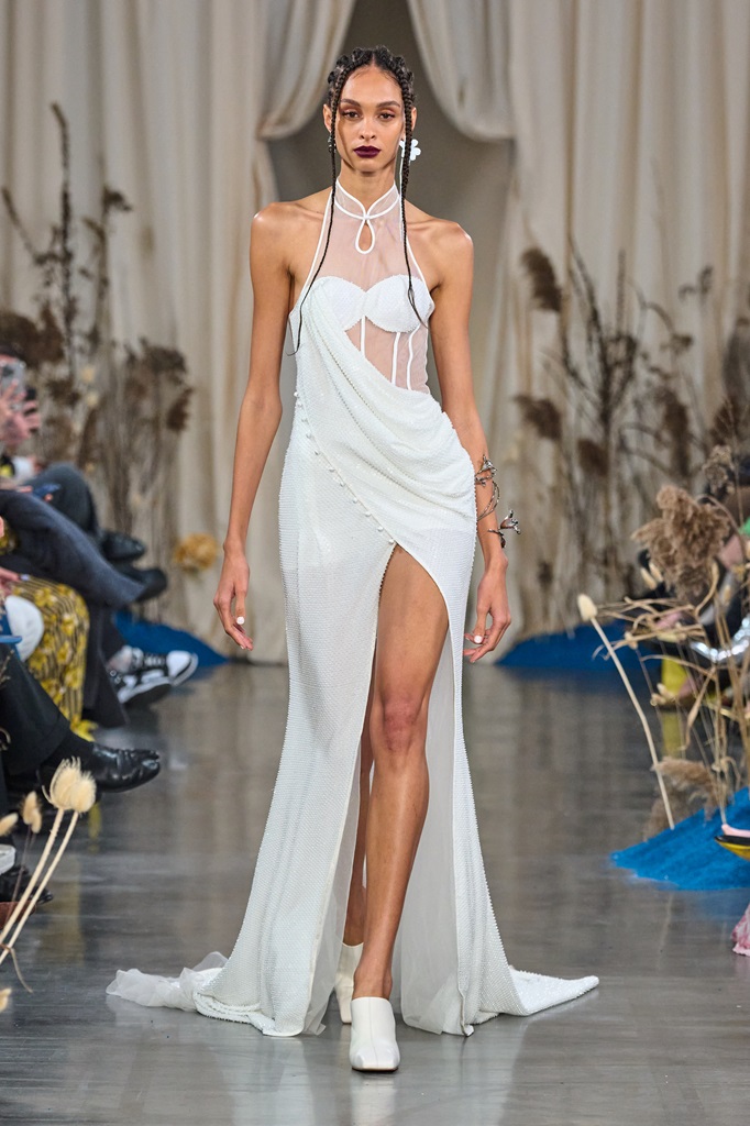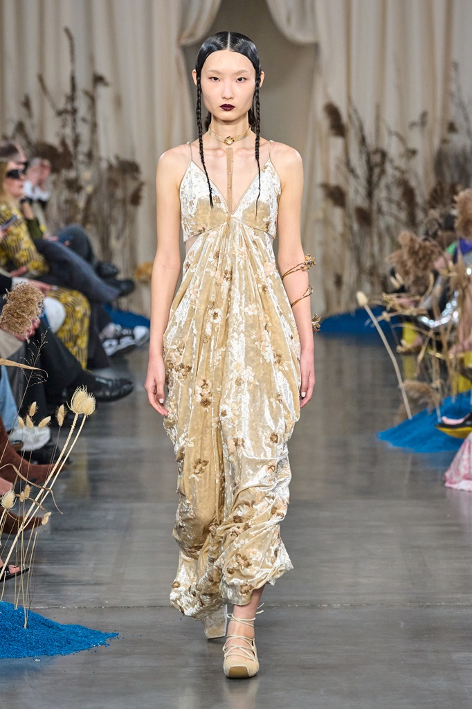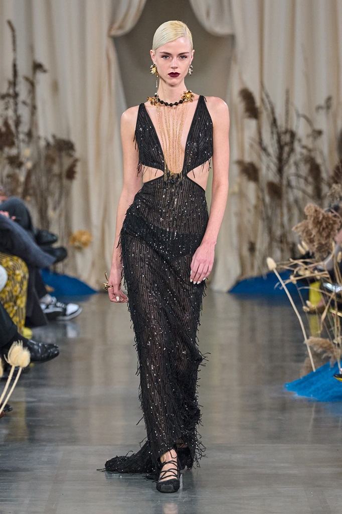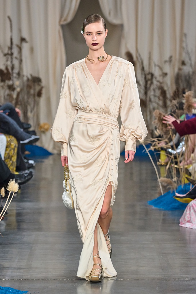 “Blossoms Sand" manifests itself through a fusion of timeless elegance and contemporary innovation. Rich fabrics and flowing silhouettes blend harmoniously with intricate details inspired by nature. Elegance is combined with whispered sensuality, creating a perfect balance between sophisticated femininity and bold modernity. The collection embodies the vision of a confident woman, aware of her inner and outer beauty.