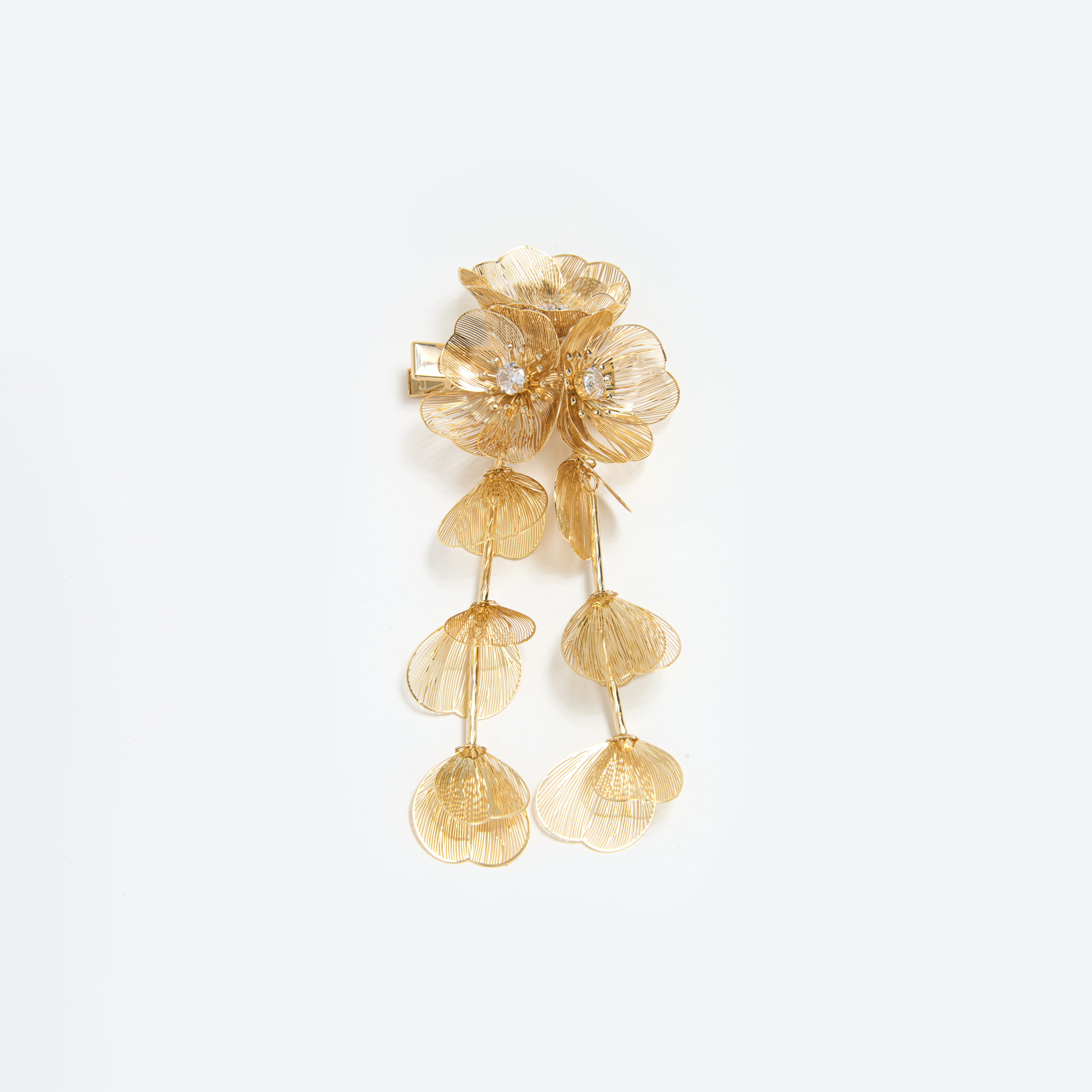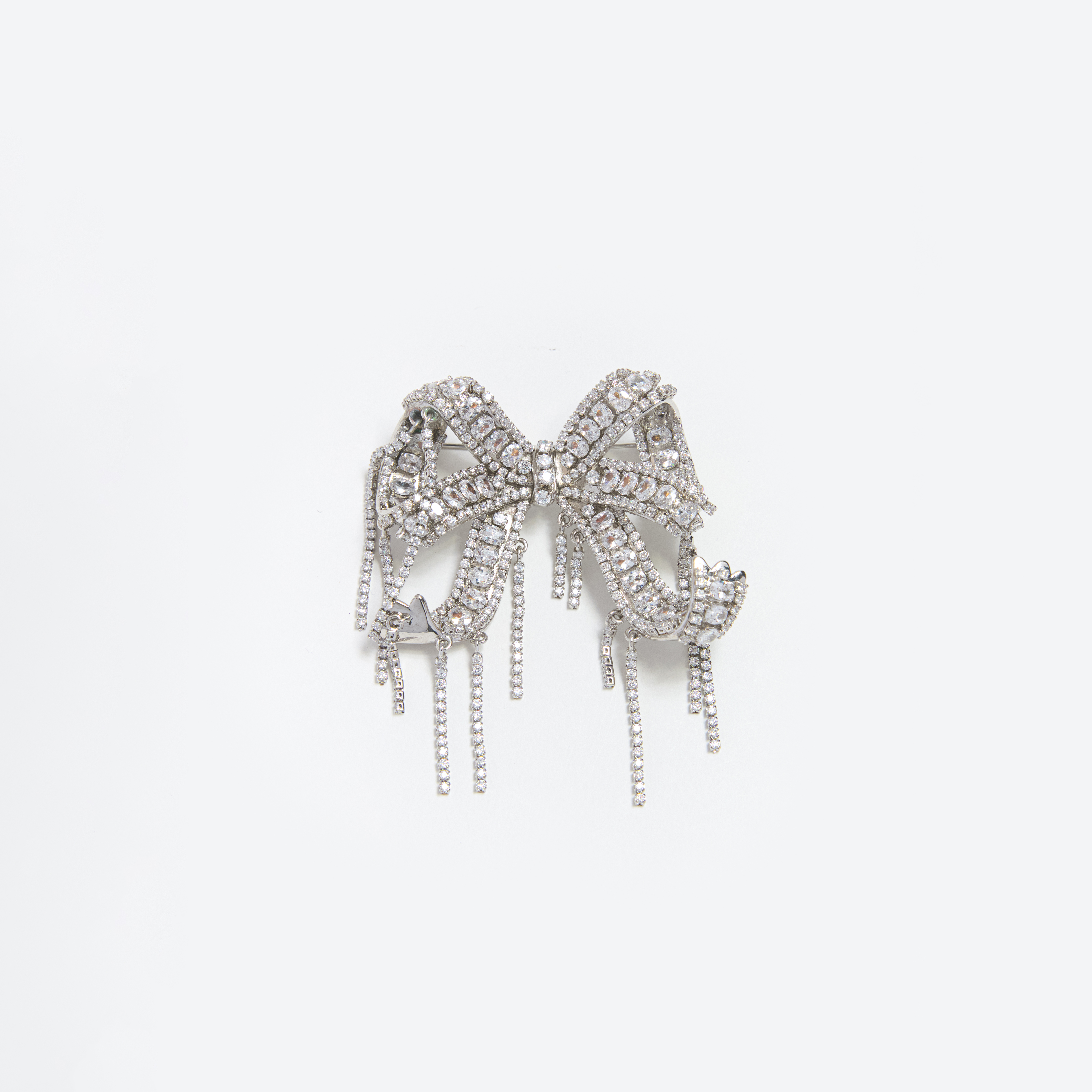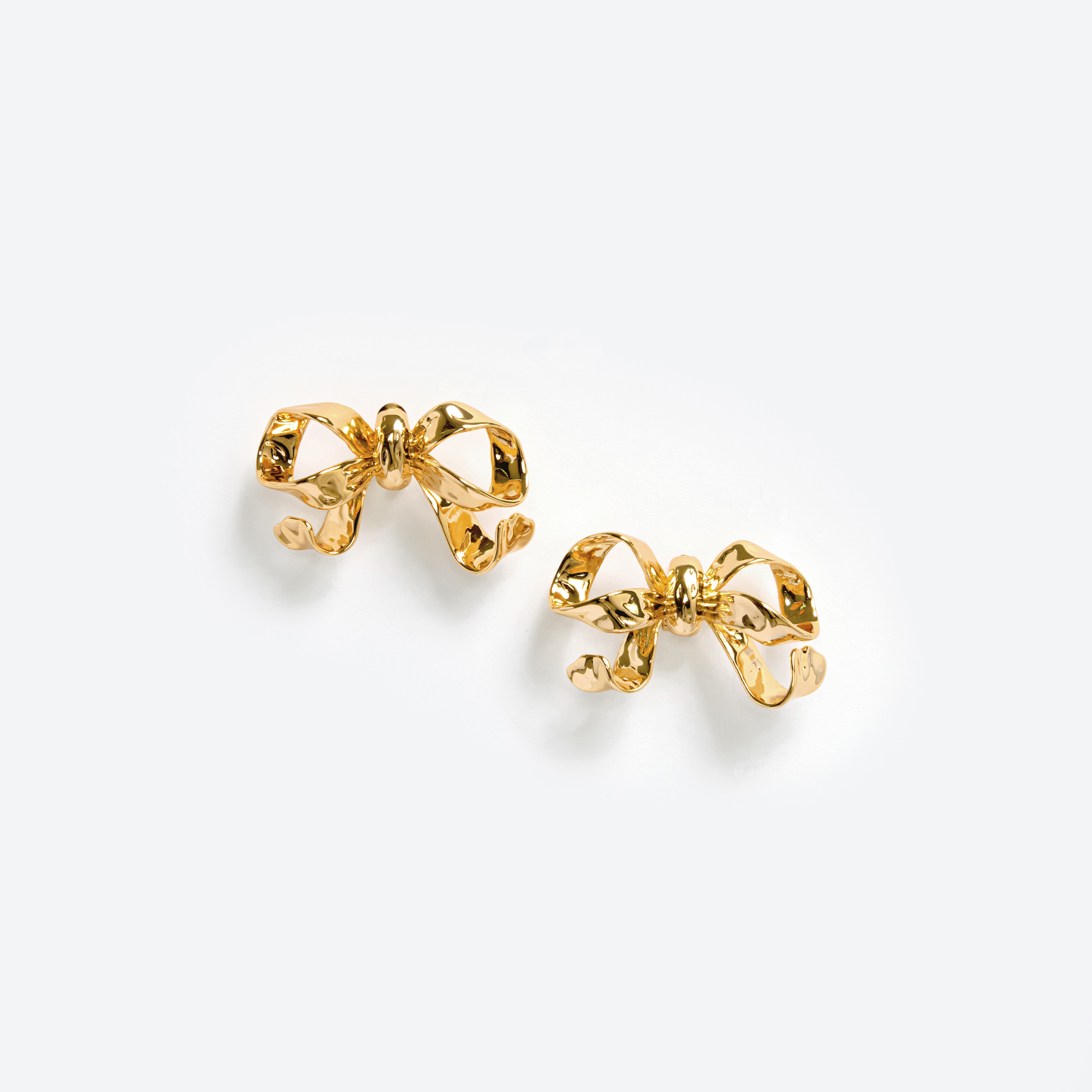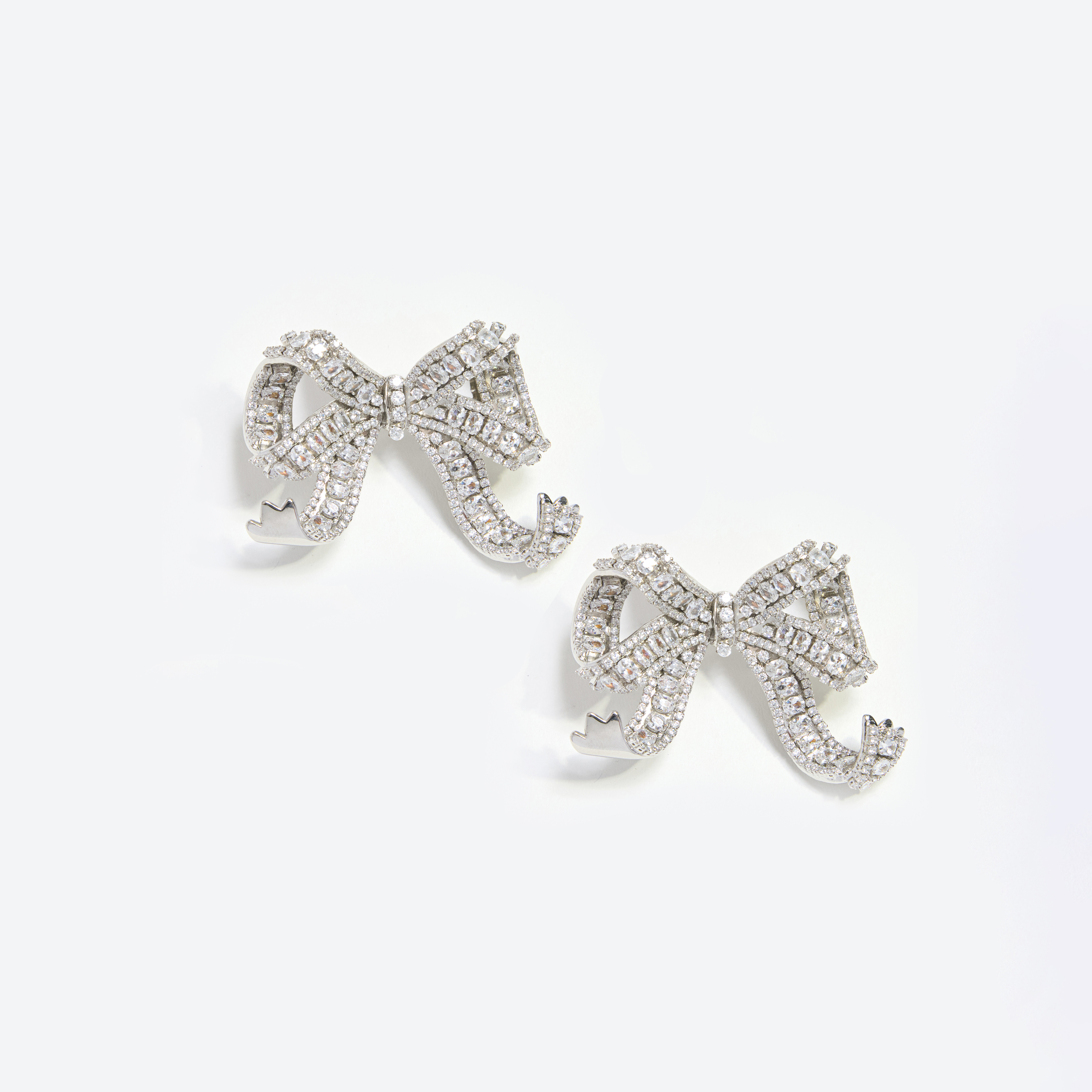 The debut jewellery line draws inspiration from the brand’s iconic bow motif, originally introduced through their ready to wear and Bow Bag collection, and reimagines it into an array of exquisite pieces. The collection includes sparkling statement earrings, chunky gold bangles, and crystal bow brooches made with 18k plated gold and 18k white plated gold. Ranging from £95 to £200, the collection embodies the brand's ethos of offering beautifully designed, high-quality pieces at accessible price points.
