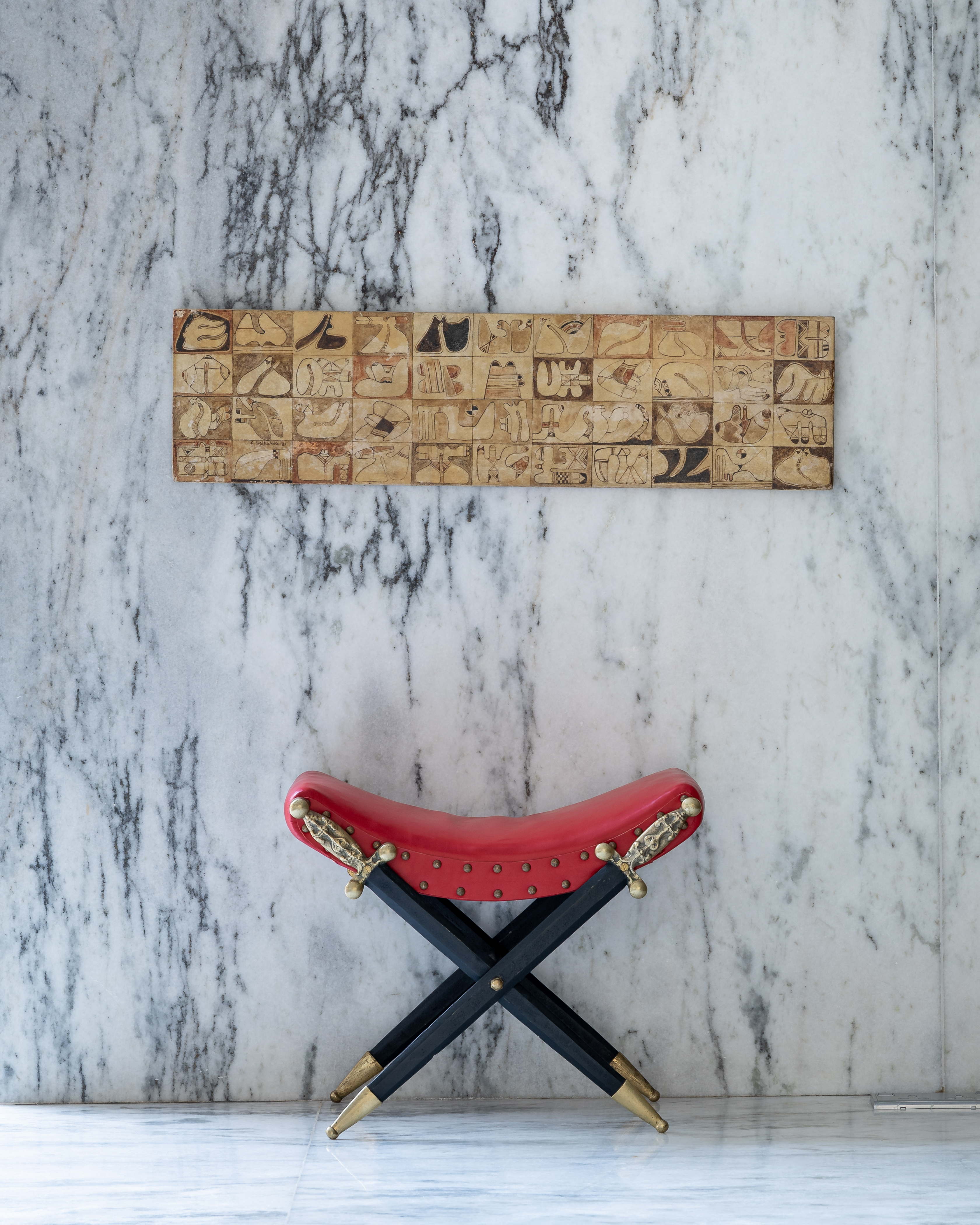 Farid Belkahia was born in 1934 in Marrakech, studying art from a young age before moving to Paris to enroll in the Ecole des Beaux-Arts and then onto Prague to study stage-design. In the three years he was in Prague, Belkahia became interested with a variety of existential questions that ultimately convinced him of the importance of preserving one’s cultural heritage. For that reason, he returned to Morocco and – along with other pioneering Moroccan artists – embarked on a quest to reform the very essence of art and the way it is taught, focusing on Moroccan craftsmanship.