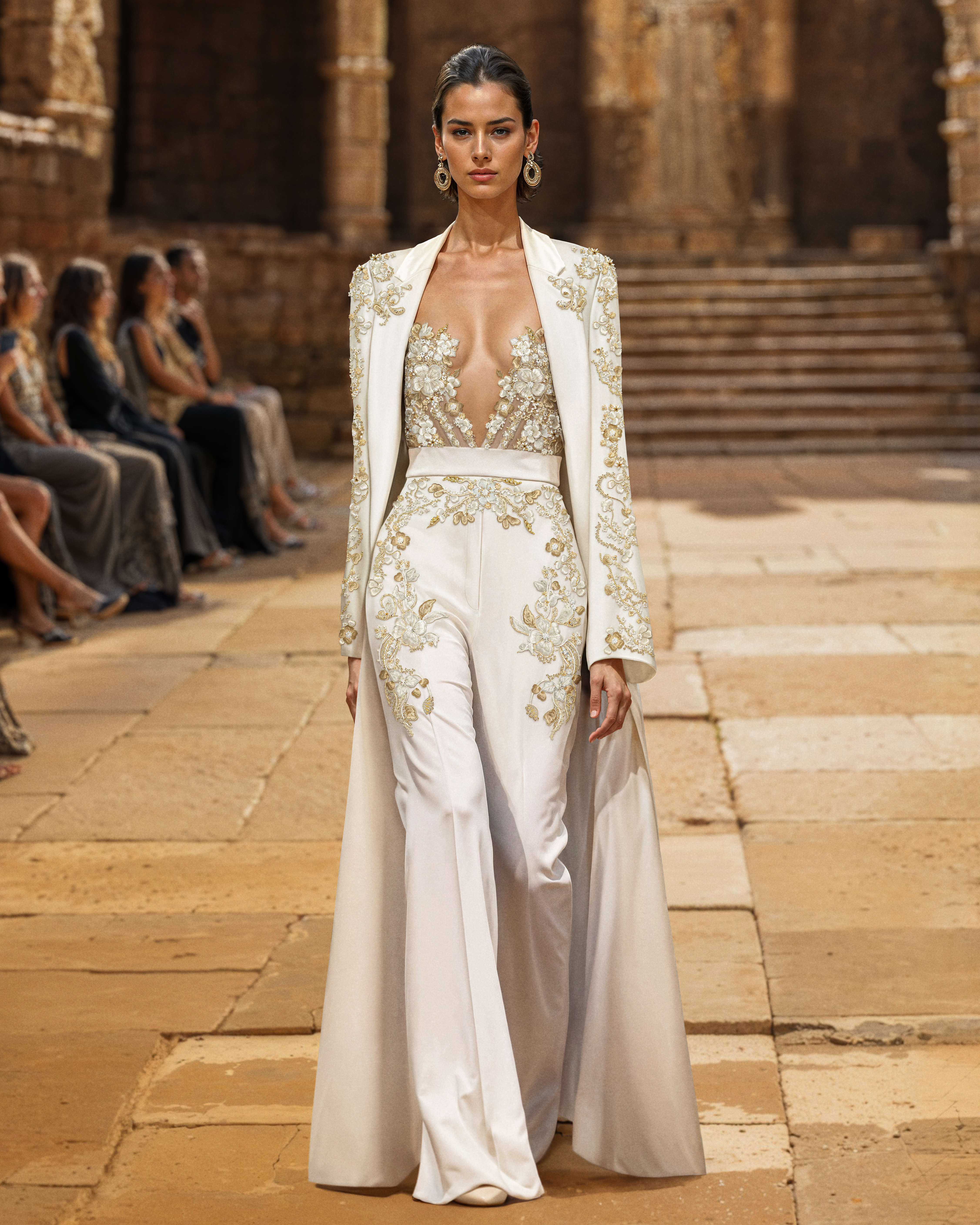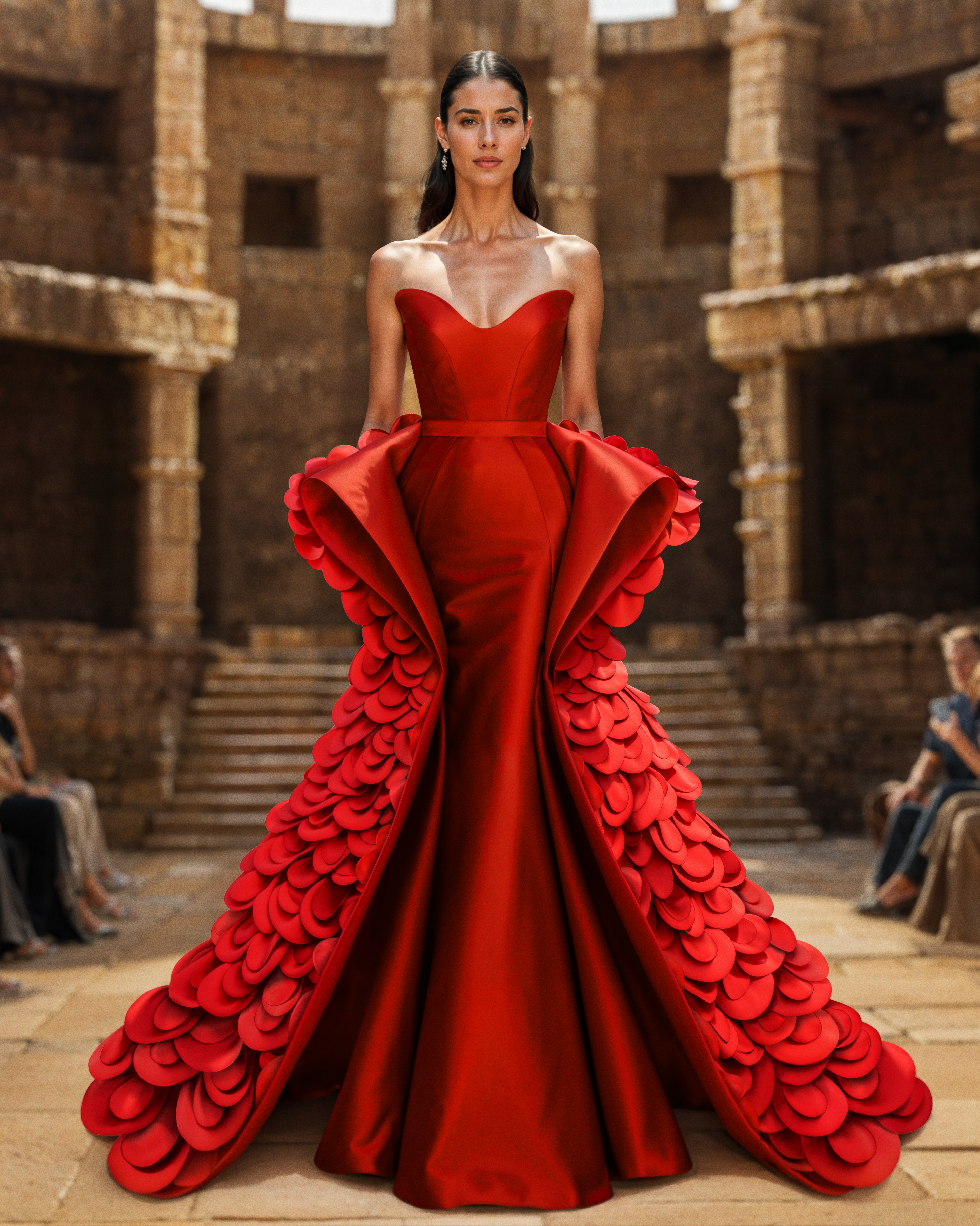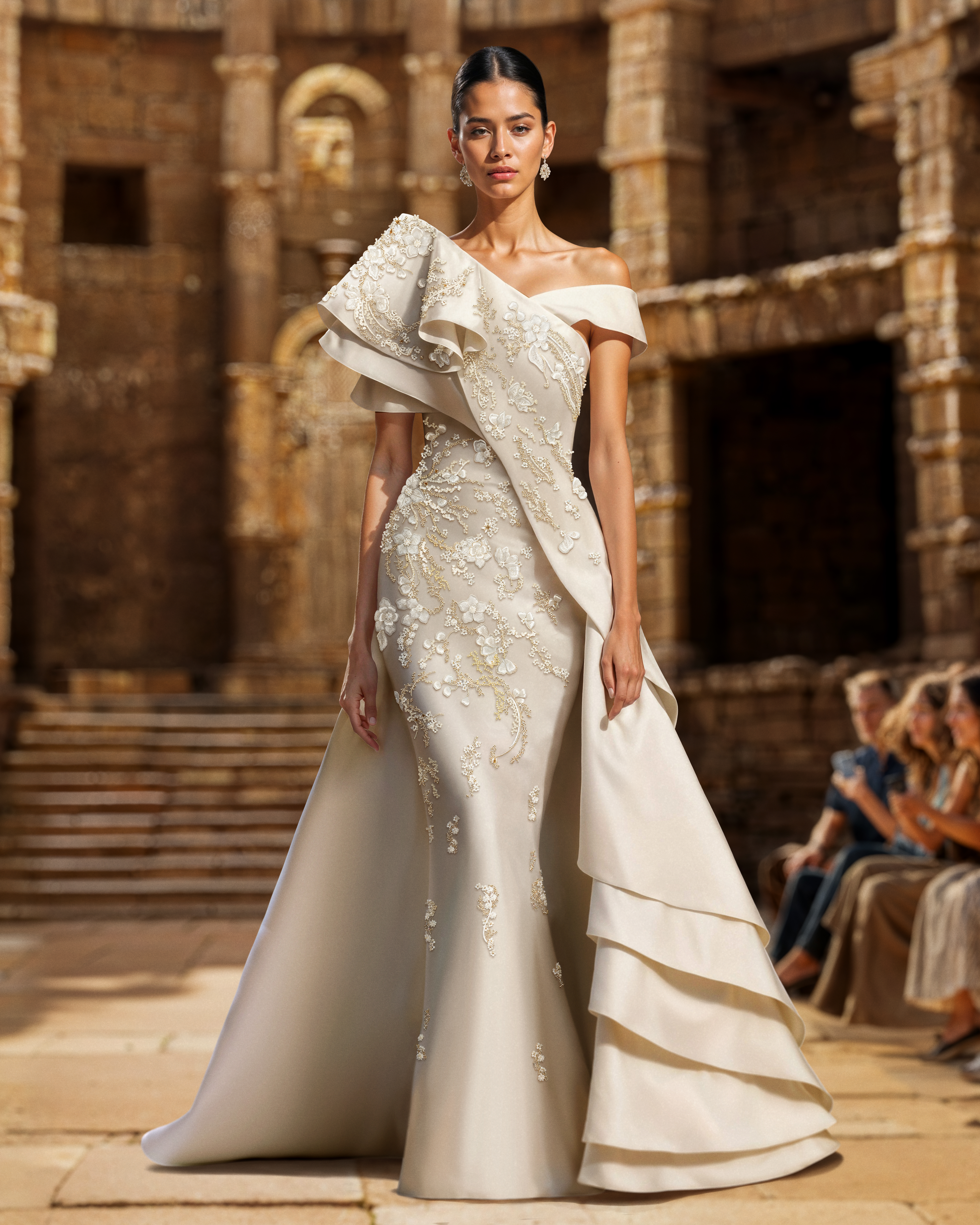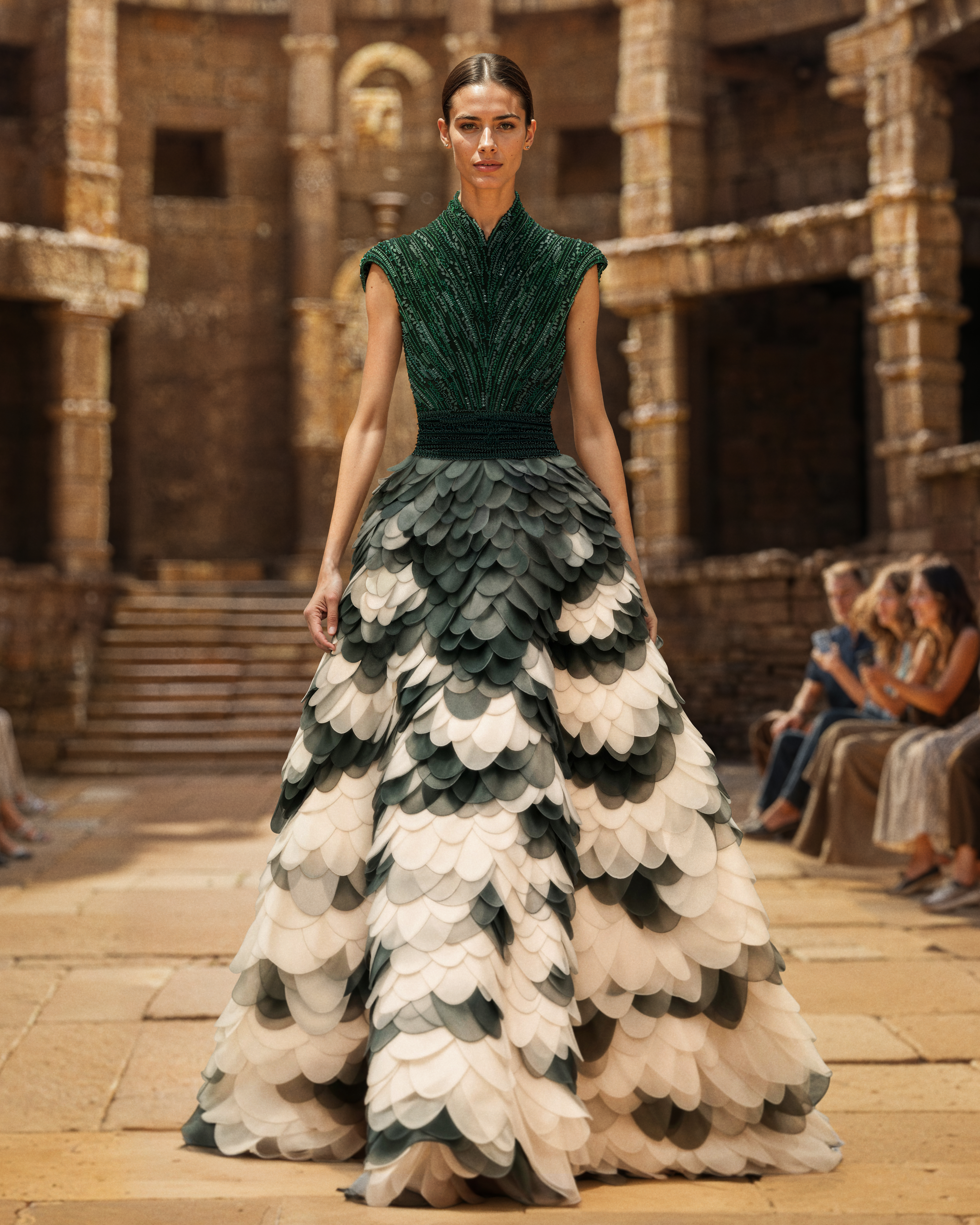 The splendor of the past meets contemporary allure in the most stunning artistic visions by Saiid Kobeisy. Saiid Kobeisy skillfully encapsulates time and bridges the distances between Eastern civilizations, manifesting them in the haute couture collection designs for the Fall-Winter 2024-2025 season, inspired by the legacy of the Minoan civilization. Emerging around 2500 BCE in the eastern Mediterranean islands, the Minoan civilization gained its artistic reputation through cultural exchanges with Mediterranean cities, blending Eastern and Western visions of grandeur and fluidity. Saiid Kobeisy reflects this in 24 enchanting designs, all characterized by elegance and modern impressions. The cuts feature two primary qualities: the grandeur that represents a heritage of elegance and majesty, and the fluidity that adds a contemporary vision, allowing for movement without losing their charm, accentuated by openings at the chest, back, or shoulders. This gives women an extraordinary appearance. The choice of fabrics in the collection enhances both the delicate and opulent aspects. Fabrics such as taffeta and satin enhance the grace and fluidity of the designs, while crepe and tulle contribute to their innovation and distinction with their pliability. Organza, on the other hand, adds volume, reinforcing the majestic design inspired by a legacy of strength and unique elegance. Despite these imperial impressions, the modernity of the collection lies in the innovative techniques employed by Saiid Kobeisy, such as 3D organza layers, fabric shaping, and voluminous shadows. Embroidery plays a crucial role in forming a unique identity for the designs, achieving a convergence of past and future, tradition and modernity. This ability to unify variables is also evident in the colors, which highlight both elegance and delicacy. Inspired by the Minoan era, the colors are vibrant, including green, purple-red, turquoise blue, beige, gold, and black, reflecting the grandeur and magnificence of this ancient civilization. Saiid Kobeisy concludes the collection with a breathtaking wedding dress that embodies elegance and sophistication simultaneously. Through an innovative design and attention to detail, this dress serves as a tribute to the legacy of eternal love, celebration, and joy that transcends time.