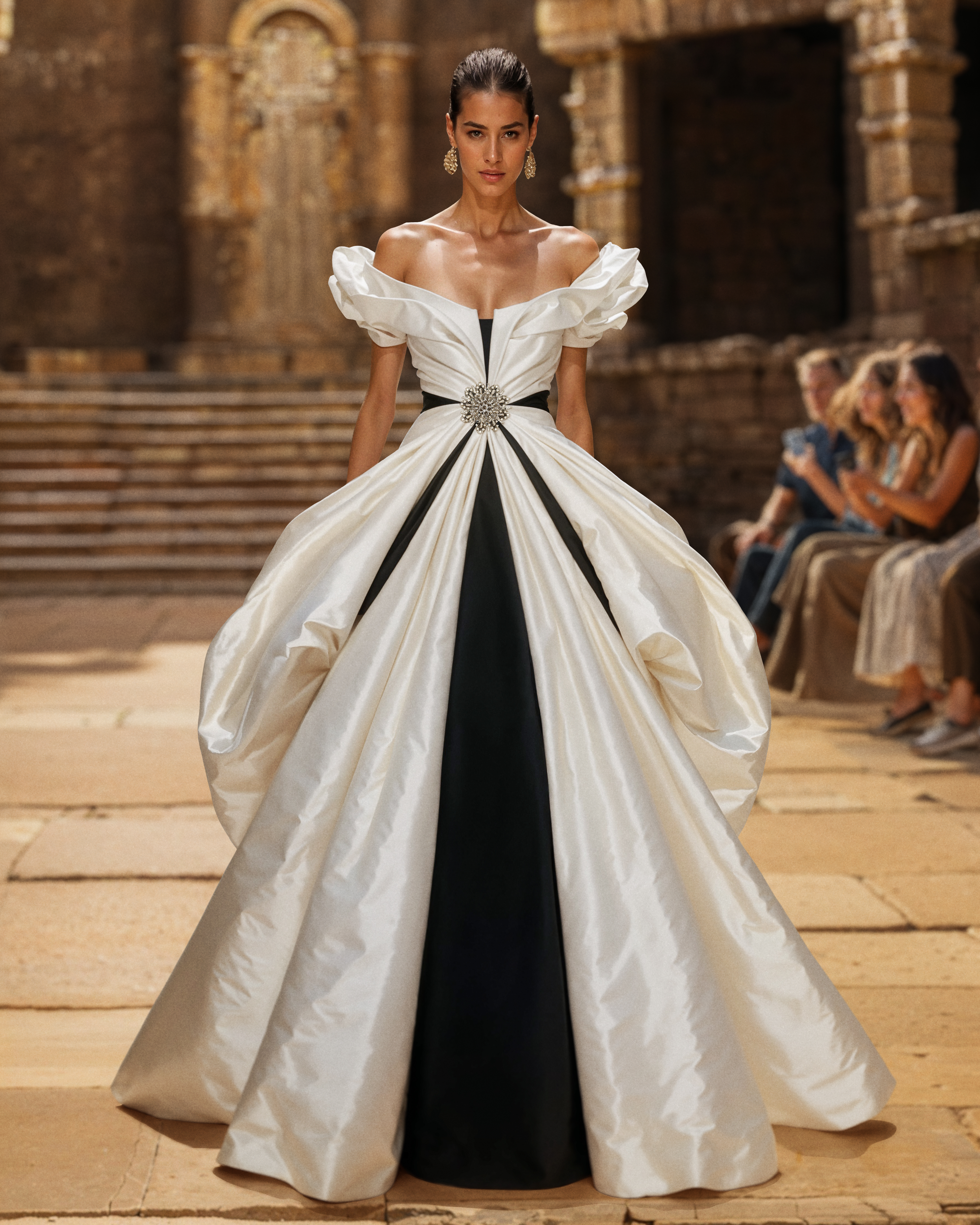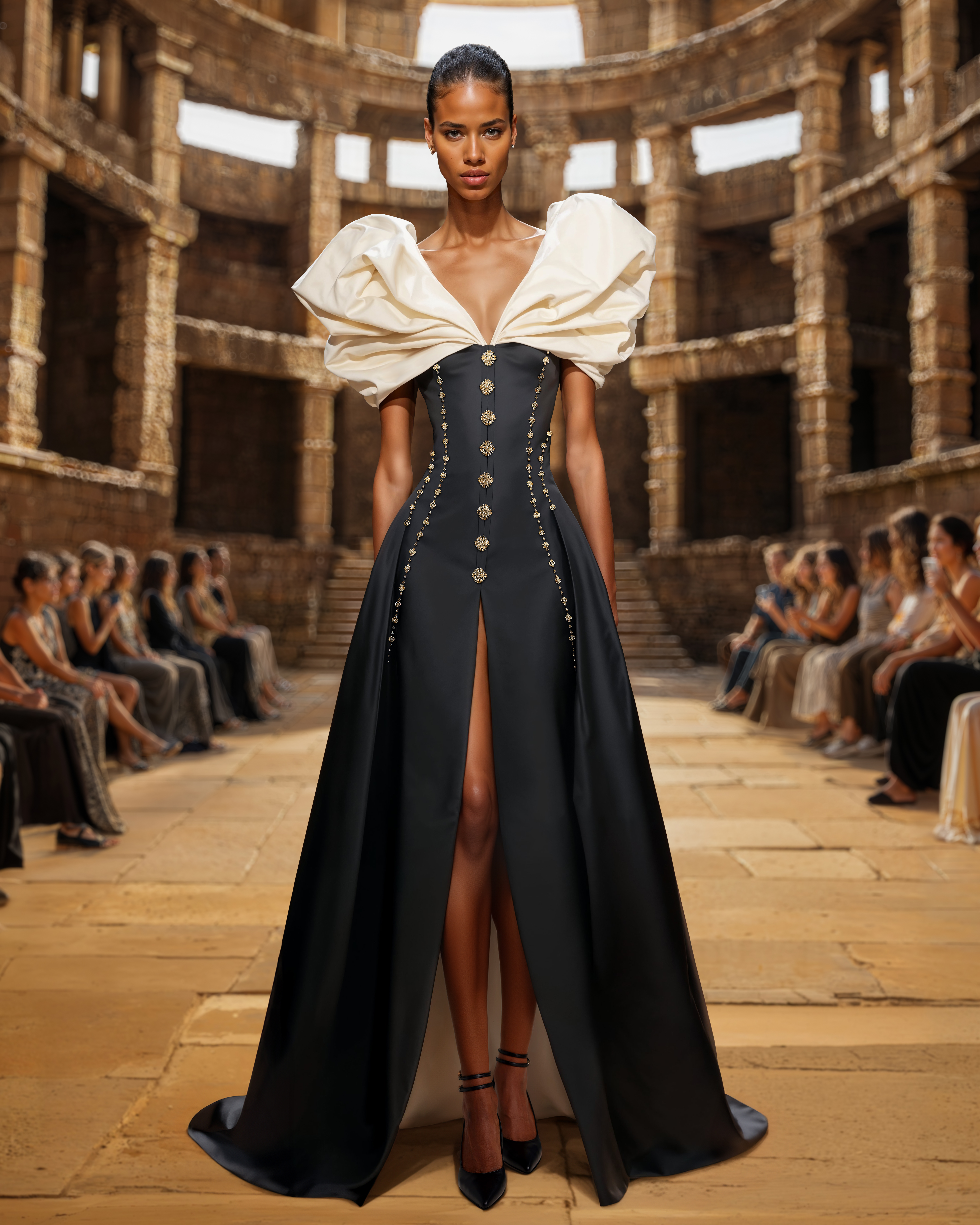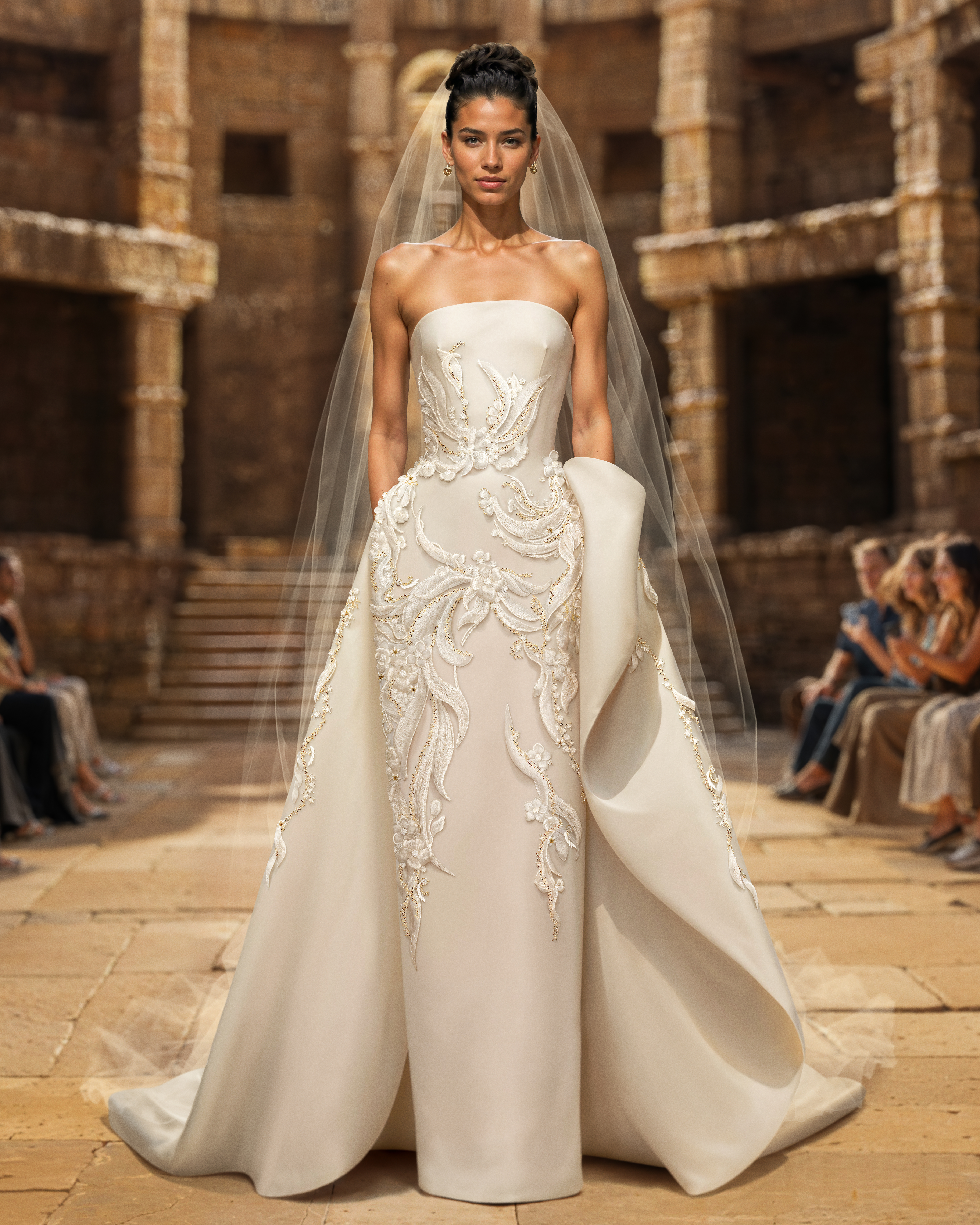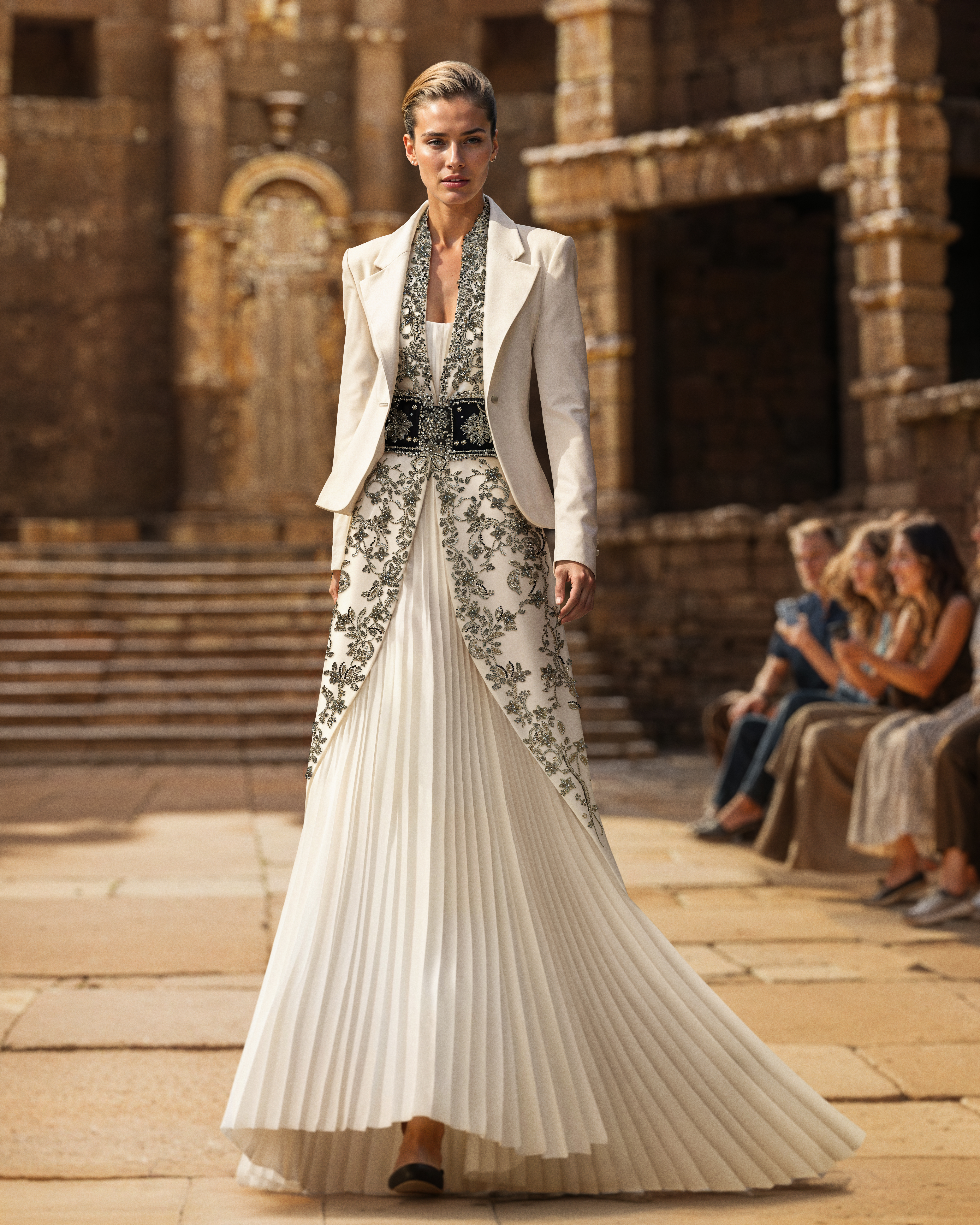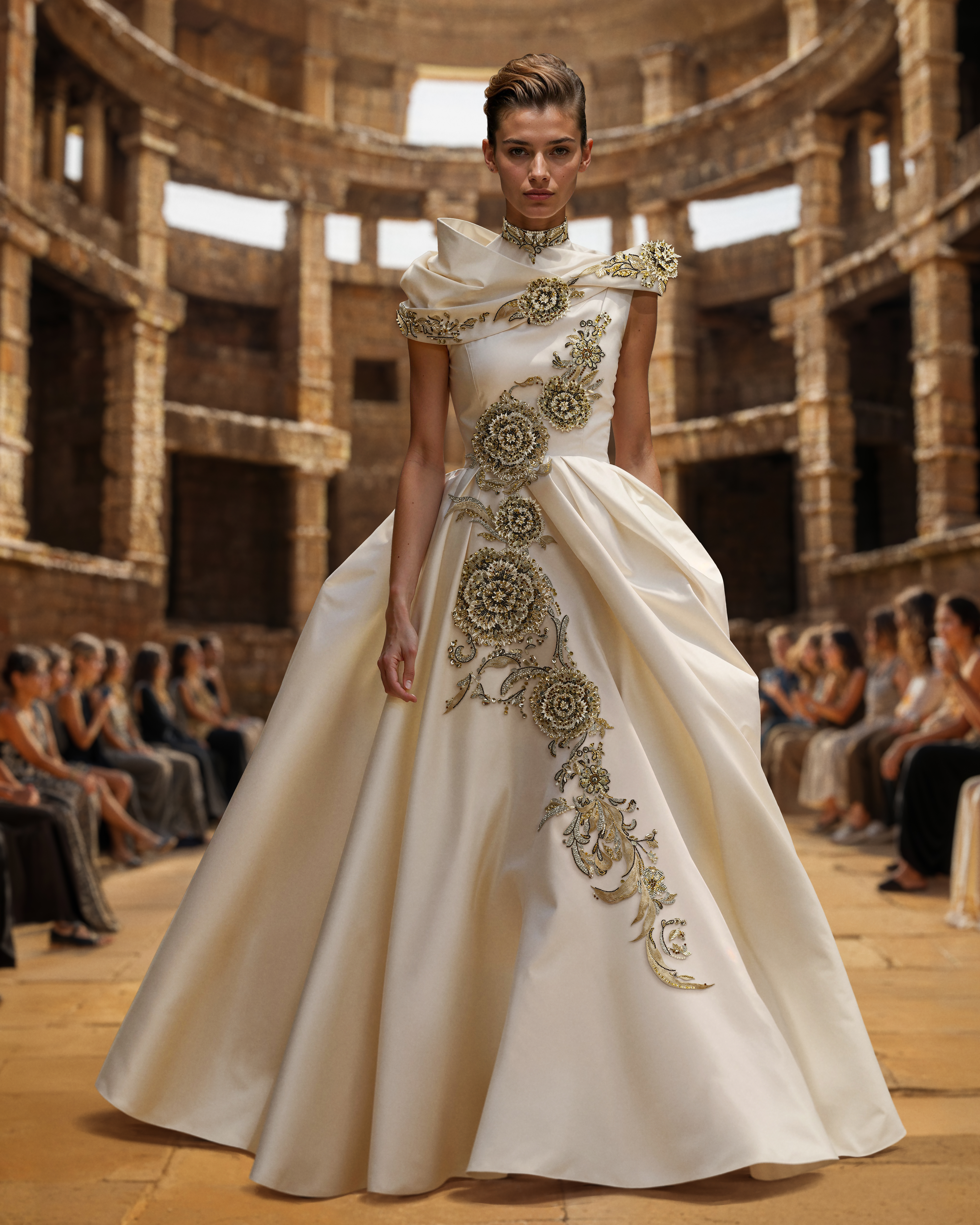 The splendor of the past meets contemporary allure in the most stunning artistic visions by Saiid Kobeisy. Saiid Kobeisy skillfully encapsulates time and bridges the distances between Eastern civilizations, manifesting them in the haute couture collection designs for the Fall-Winter 2024-2025 season, inspired by the legacy of the Minoan civilization. Emerging around 2500 BCE in the eastern Mediterranean islands, the Minoan civilization gained its artistic reputation through cultural exchanges with Mediterranean cities, blending Eastern and Western visions of grandeur and fluidity. Saiid Kobeisy reflects this in 24 enchanting designs, all characterized by elegance and modern impressions. The cuts feature two primary qualities: the grandeur that represents a heritage of elegance and majesty, and the fluidity that adds a contemporary vision, allowing for movement without losing their charm, accentuated by openings at the chest, back, or shoulders. This gives women an extraordinary appearance. The choice of fabrics in the collection enhances both the delicate and opulent aspects. Fabrics such as taffeta and satin enhance the grace and fluidity of the designs, while crepe and tulle contribute to their innovation and distinction with their pliability. Organza, on the other hand, adds volume, reinforcing the majestic design inspired by a legacy of strength and unique elegance. Despite these imperial impressions, the modernity of the collection lies in the innovative techniques employed by Saiid Kobeisy, such as 3D organza layers, fabric shaping, and voluminous shadows. Embroidery plays a crucial role in forming a unique identity for the designs, achieving a convergence of past and future, tradition and modernity. This ability to unify variables is also evident in the colors, which highlight both elegance and delicacy. Inspired by the Minoan era, the colors are vibrant, including green, purple-red, turquoise blue, beige, gold, and black, reflecting the grandeur and magnificence of this ancient civilization. Saiid Kobeisy concludes the collection with a breathtaking wedding dress that embodies elegance and sophistication simultaneously. Through an innovative design and attention to detail, this dress serves as a tribute to the legacy of eternal love, celebration, and joy that transcends time.