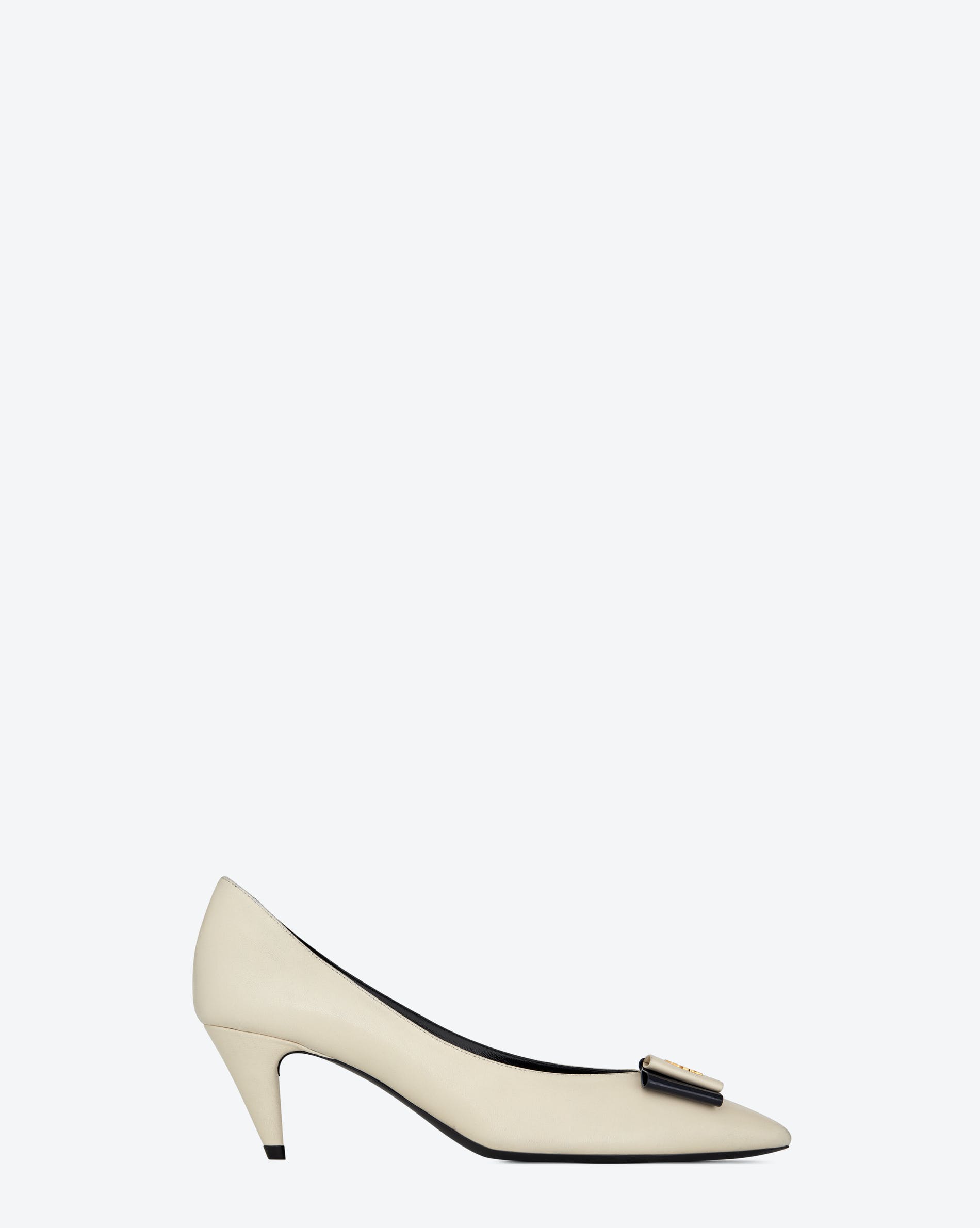 ANAÏS 55MM PUMP IN IVORY AND MARINE LEATHER WITH GOLD YSL PIN’S