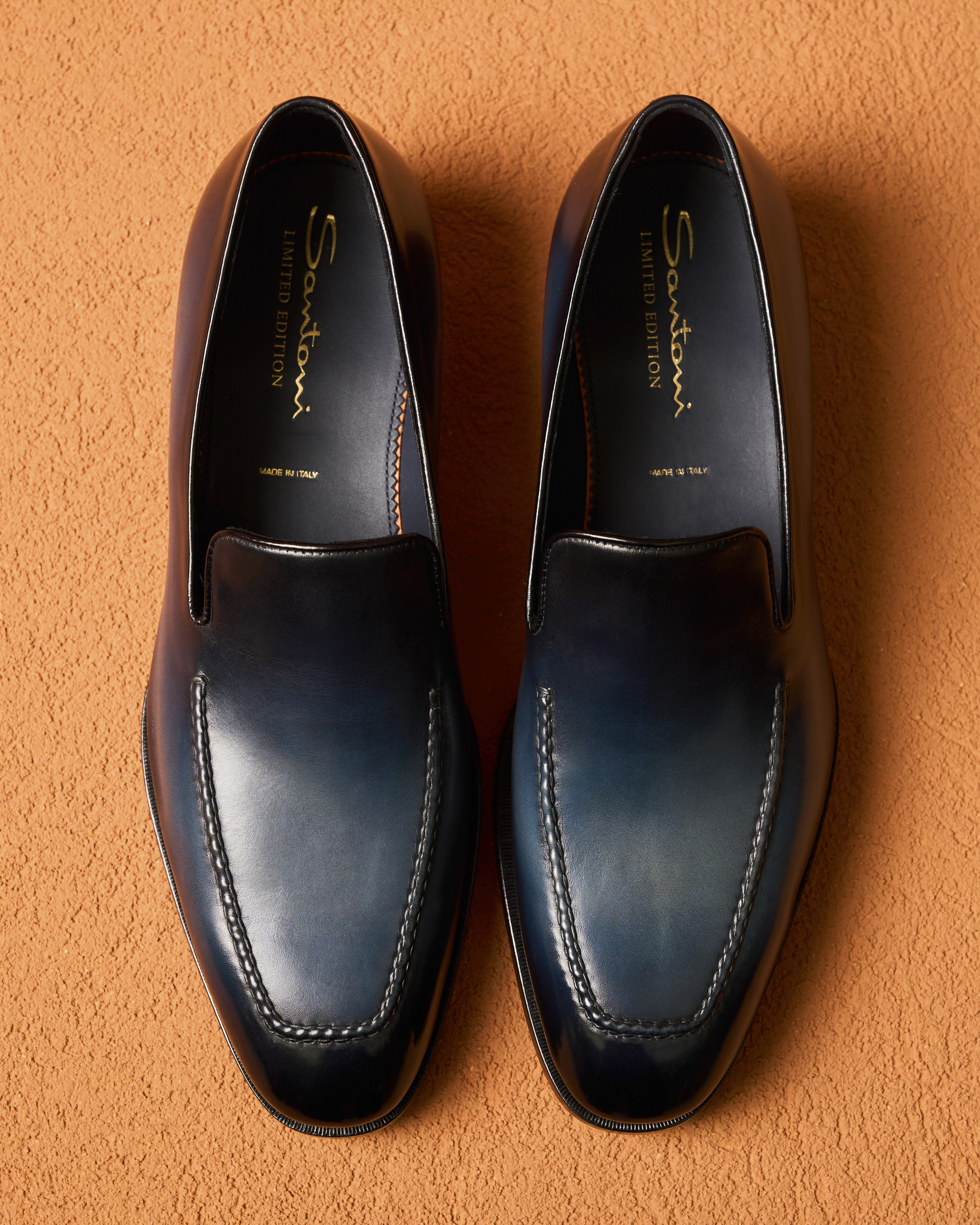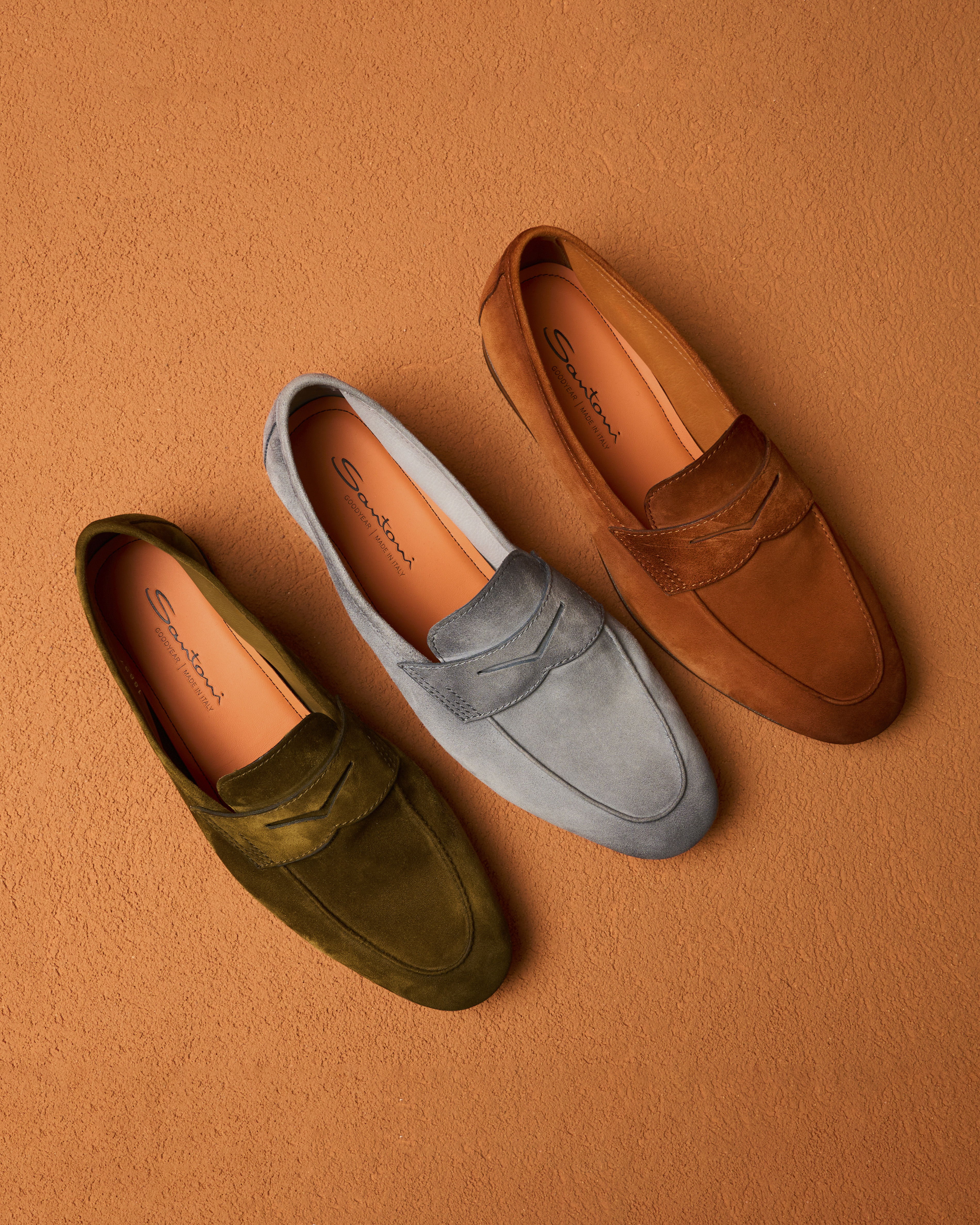 Santoni’s signature application of colour is pushed to new limits throughout the SS25 collection, as the Maison’s artisans innovate on ancient dyeing techniques native to the territory. Techniques brought to life in the warm natural tones of Urbino, Terracotta, Pavone, Quercia, Mosto, and Olivo that saturate the collection and compliment the signature Arancio Santoni (the brand’s sophisticated orange that radiates and captivates the eye), a representation of the twilight sky over Le Marche as day transitions to dusk.